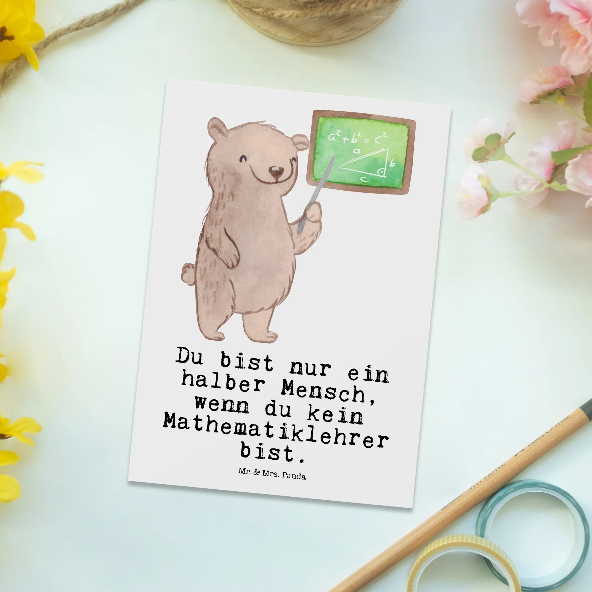 Postkarte Mathematiklehrer mit Herz - mit Spruch - Weiß
