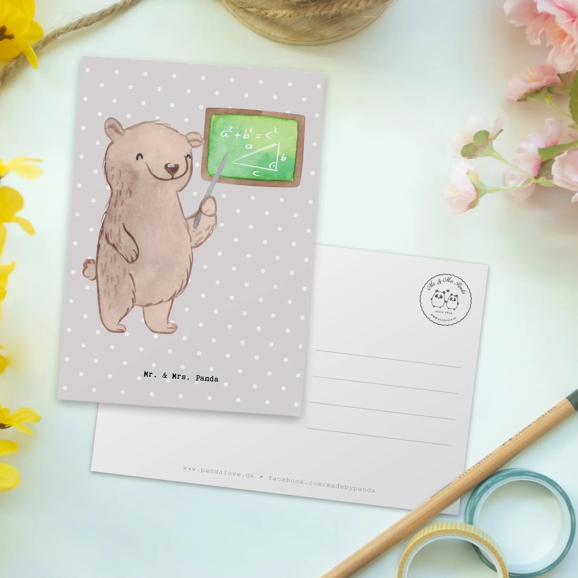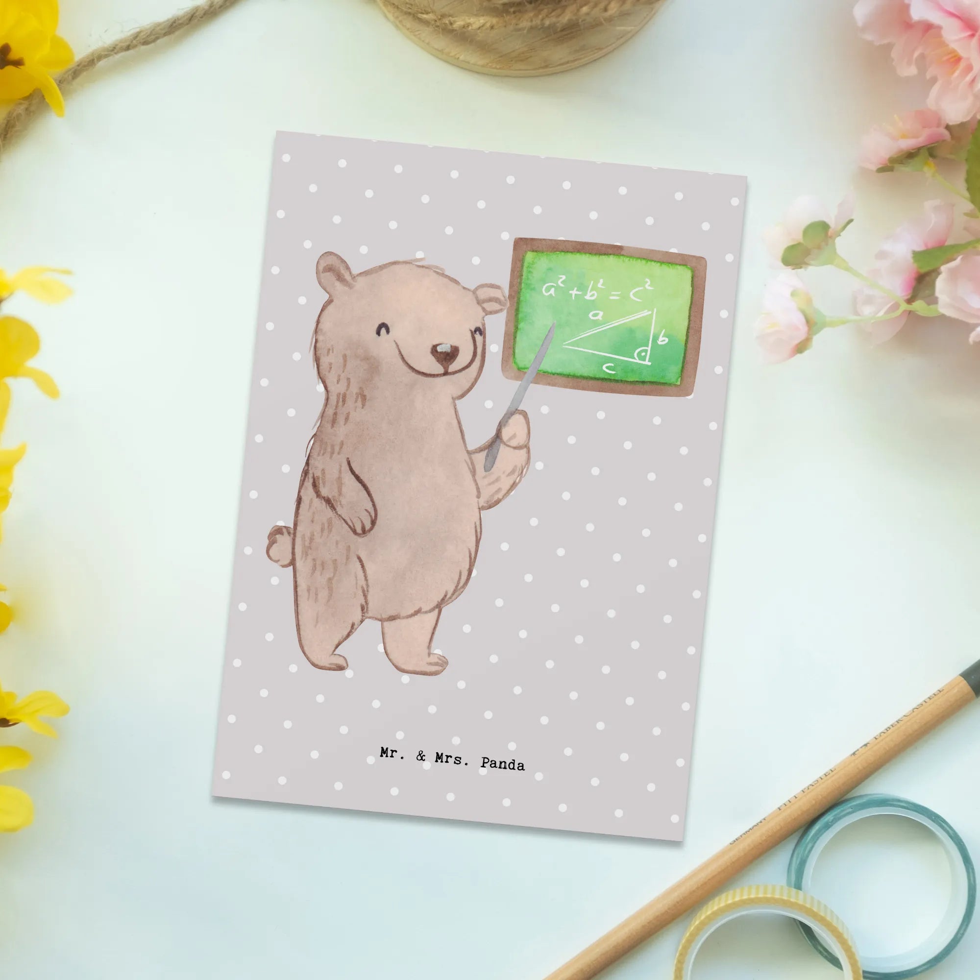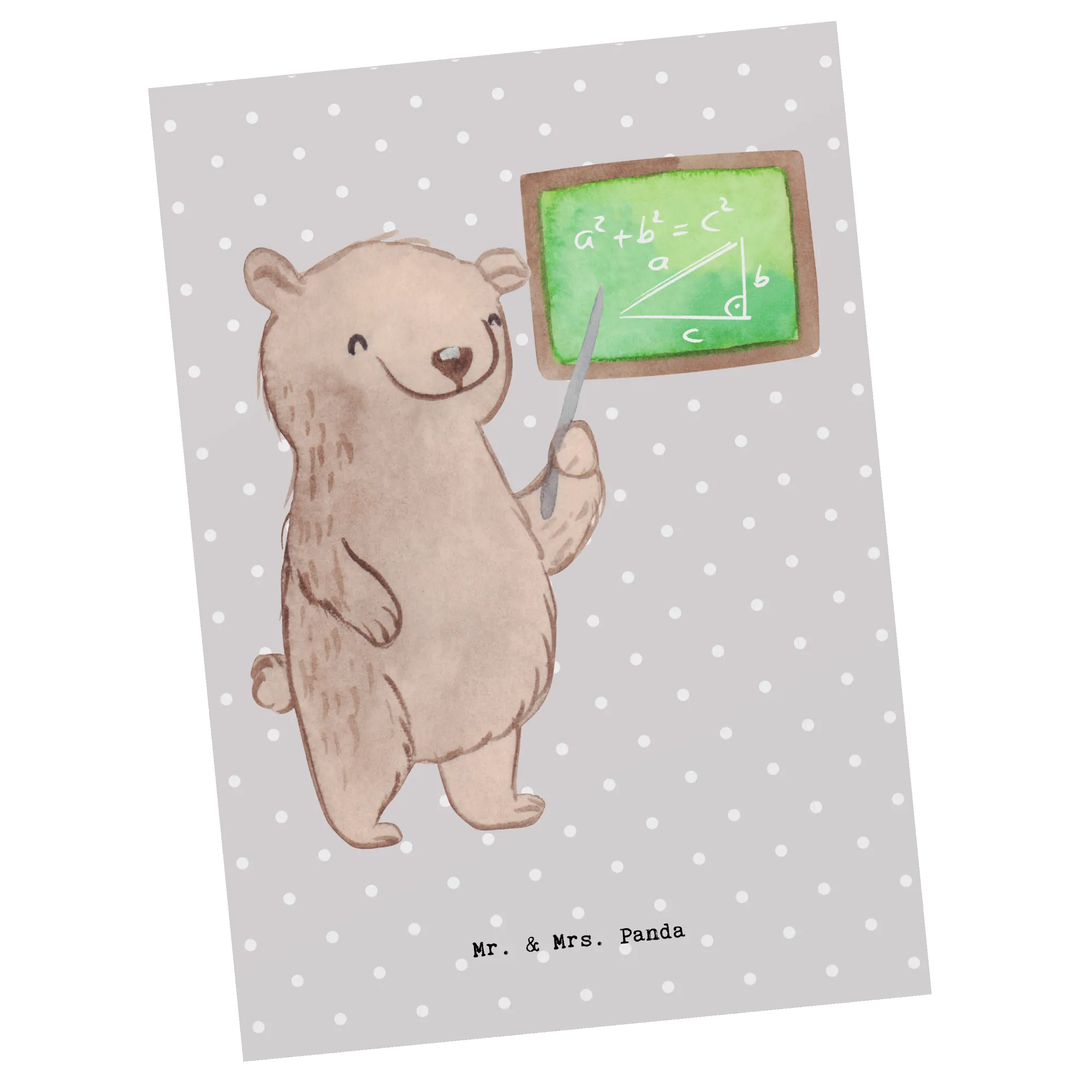 Die Postkarte "Mathematiklehrer mit Herz" von Mr. & Mrs. Panda ist das ideale Geschenk für alle, die sich in der Welt der Zahlen und Formeln wohlfühlen. Ob Du ein angehender Mathematiklehrer bist, Lehramtstudent im Referendariat oder einfach nur ein begeisterter Mathelehrer, diese Karte ist perfekt, um Deine Leidenschaft für das Fach auszudrücken. Mit dem niedlichen Motiv eines Bären, der vor einer Schultafel eine Berechnung durchführt, zaubert die Karte jedem ein Lächeln ins Gesicht und spricht die Sprache der Zahlenliebhaber.