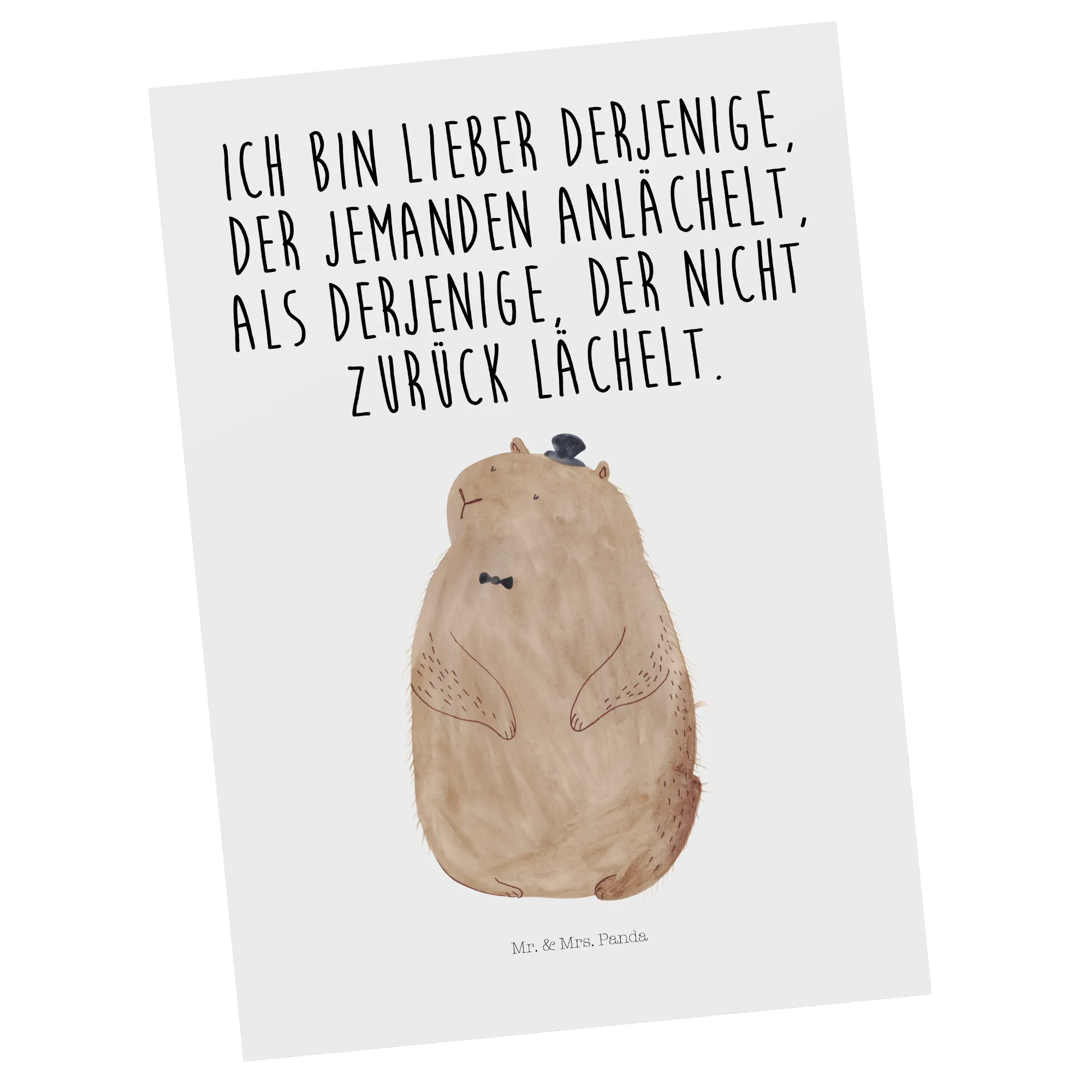 Entdecke die charmante Postkarte mit dem süßen Murmeltier von Mr. & Mrs. Panda aus der besonderen Small World Kollektion. Dieses einzigartige Design ist nicht nur ansprechend, sondern strahlt auch Fröhlichkeit und gute Laune aus. Perfekt, um jemandem ein Lächeln ins Gesicht zu zaubern! Die Karte ist nicht personalisierbar, bietet aber eine blanko Rückseite, die dir genügend Platz für deine eigenen Gedanken und Grüße lässt.
