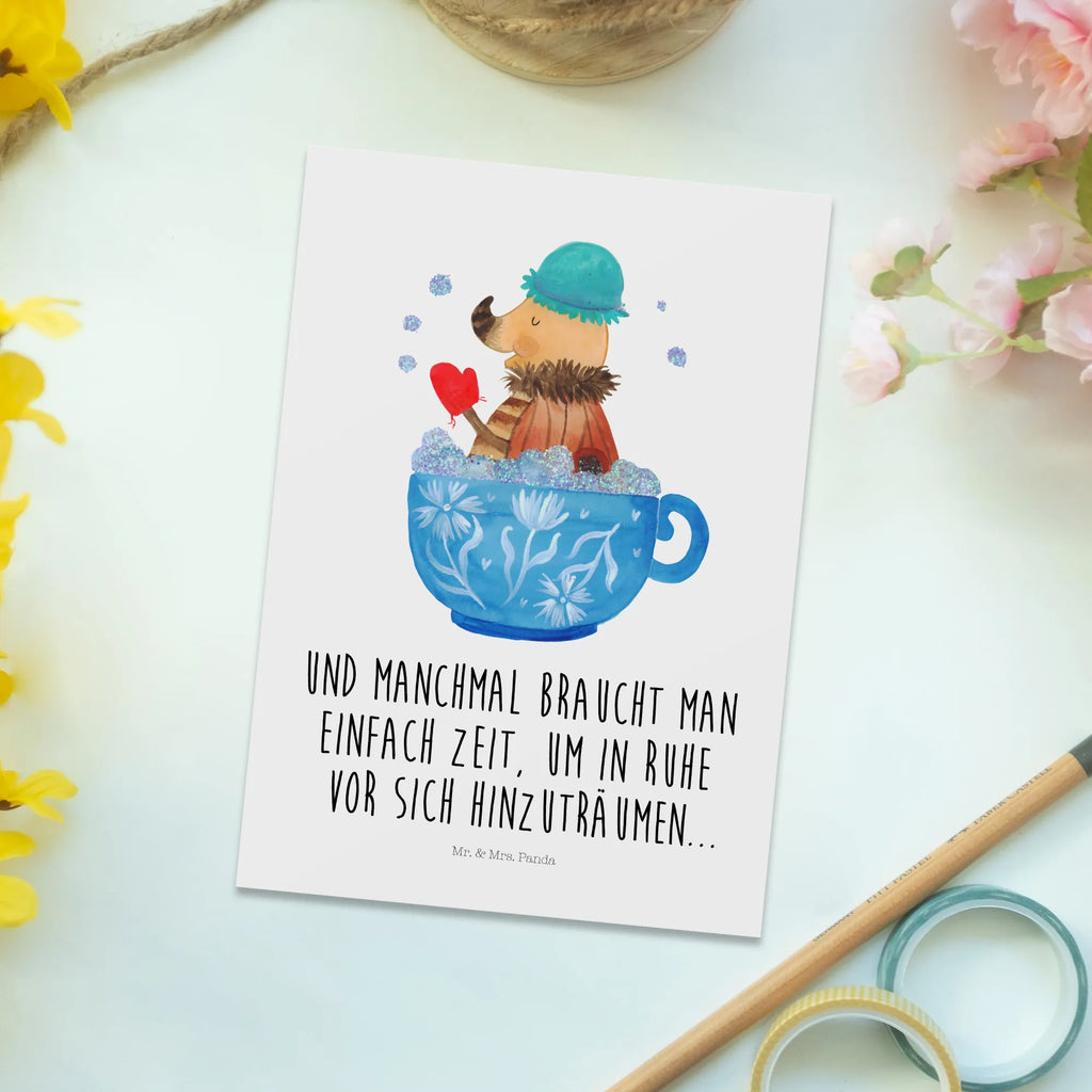 Herzlich Willkommen in der Welt des Nachtfalters Schaumbad von Mr. & Mrs. Panda! Diese einzigartige Postkarte zeigt einen kleinen, süßen Nachtfalter, der es sich in einer Kaffeetasse gemütlich gemacht hat und ein entspannendes Schaumbad genießt. Das bezaubernde Motiv lädt zum Träumen und Entspannen ein. Perfekt für alle, die sich eine kleine Auszeit vom Alltag gönnen möchten!