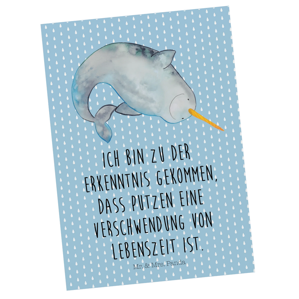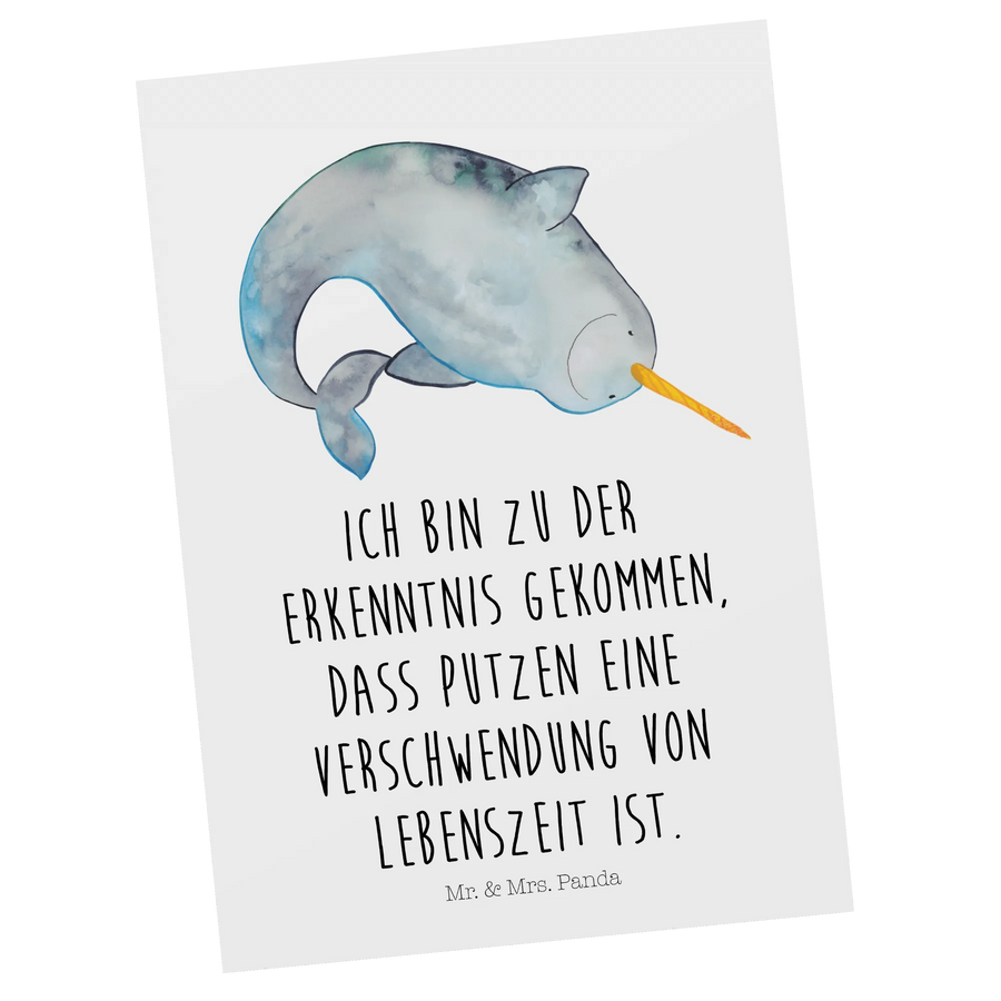 Die Postkarte mit dem niedlichen Narwal von Mr. & Mrs. Panda ist das perfekte Geschenk für alle, die das Meer und seine wundervollen Kreaturen lieben! Mit einem charmanten Design und dem witzigen Spruch 'Ich bin zu der Erkenntnis gekommen, dass Putzen eine Verschwendung von Lebenszeit ist.', eignet sich diese Karte hervorragend für verschiedene Anlässe. Ob du deinen Freunden eine liebe Nachricht schicken, einen Geburtstag feiern oder einfach nur ein Lächeln auf das Gesicht eines lieben Menschen zaubern möchtest – diese Grußkarte ist immer die richtige Wahl.