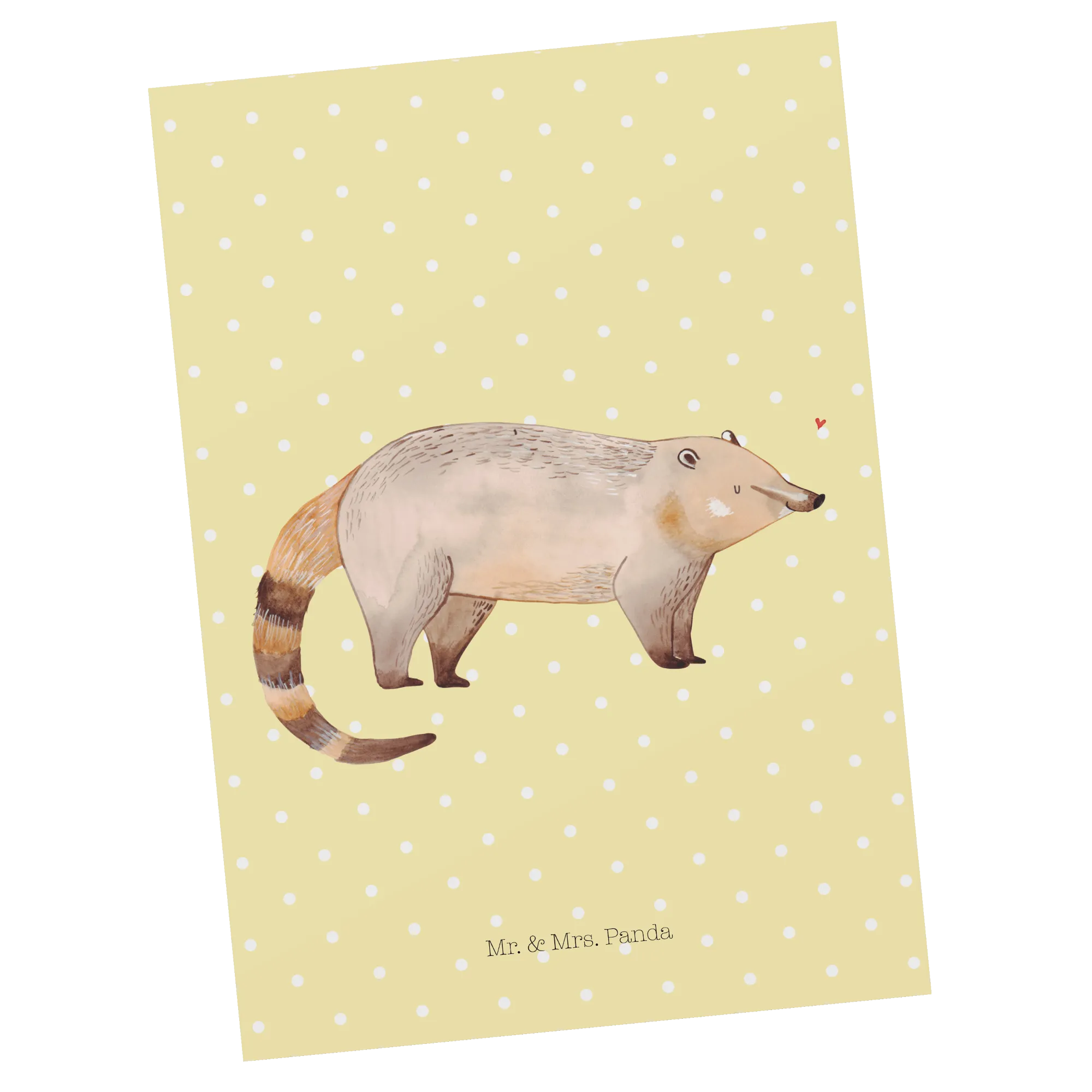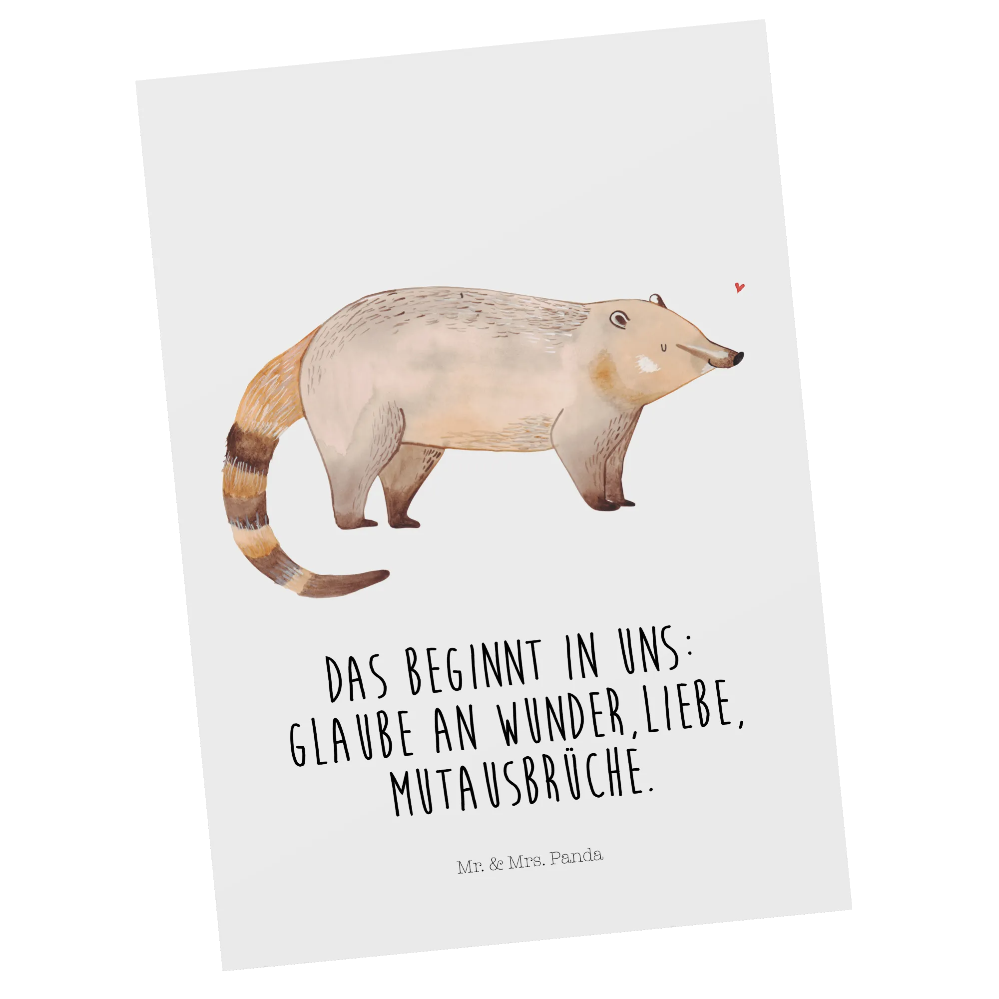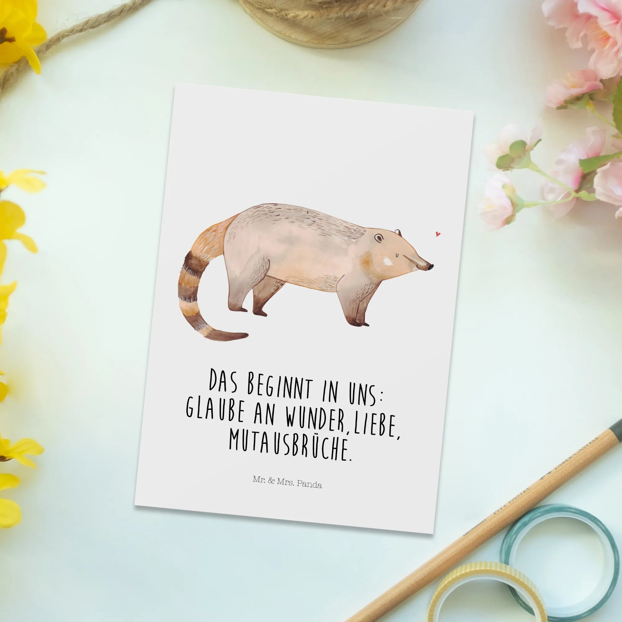 Glaube an Wunder und versende Freude mit der Nasenbär Postkarte von Mr. & Mrs. Panda! Egal welches Event ansteht, du wirst immer den richtigen Grund finden, um diese wunderschöne Grußkarte zu verwenden und Liebe sowie Glück zu verbreiten. Hol sie dir jetzt und bring Farbe und Freude in deinen Briefkasten, deine Einladung oder deine Dankeskarte!