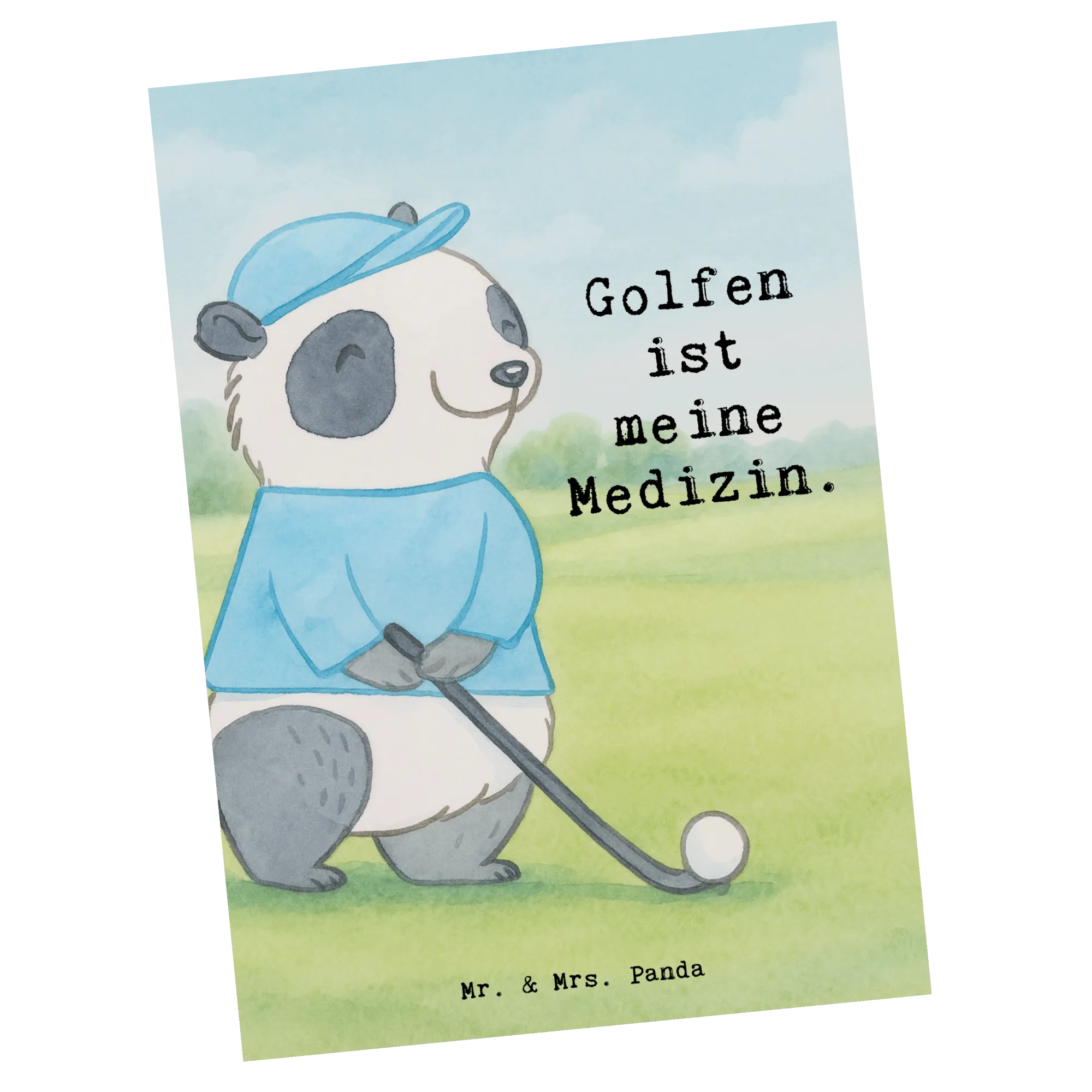 Postkarte Panda Golfen Design