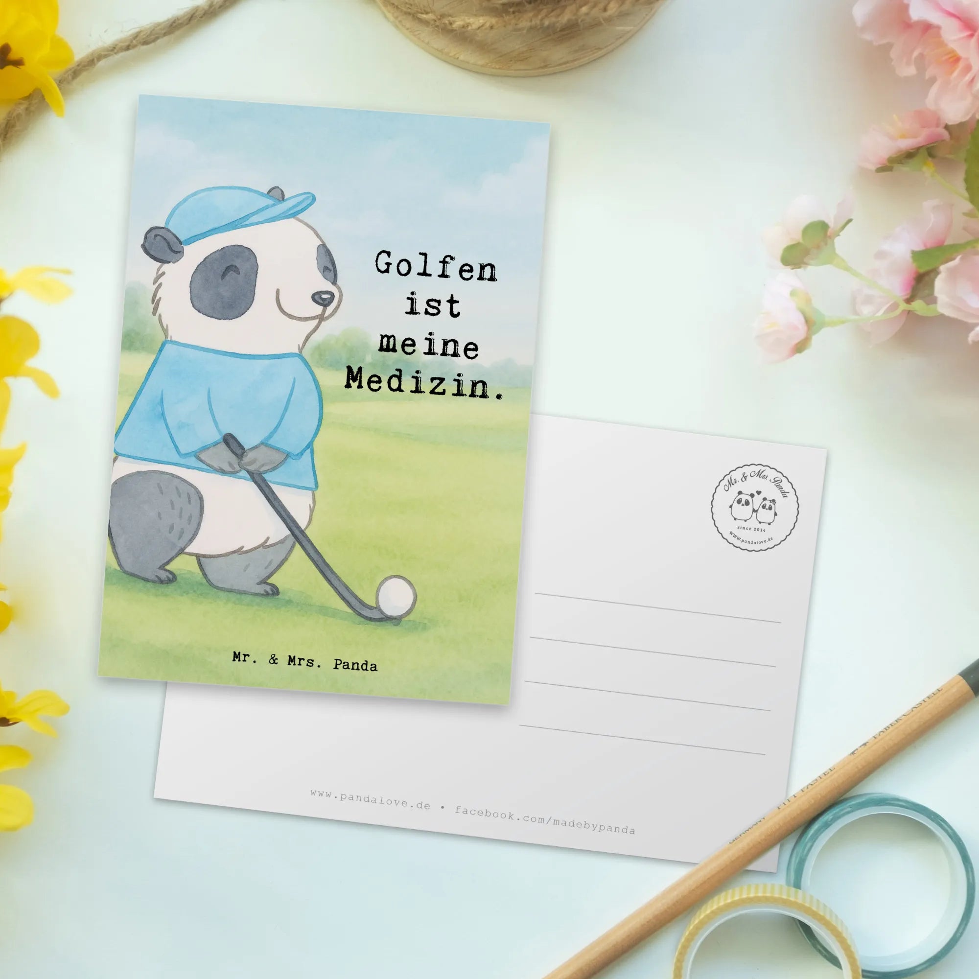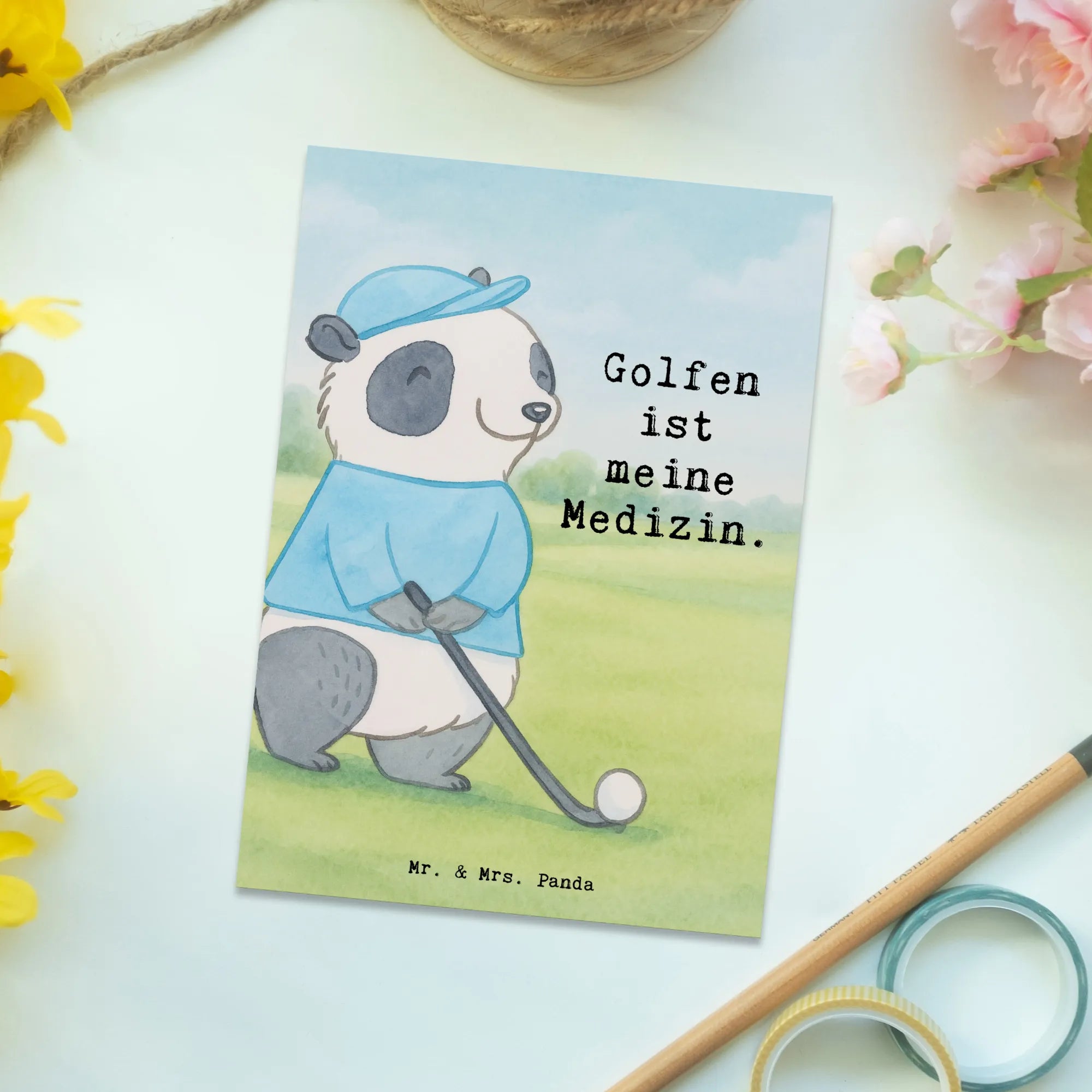 Postkarte Panda Golfen Design – Mr. & Mrs. Panda