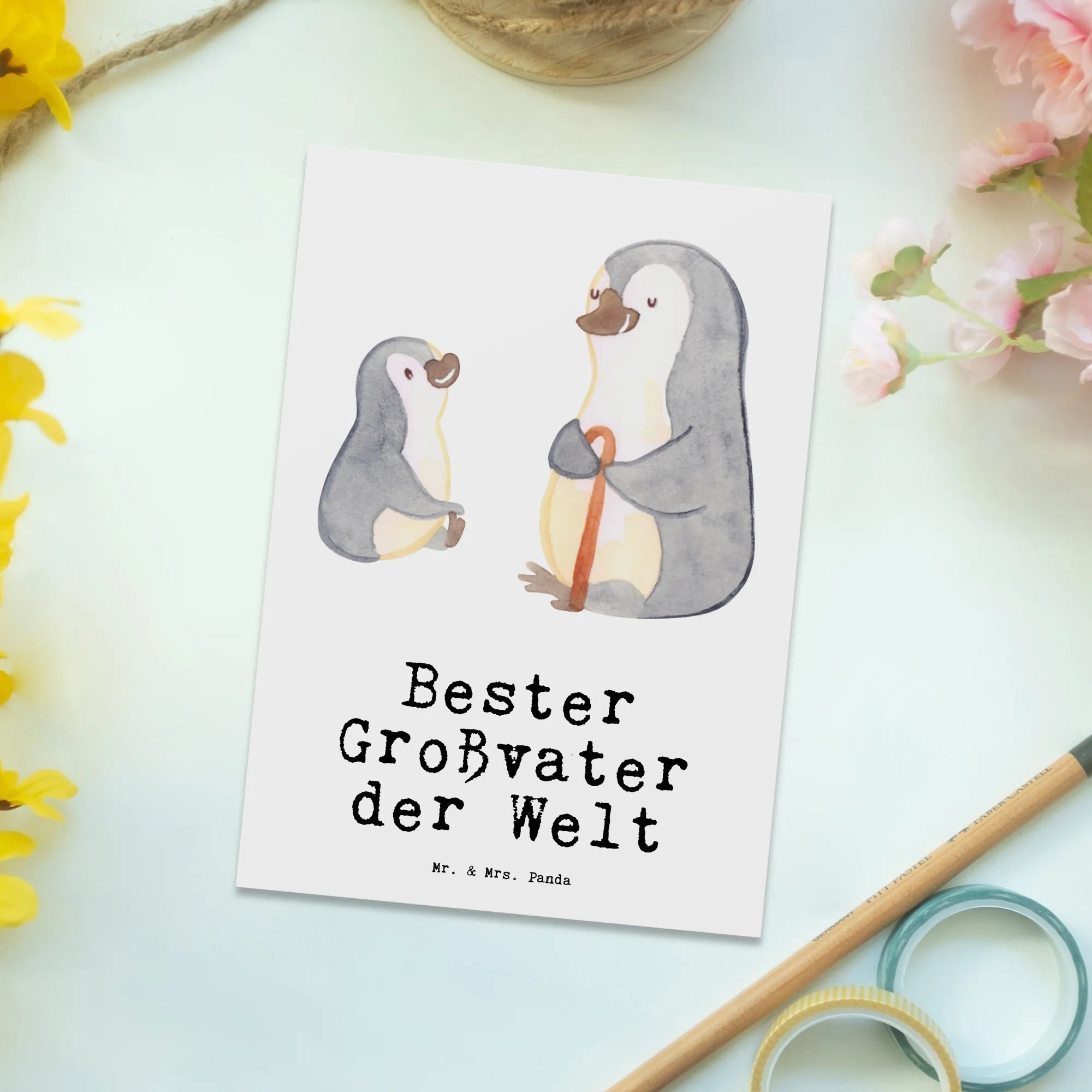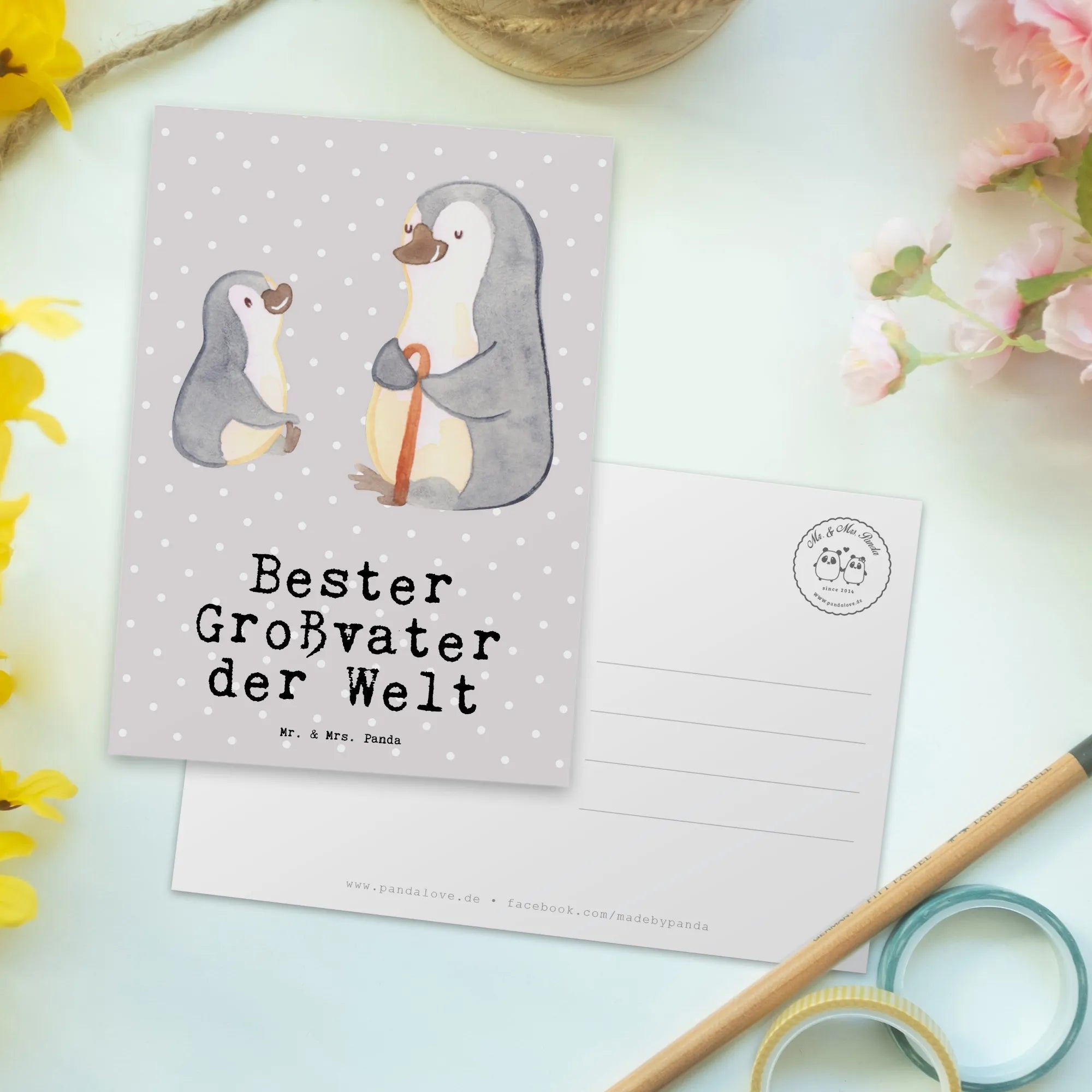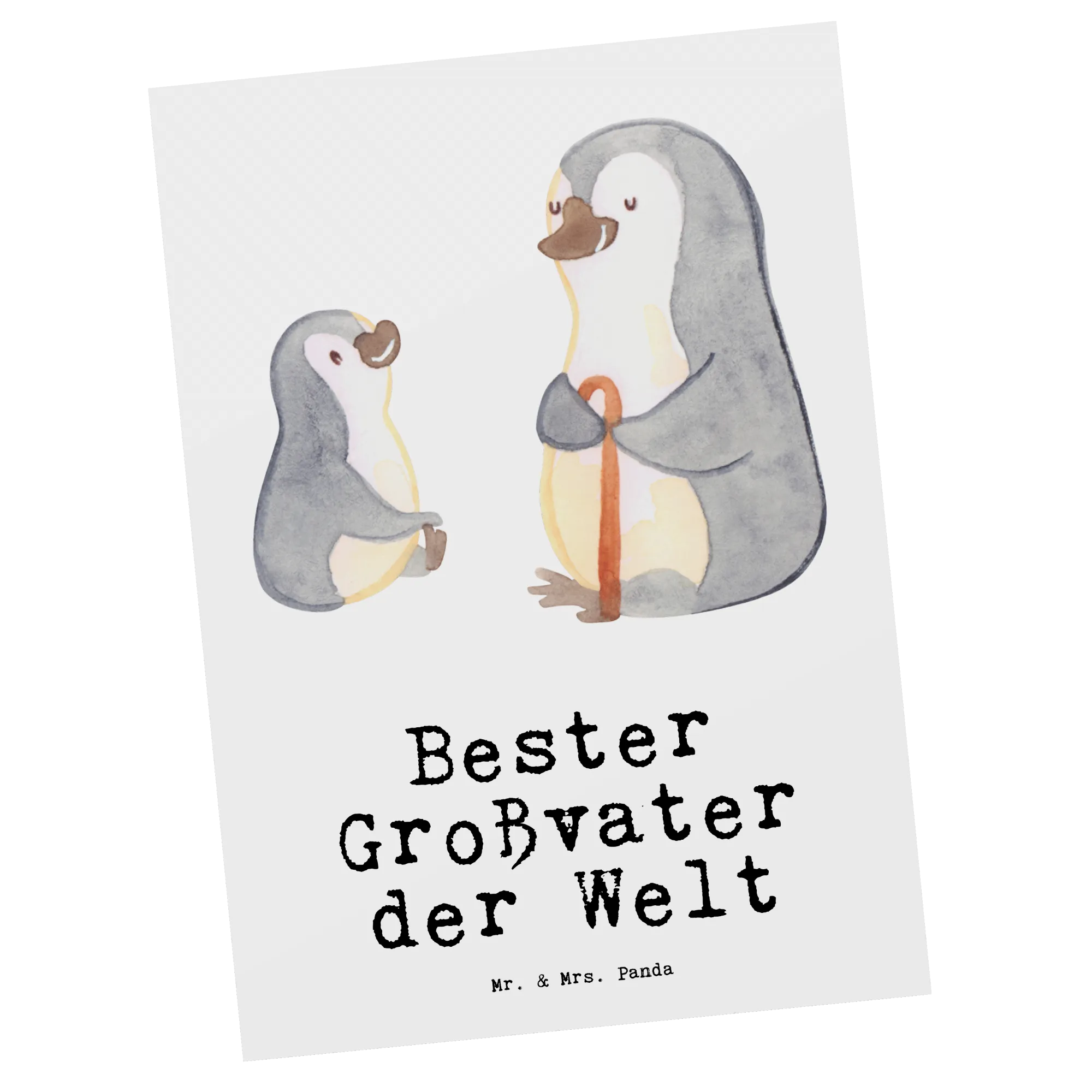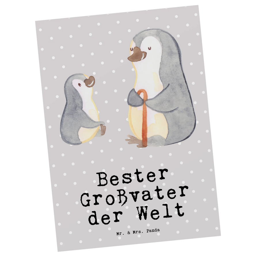 Postkarte Pinguin Bester Großvater der Welt - Grau Pastell