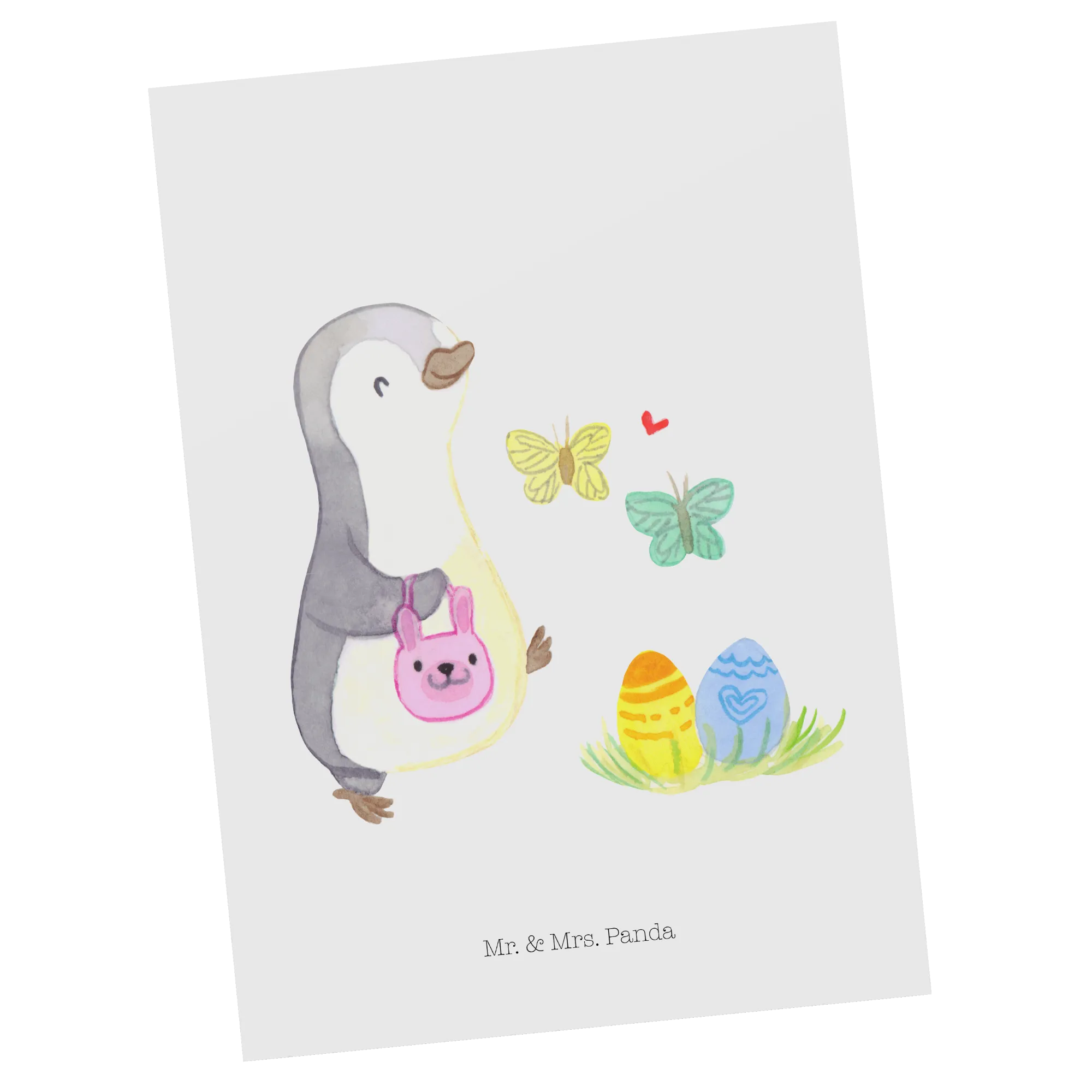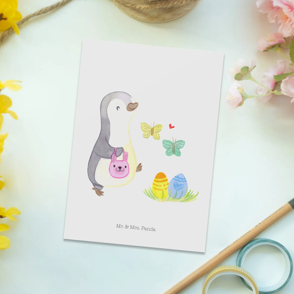 Verschenke diese Karte als Teil eines Geschenkes zu Ostern oder überrasche deine Lieben einfach so – der süße Pinguin wird garantiert für Begeisterung sorgen! Die Ostern - Kollektion von Mr. & Mrs. Panda umfasst viele weitere herzige Motive, die alle das Osterfest lebendig werden lassen. Mache dein Osterfest unvergesslich mit dieser liebevoll gestalteten Postkarte!