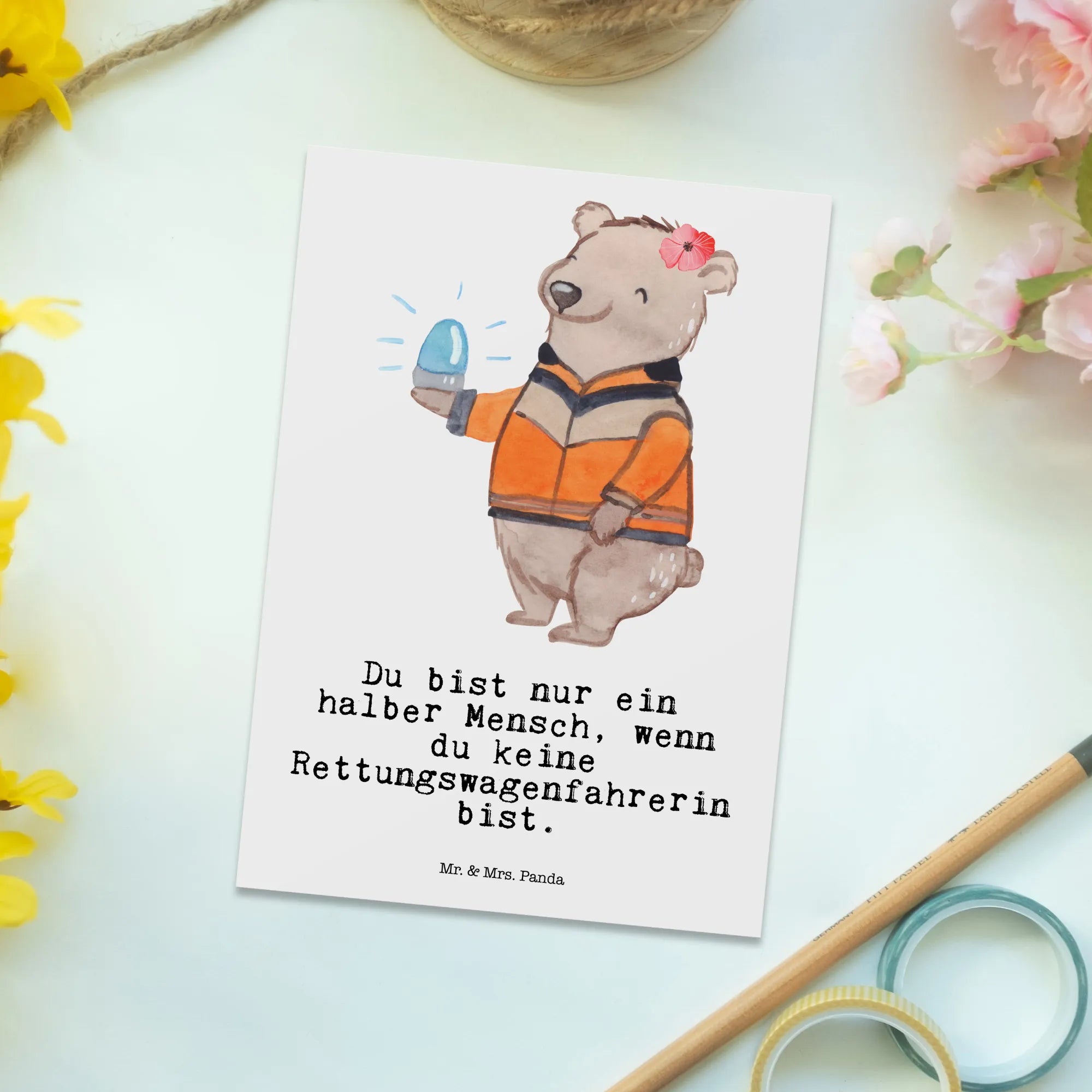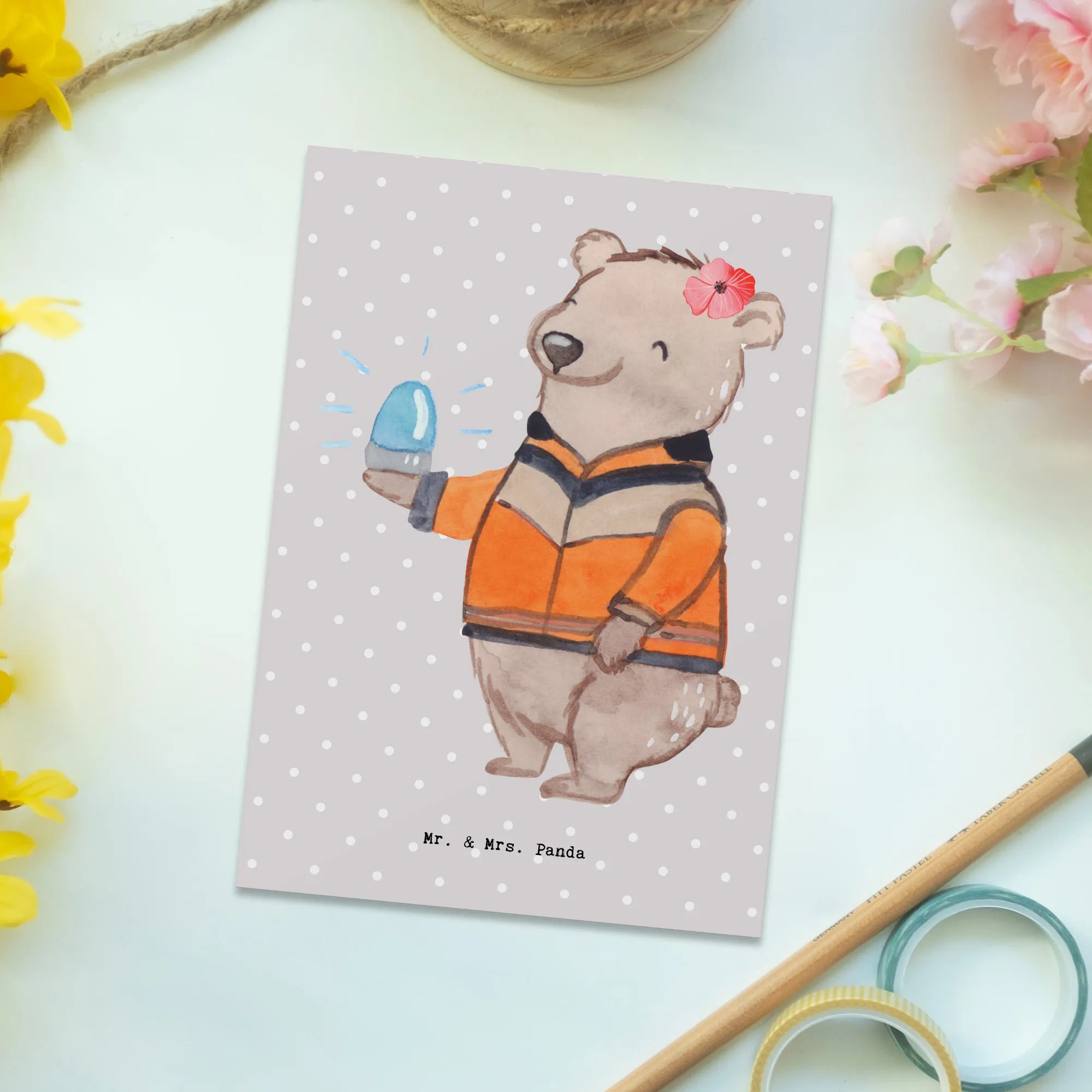 Postkarte Rettungswagenfahrerin Herz - mit Spruch - Grau Pastell