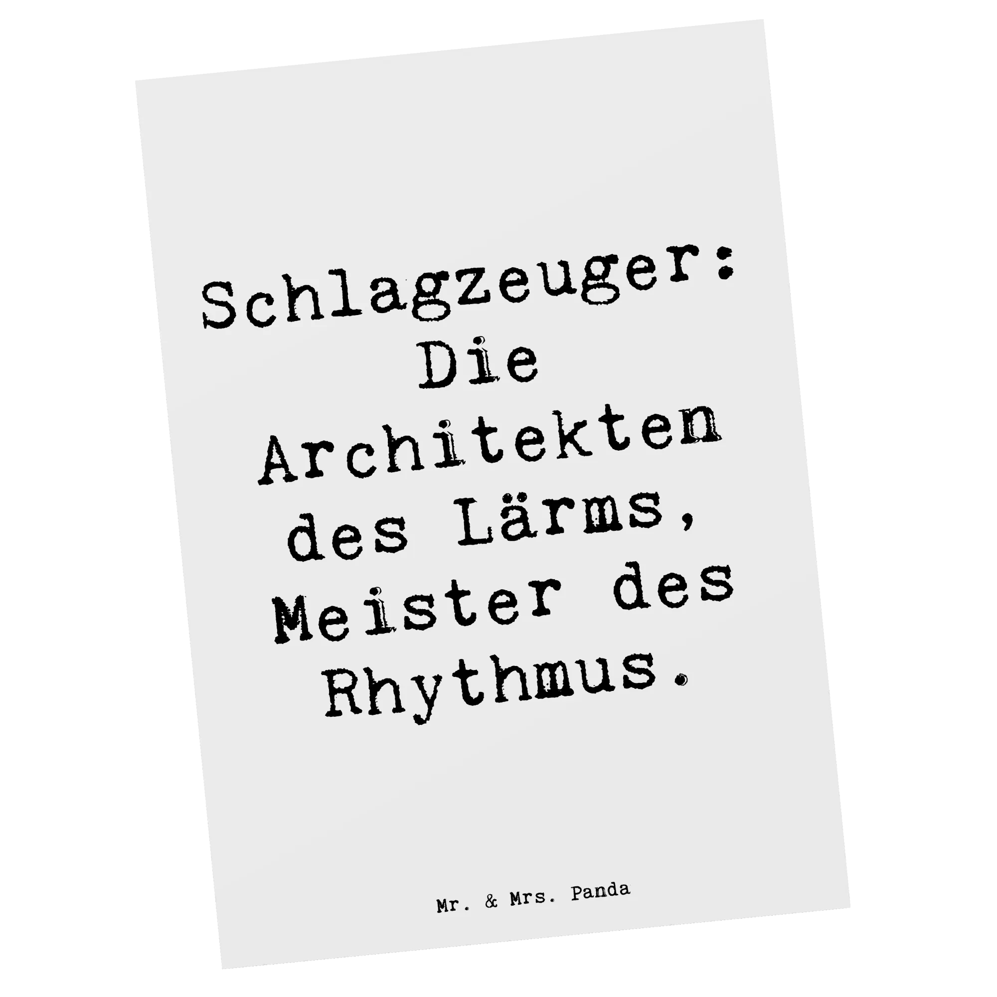 Zögere nicht länger und verschenke ein Stück Musik mit dieser tollen Postkarte von Mr. & Mrs. Panda! Perfekt ist sie auch für besondere Anlässe wie Hochzeiten oder Taufen, wo Musik eine große Rolle spielt. Entdecke die Vielfalt der Musik und die Leidenschaft des Schlagzeugs – mit dieser Postkarte holst du die Musik zu dir nach Hause!