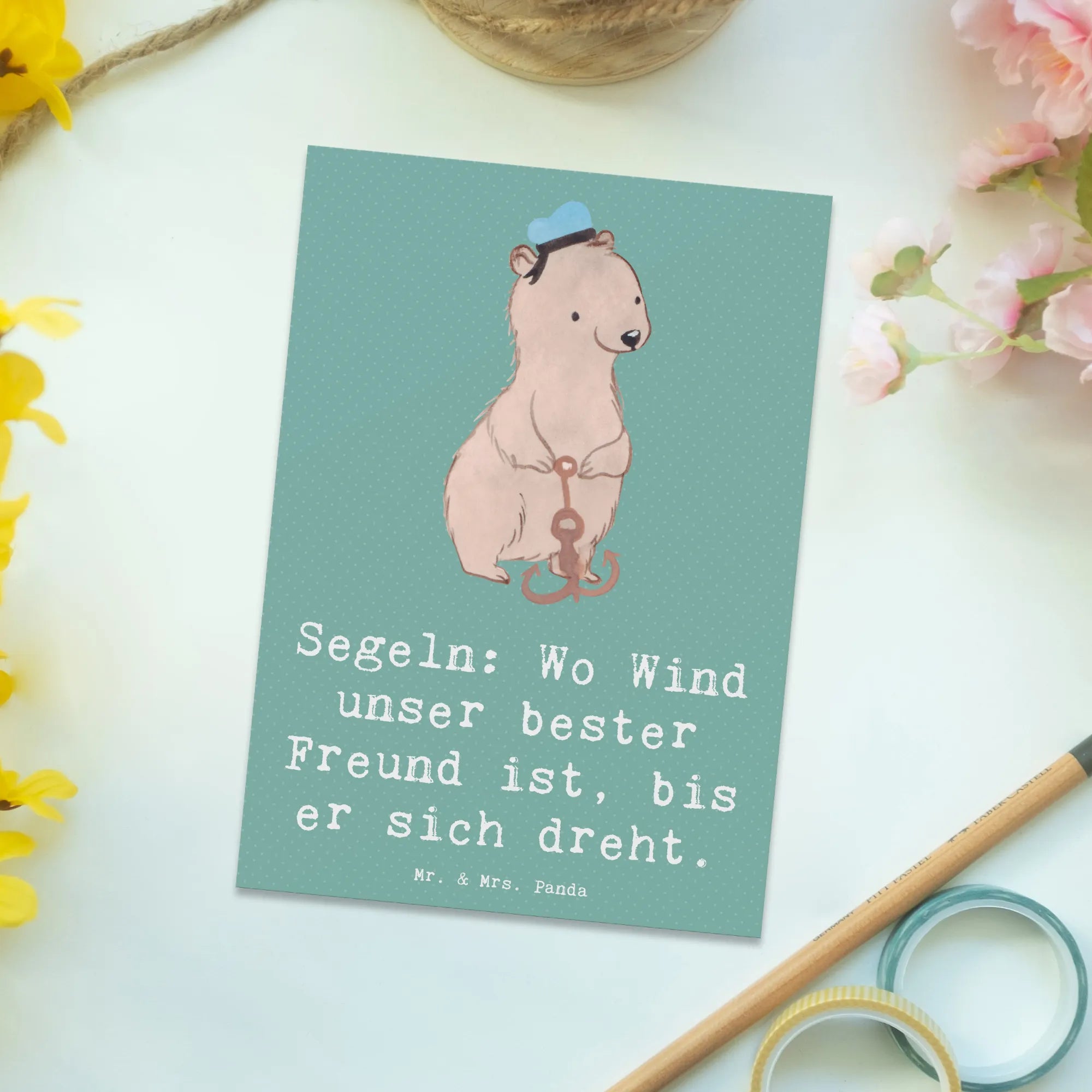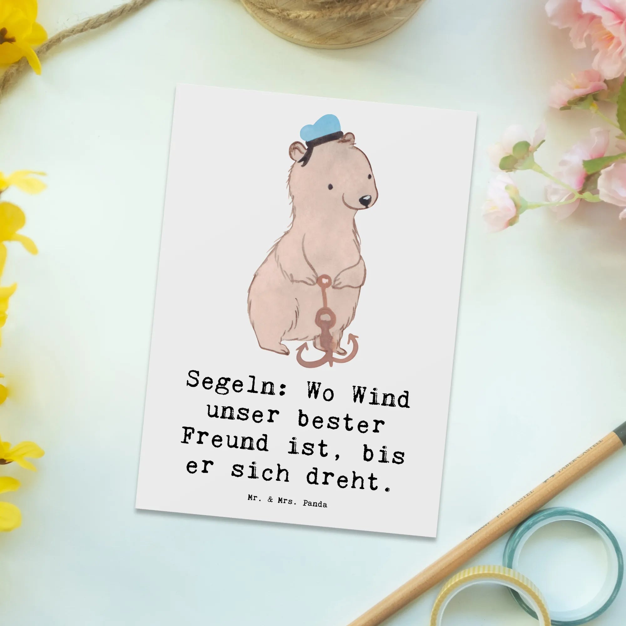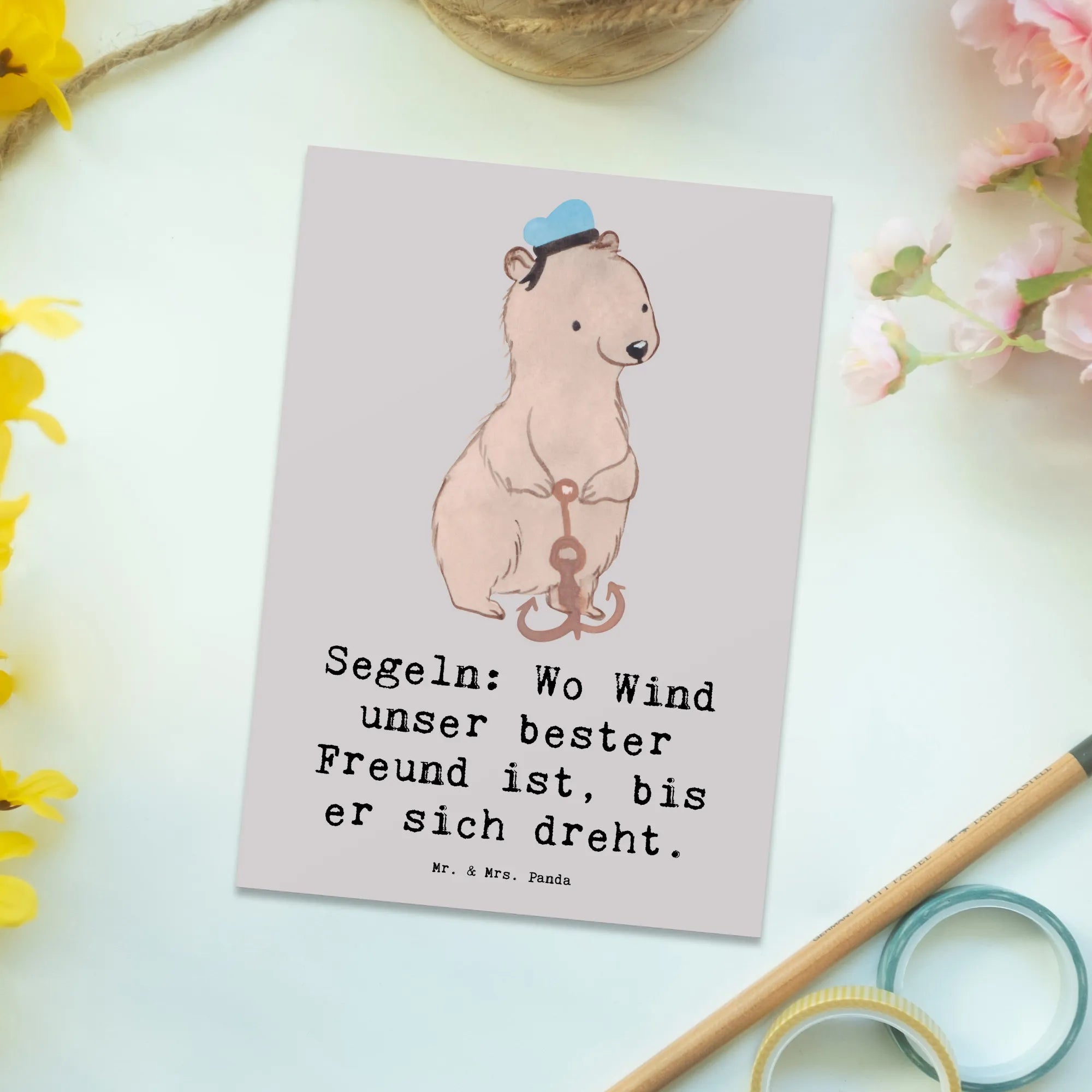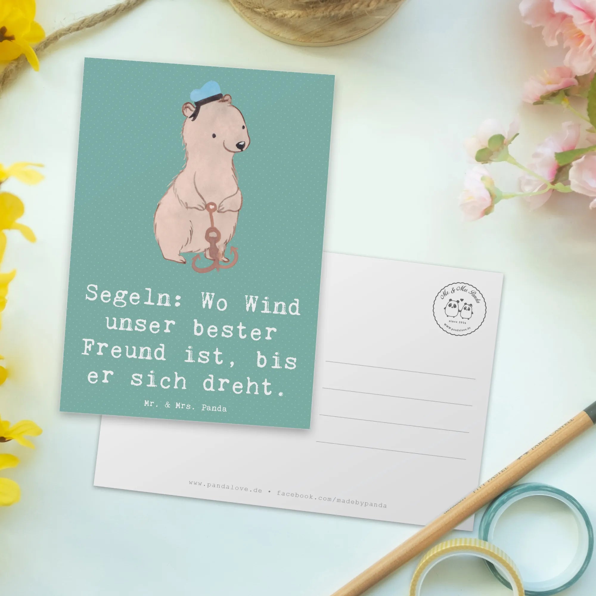 Segeln und die Freiheit auf dem Wasser! Unsere Postkarte mit dem charmanten Motiv "Segeln: Wo Wind unser bester Freund ist, bis er sich dreht" ist das perfekte Geschenk für alle, die das Segeln lieben oder einfach in den Wind der Freiheit eintauchen möchten. Diese einzigartige Postkarte von Mr. & Mrs. Panda bringt nicht nur ein Lächeln auf das Gesicht, sondern eignet sich auch hervorragend für besondere Anlässe wie Geburtstage, Einladungen oder Dankeskarten.