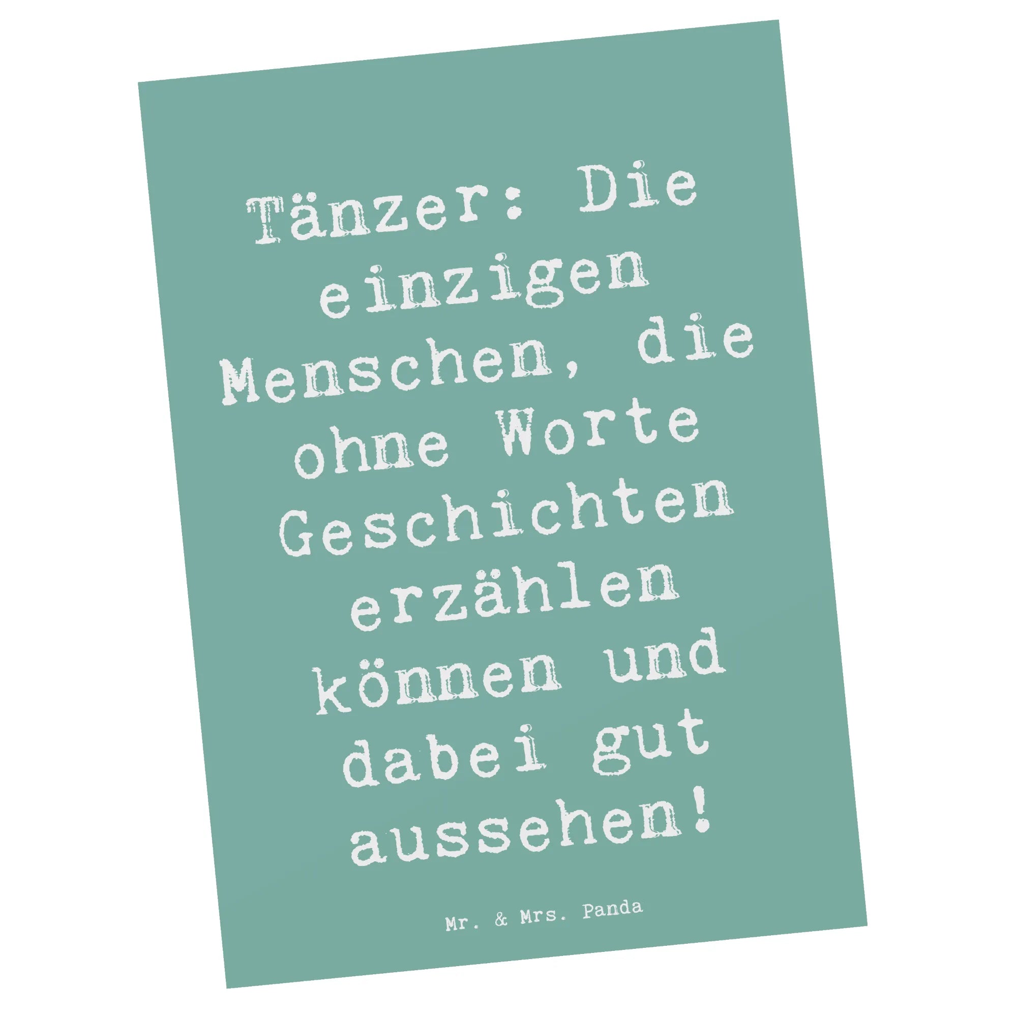 Postkarte Tanzen von Mr. & Mrs. Panda – eine liebevolle Grußkarte für alle Tanzfans! Unsere handgezeichnete Illustration aus der Hobby & Sport Kollektion trifft auf den witzigen Spruch: „Tänzer: Die einzigen Menschen, die ohne Worte Geschichten erzählen können und dabei gut aussehen!“ 🎭💃