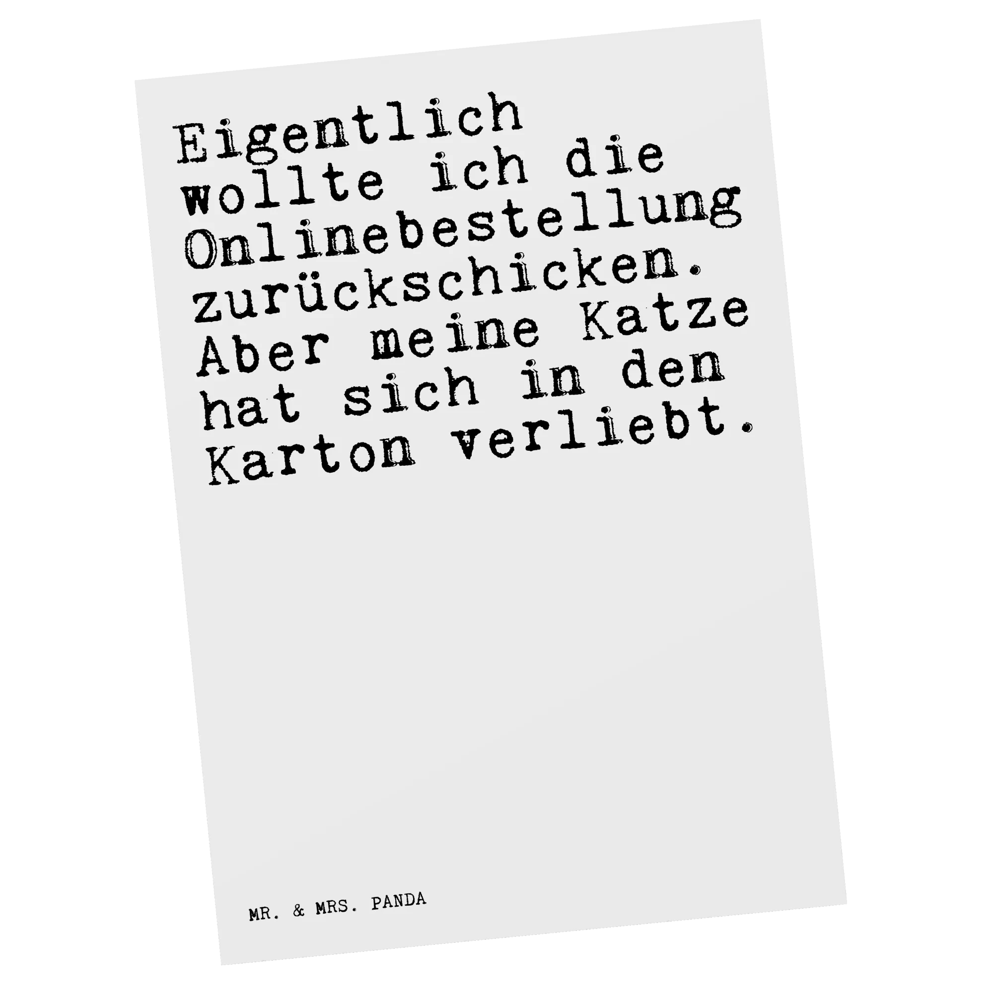 Postkarte Sprüche und Zitate Eigentlich wollte ich die Onlinebestellung zurückschicken. Aber meine Katze hat sich in den Karton verliebt. - Weiß