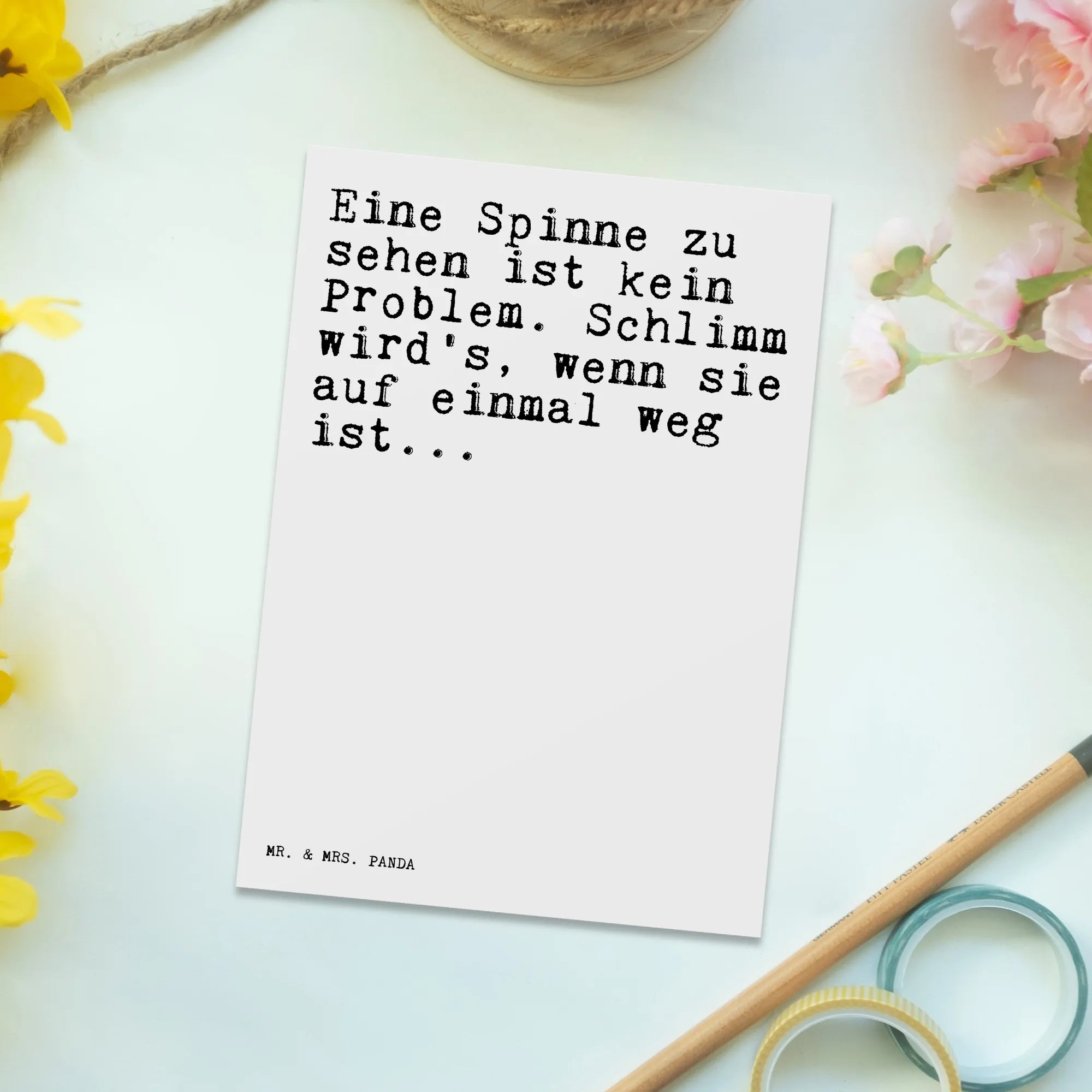 Postkarte Sprüche und Zitate Eine Spinne zu sehen ist kein Problem. Schlimm wird's, wenn sie auf einmal weg ist... - Weiß