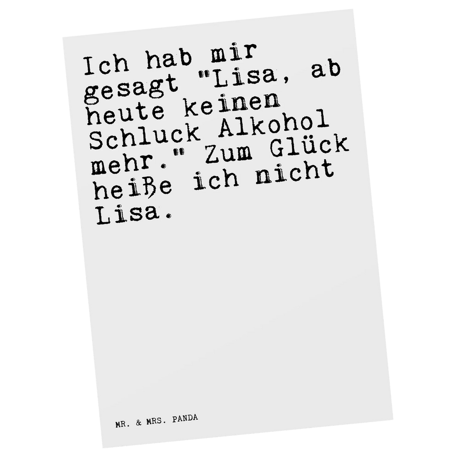 Postkarte Sprüche und Zitate Ich hab mir gesagt "Lisa, ab heute keinen Schluck Alkohol mehr." Zum Glück heiße ich nicht Lisa. - Weiß