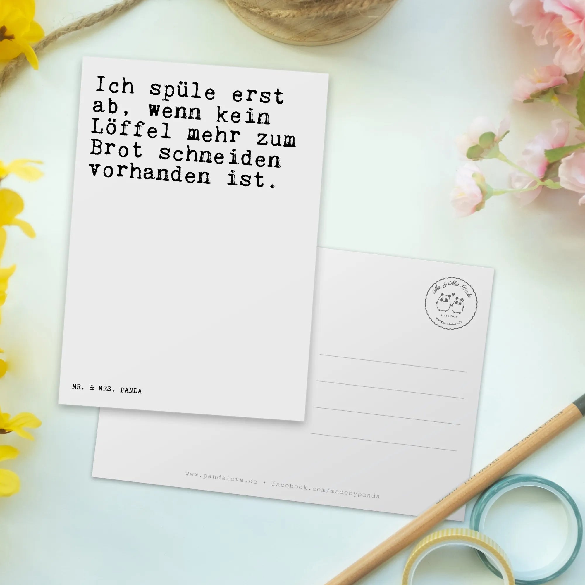 Postkarte Sprüche und Zitate Ich spüle erst ab, wenn kein Löffel mehr zum Brot schneiden vorhanden ist. - Weiß