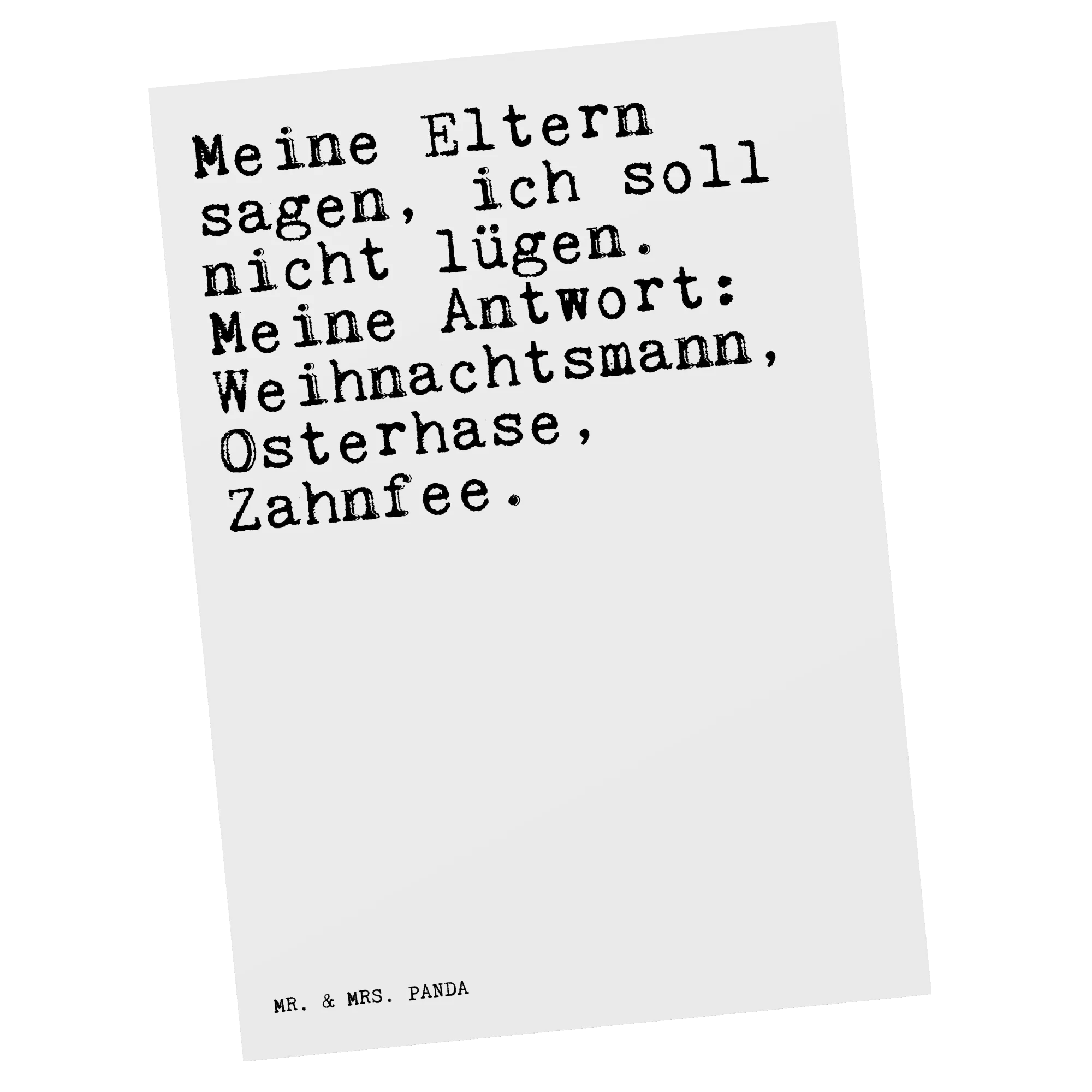 Postkarte Sprüche und Zitate Meine Eltern sagen, ich soll nicht lügen. Meine Antwort: Weihnachtsmann, Osterhase, Zahnfee. - Weiß