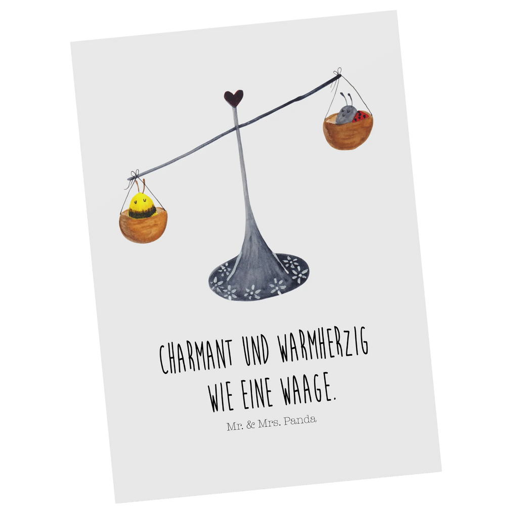 Die einzigartige Postkarte mit dem Sternzeichen Waage von Mr. & Mrs. Panda ist das perfekte Geschenk für all jene, die den Charakter und die Eigenschaften der Waage lieben. Mit dem liebevollen Slogan "Charmant und warmherzig wie eine Waage" bringt sie nicht nur Freude, sondern auch eine Portion Magie in jede Grußbotschaft.
