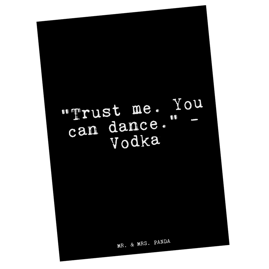 Suchst du nach der perfekten Grußkarte für einen besonderen Anlass? Die einzigartige Postkarte "Trust me. You can dance." - Vodka von Mr. & Mrs. Panda ist genau das Richtige!