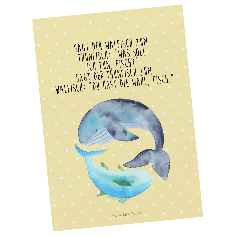 Postkarte Walfisch Thunfisch - mit Spruch - Gelb Pastell