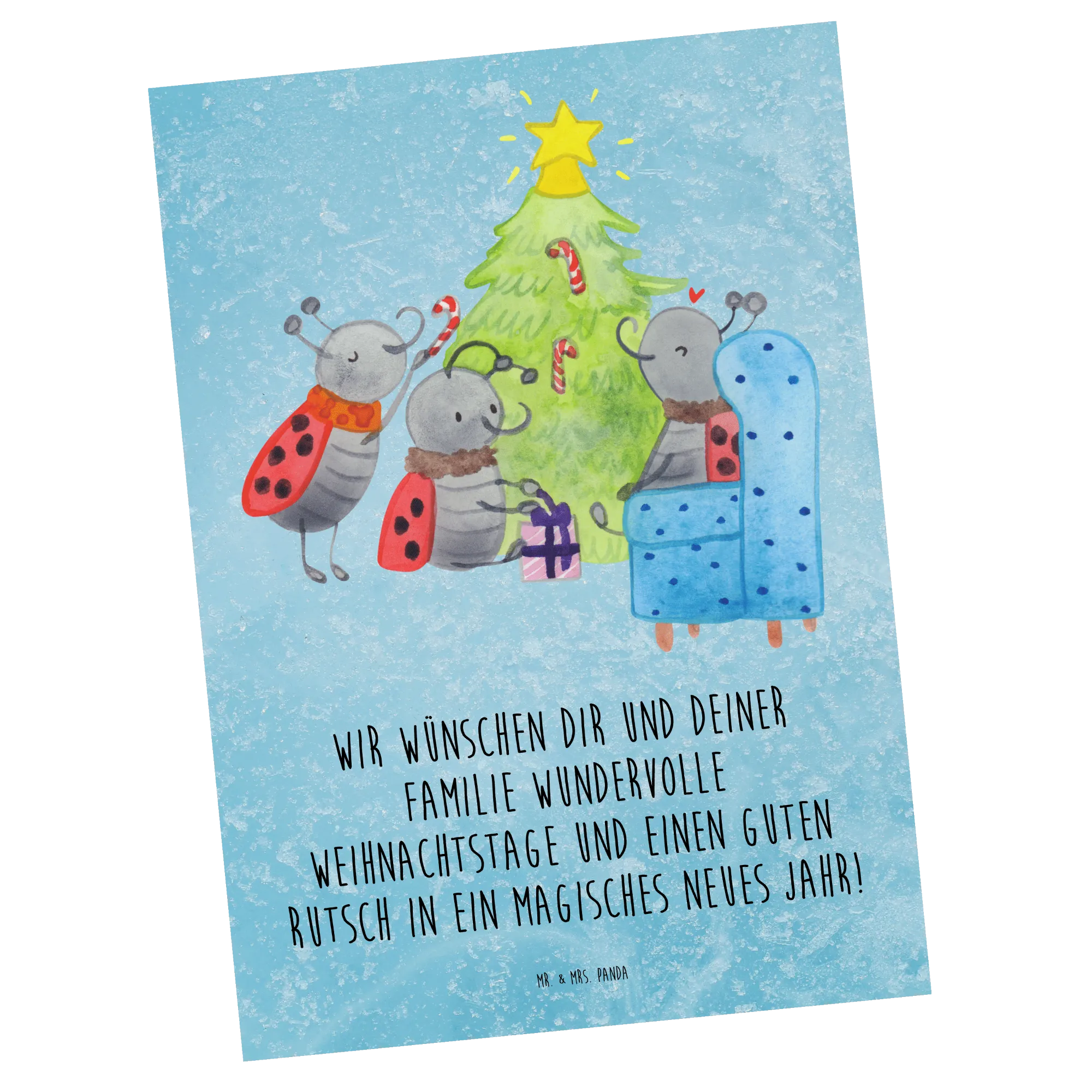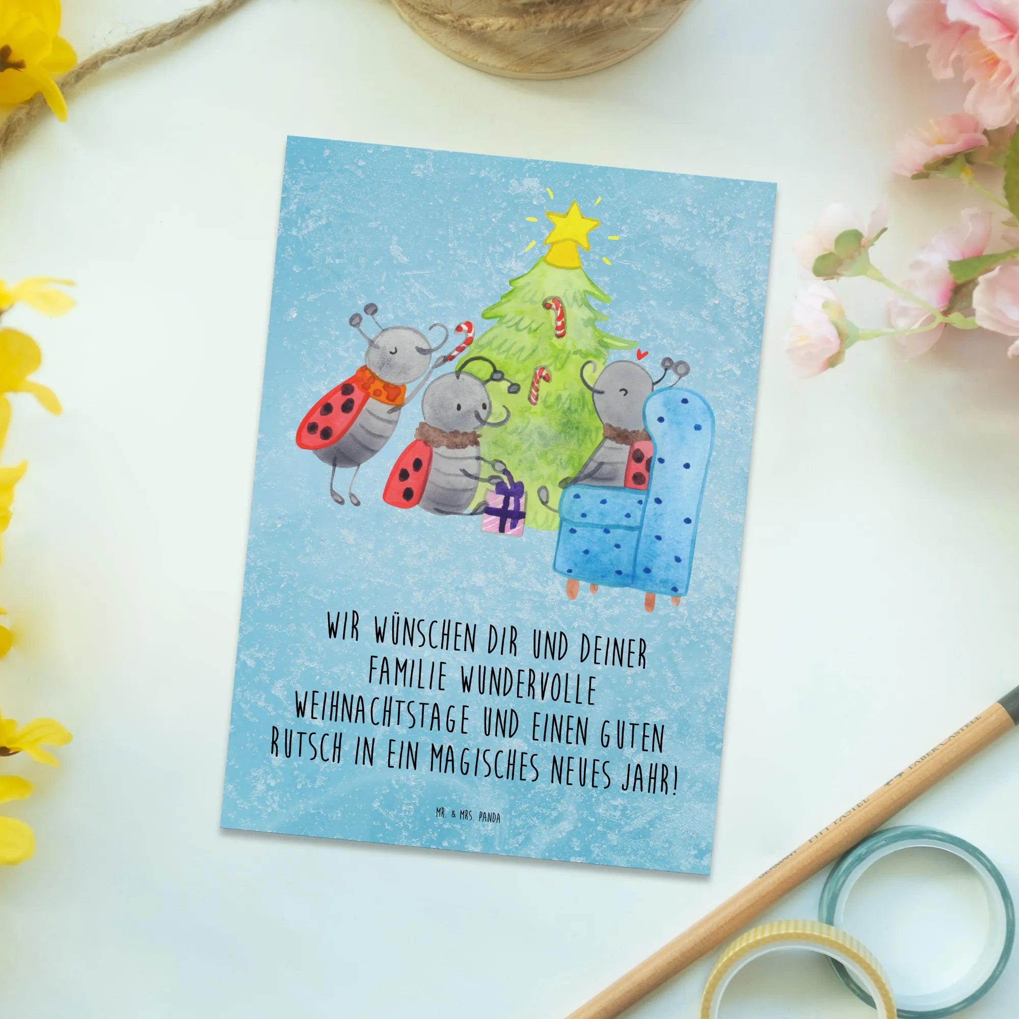 Auf der Karte siehst du eine märchenhafte Szene mit drei fröhlichen Marienkäfern, die um einen Weihnachtbaum herumtanzen und diesen mit süßen Pfefferminzstangen und Geschenken dekorieren. Diese Motive erinnern an die eigene Kindheit und lassen die Herzen höher schlagen.
