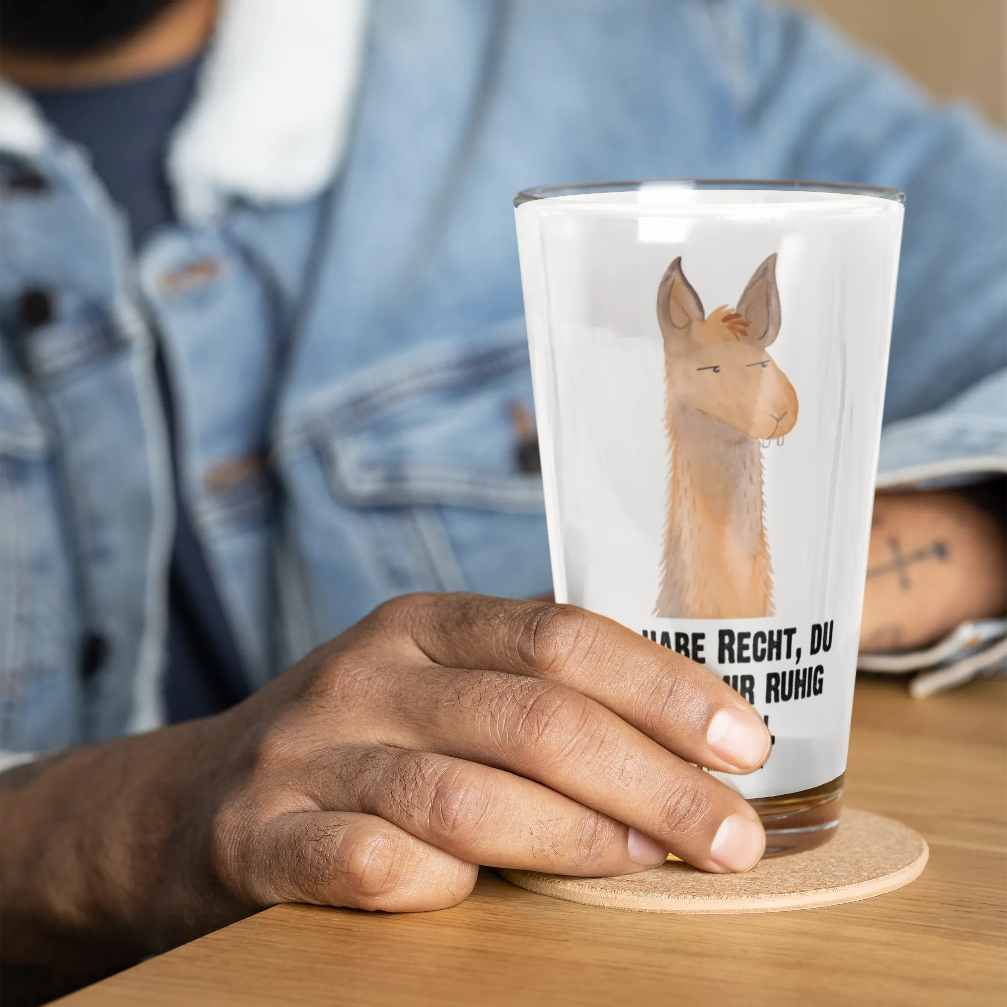 Premium Trinkglas Lamakopf genervt - mit Spruch