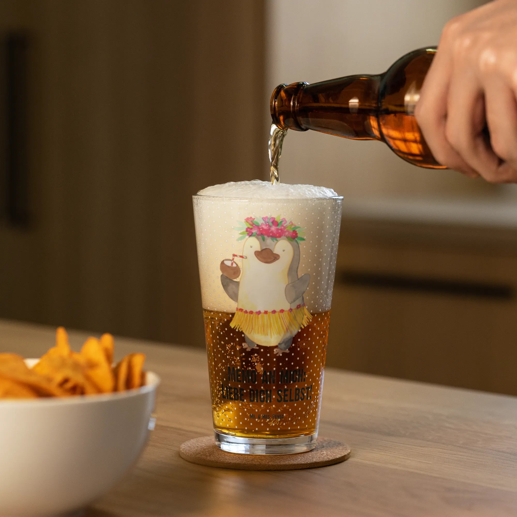 Das Premium Trinkglas mit dem fröhlichen Pinguin Kokosnuss-Motiv aus der Pinguin - Kollektion von Mr. & Mrs. Panda ist der perfekte Begleiter für jeden deiner Sommershows! Dieses liebevoll gestaltete Trinkglas bringt ein Stück Hawaii und Urlaub in dein Zuhause. Egal, ob du ein kühles Bier, einen exotischen Cocktail oder einfach eine erfrischende Limonade genießt – dieses Glas ist der ideale Partner für deine Lieblingsgetränke. Es erinnert dich daran, das Leben in vollen Zügen zu genießen und dass gute Laune immer in Reichweite ist!