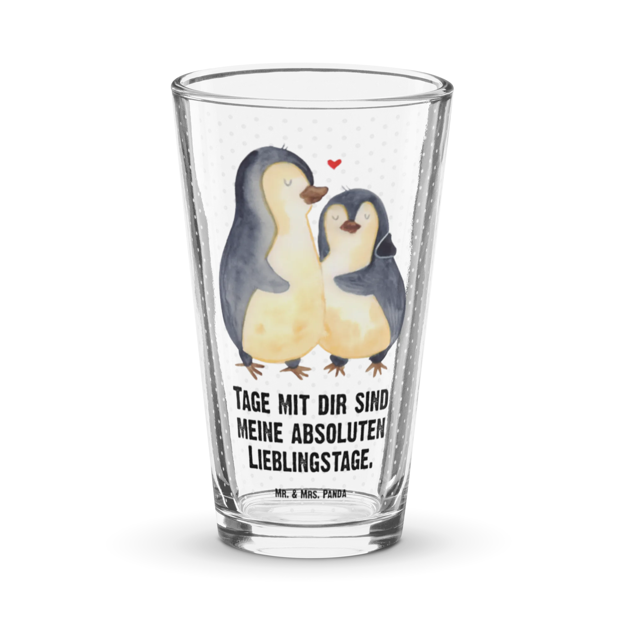 Das Premium Trinkglas Pinguin umarmend aus der bezaubernden Pinguin-Kollektion von Mr. & Mrs. Panda ist der perfekte Begleiter für jeden Anlass. Es ist nicht nur ein einfaches Trinkglas; es ist eine liebevolle Botschaft, die Freude und Zuneigung ausstrahlt. Das wunderschöne Motiv mit den Pinguinen, die sich umarmen, erinnert uns daran, wie wichtig die besonderen Menschen in unserem Leben sind.