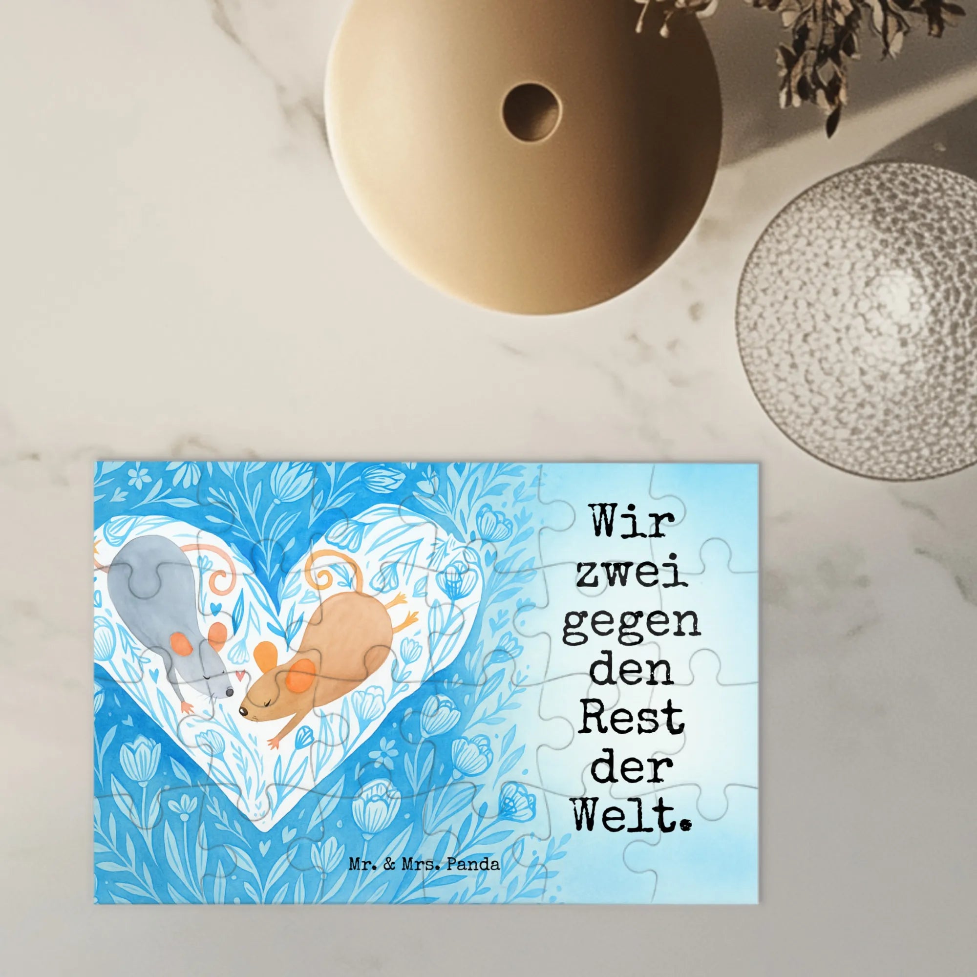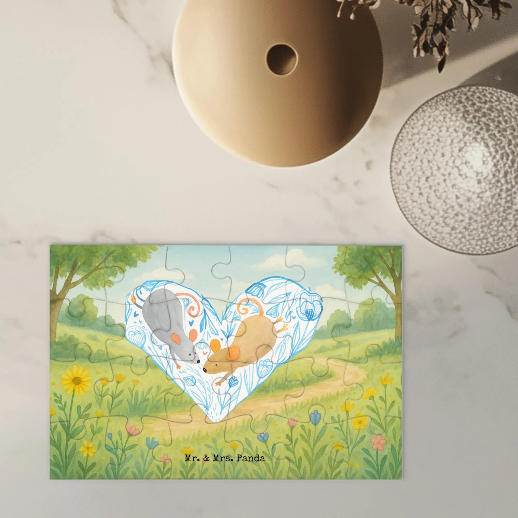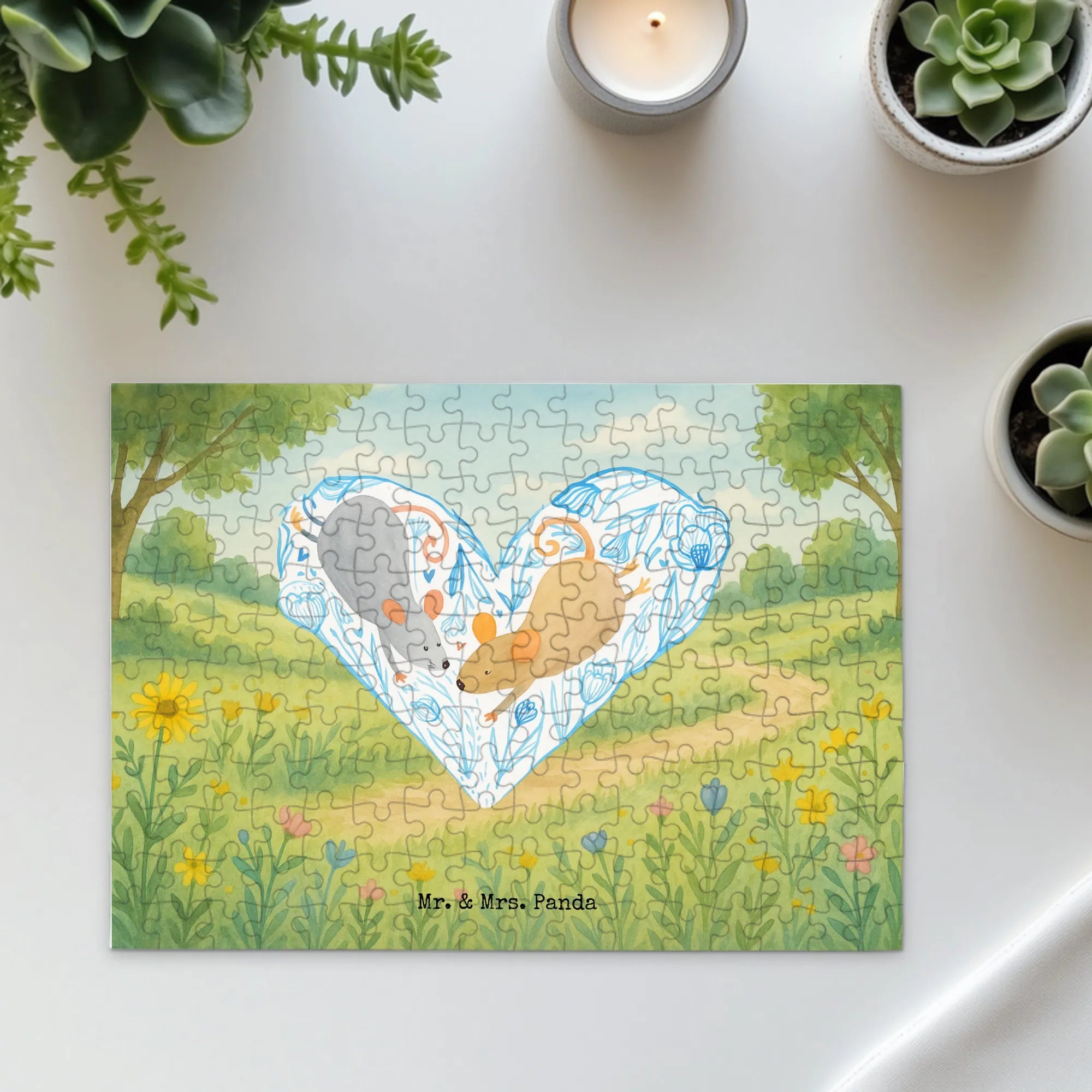 Puzzle Mäuse Herz Design - 192 Teile - mit Spruch