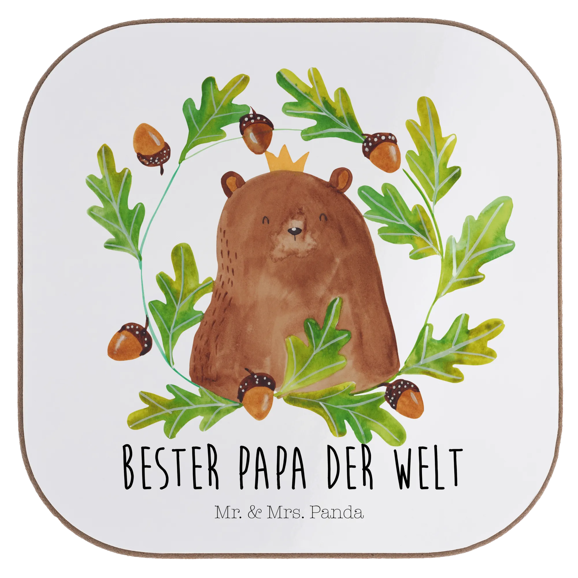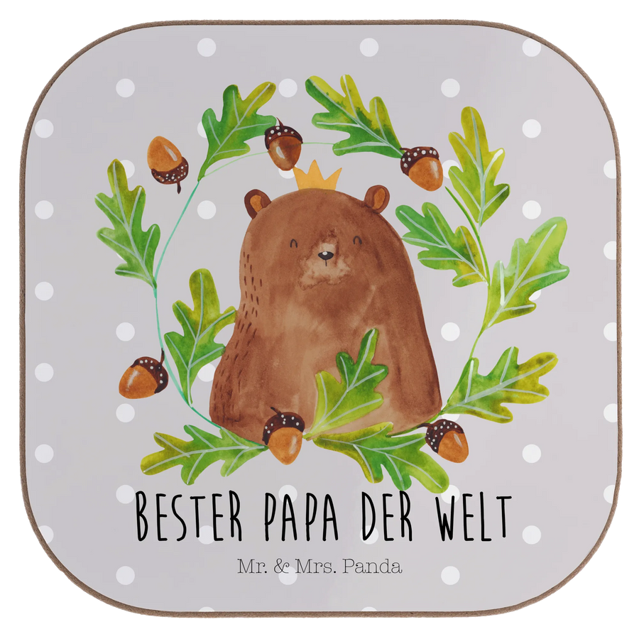 Ein kleines Königreich für Papa: Unser quadratischer Untersetzer „Bär König" aus der Bär-Kollektion von Mr. & Mrs. Panda ist das perfekte Geschenk für alle Väter. Das liebevolle Motiv zeigt einen süßen Bären mit Krone und den herzlichen Spruch „Bester Papa der Welt". Ein Design, das zum Schmunzeln einlädt und zur täglichen Erinnerung wird.