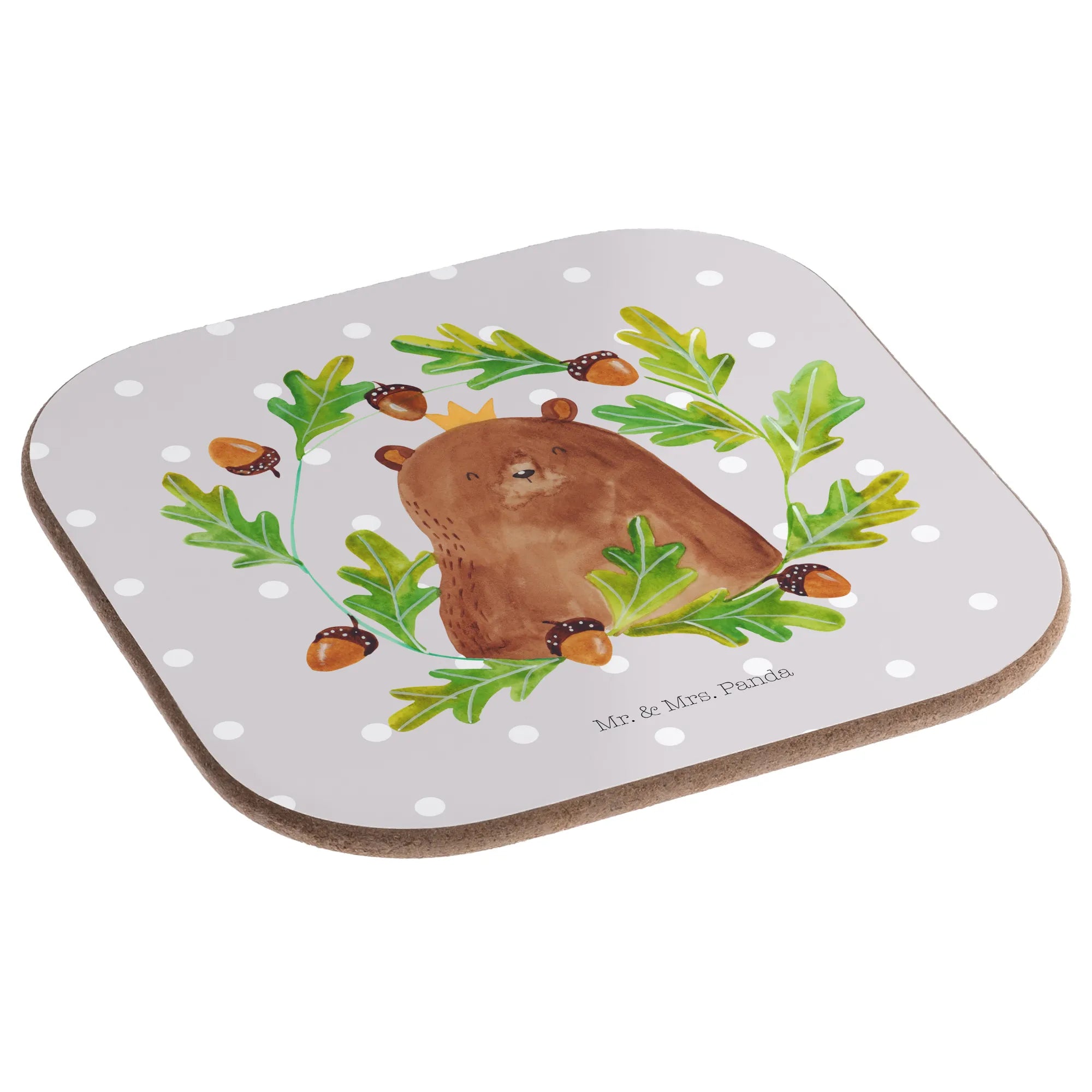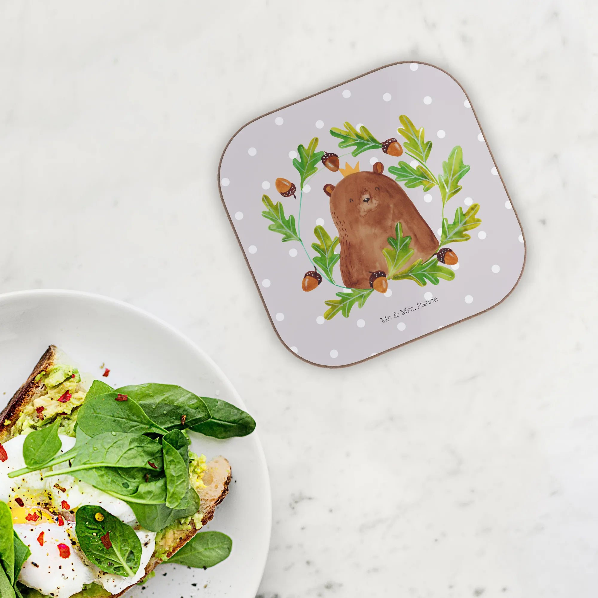 Untersetzer Bär König - mit Spruch - Grau Pastell