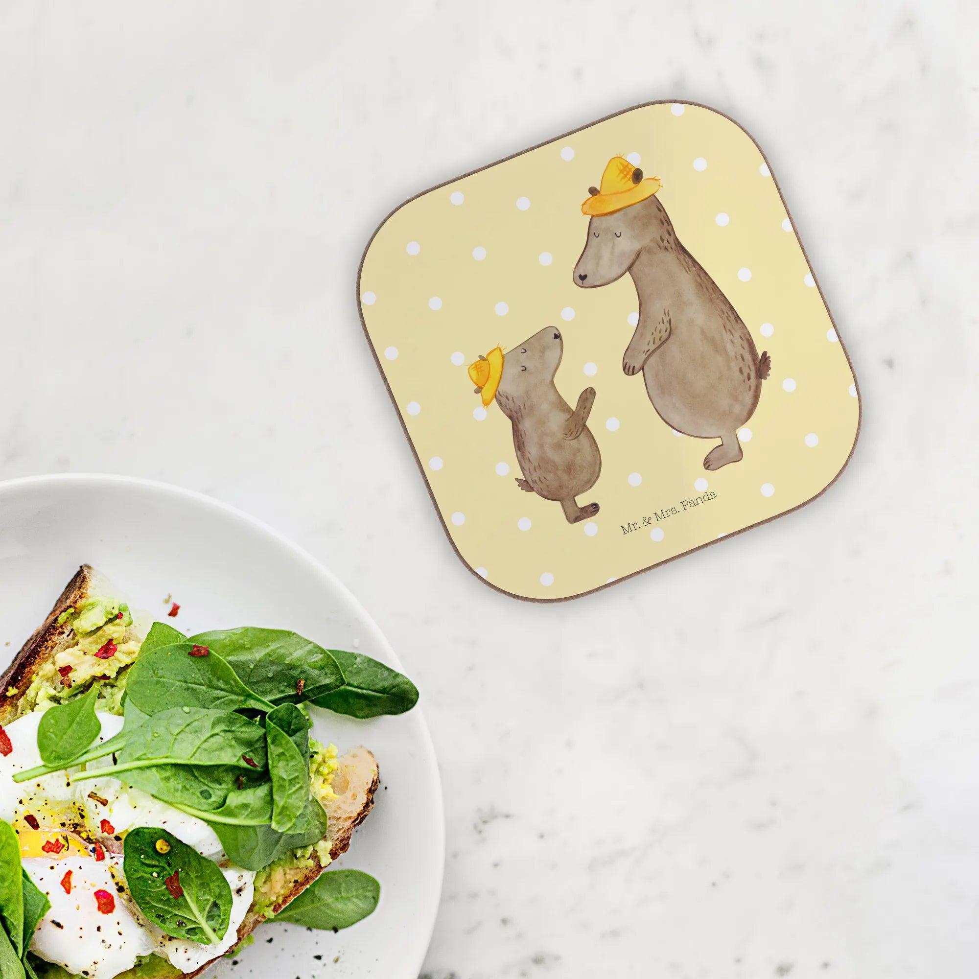 Ein kleines Stück Familienliebe für deinen Tisch: Der quadratische Untersetzer „Bären mit Hut“ aus der Familien-Kollektion von Mr. & Mrs. Panda vereint liebevolle Illustration und praktischen Schutz für deinen Esstisch oder Couchtisch. Die beiden Bären mit ihren gelben Hüten strahlen Wärme und Verbundenheit aus und passen perfekt als Geschenk für Papa, Papi oder den Lieblingsmenschen – besonders zum Vatertag oder Geburtstag.