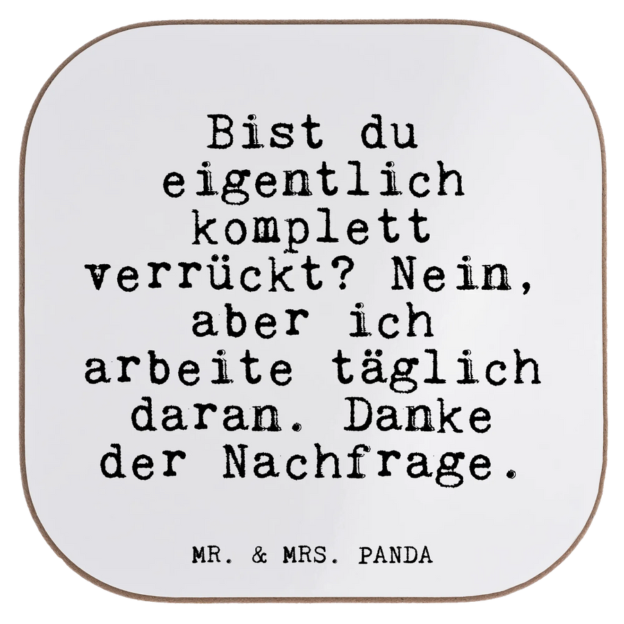 Quadratische Untersetzer Fun Talk Bist du eigentlich komplett verrückt? Nein, aber ich arbeite täglich daran. Danke der Nachfrage.