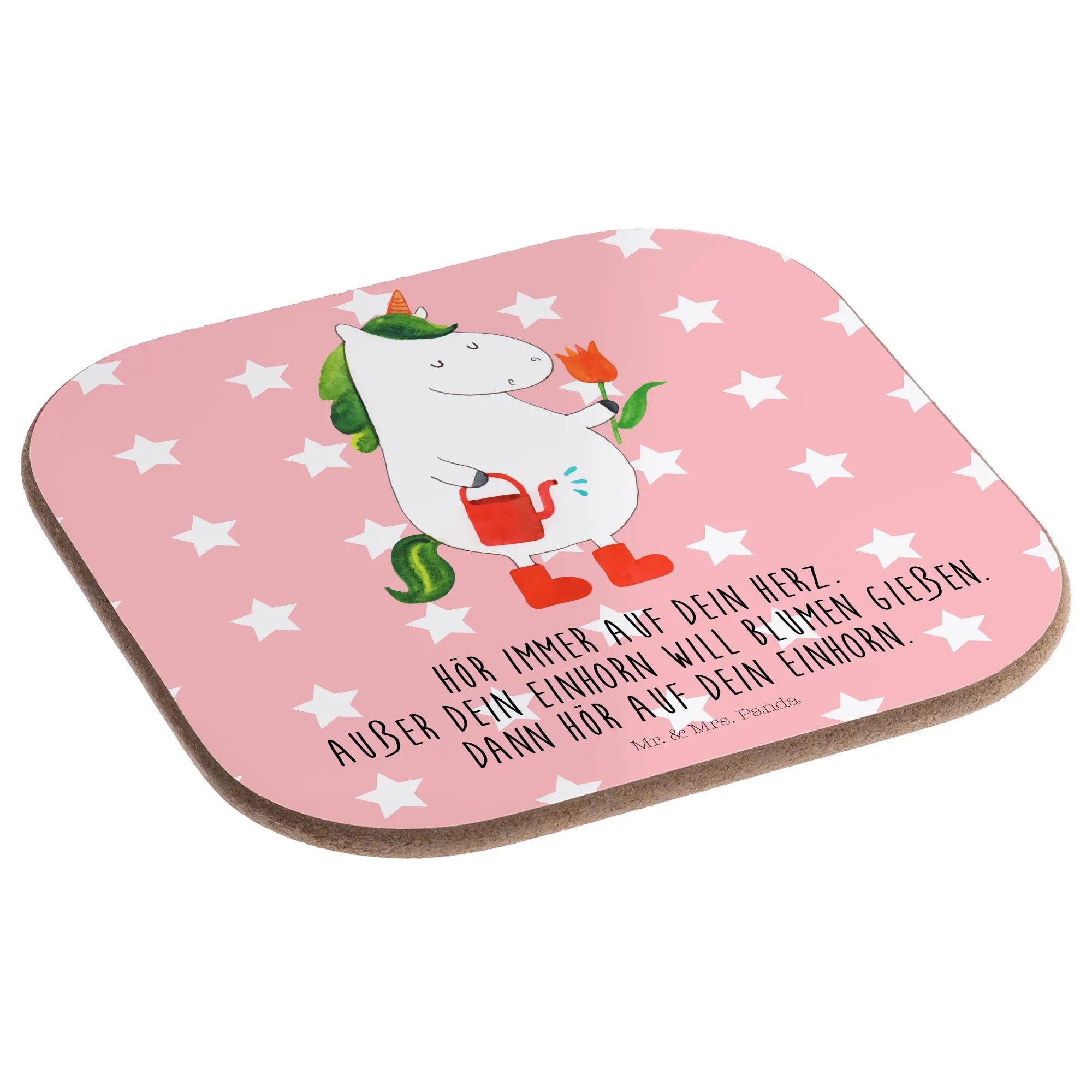 Untersetzer Einhorn Gärtner - mit Spruch - Rot Pastell