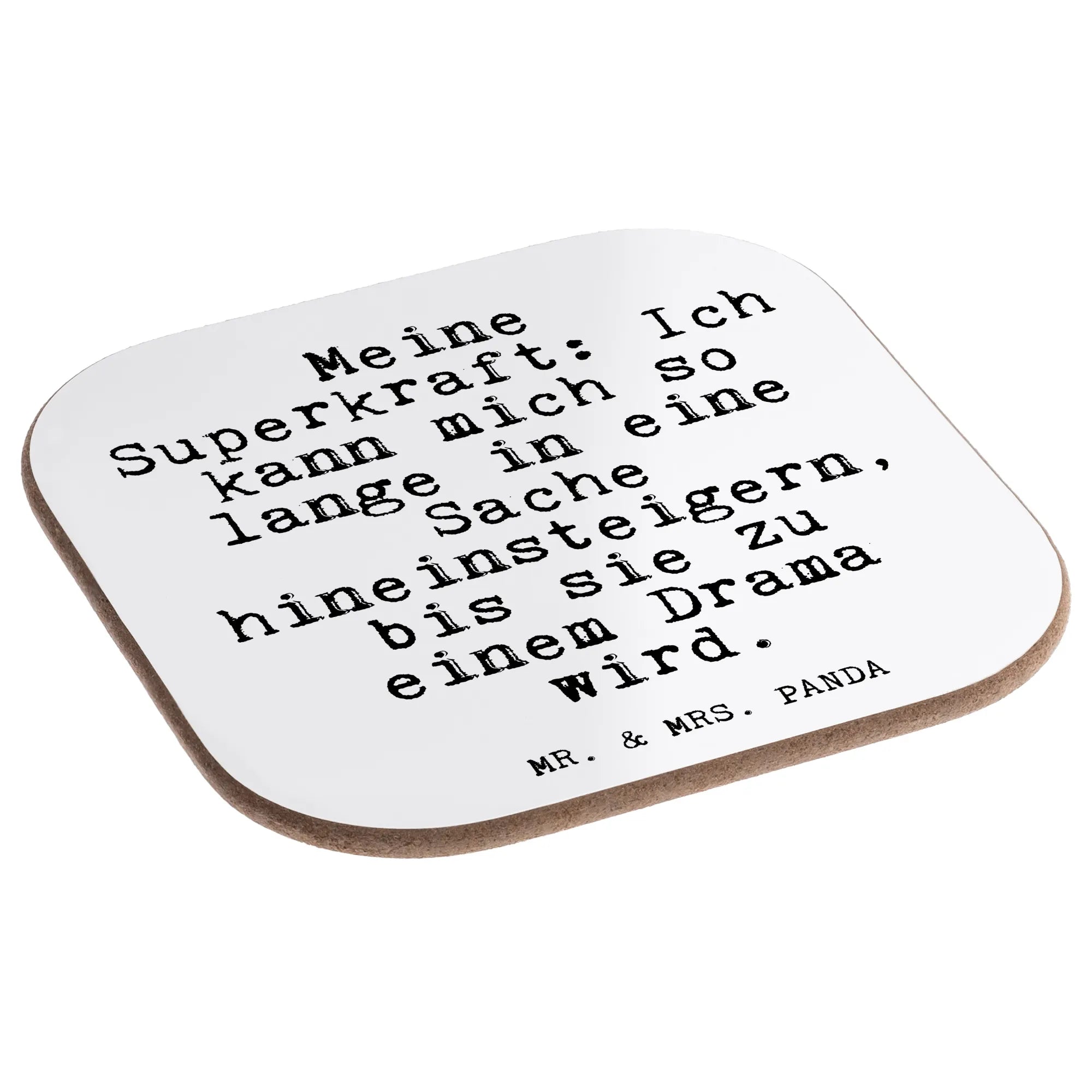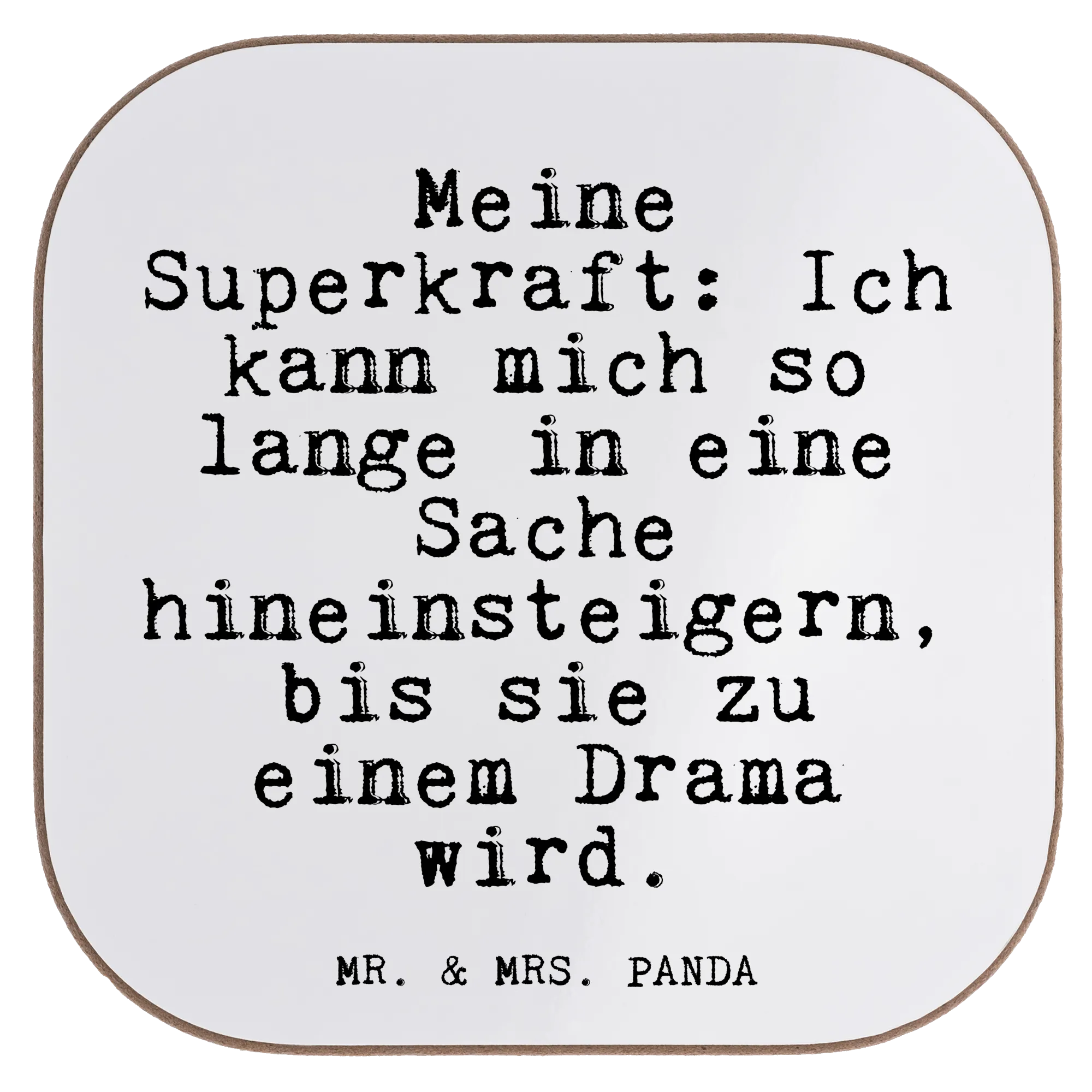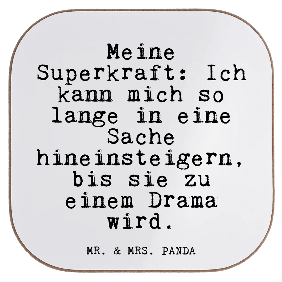 Quadratische Untersetzer Fun Talk Meine Superkraft: Ich kann mich so lange in eine Sache hineinsteigern, bis sie zu einem Drama wird.