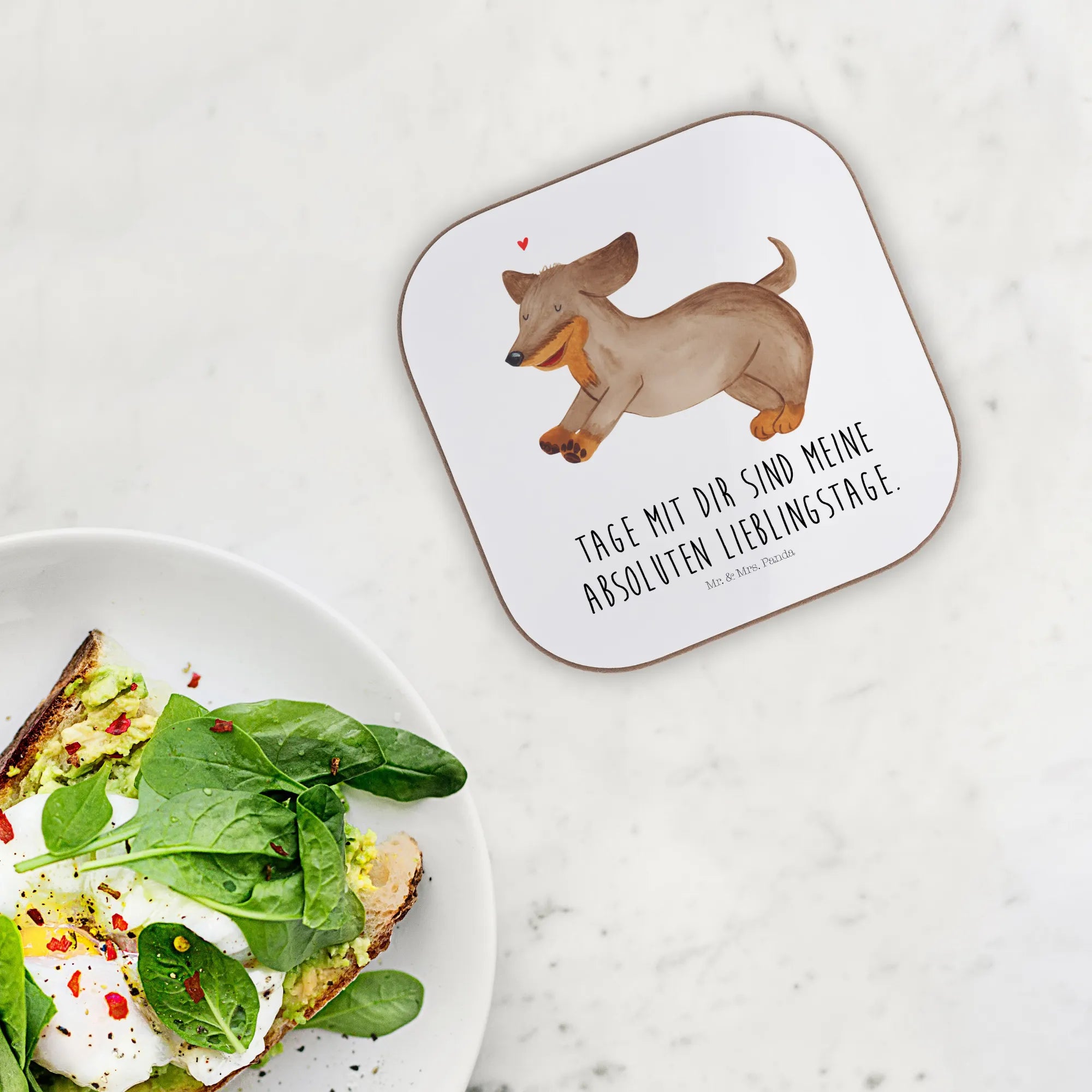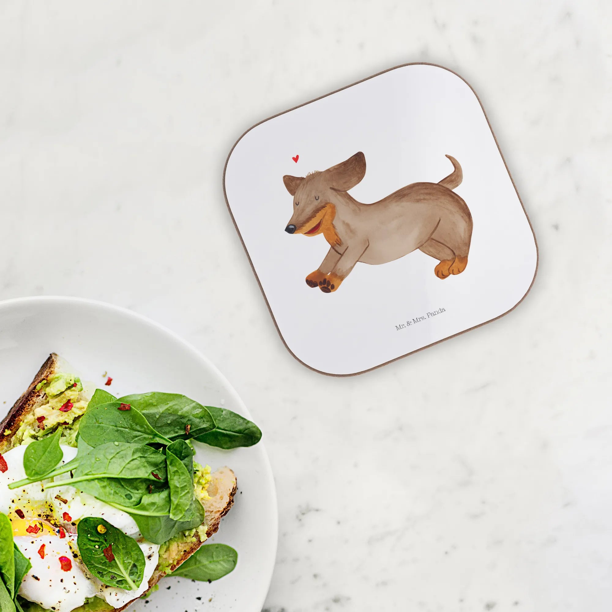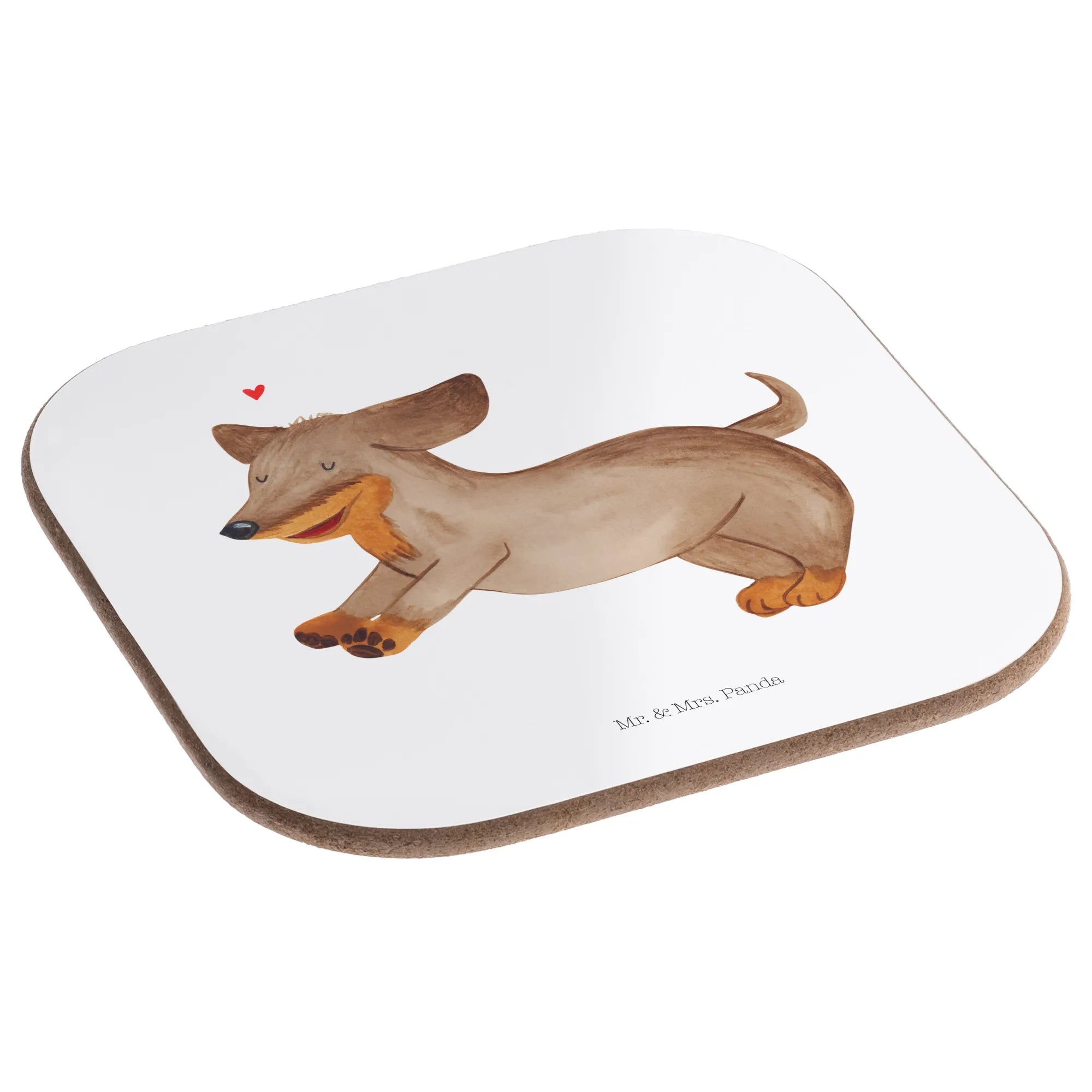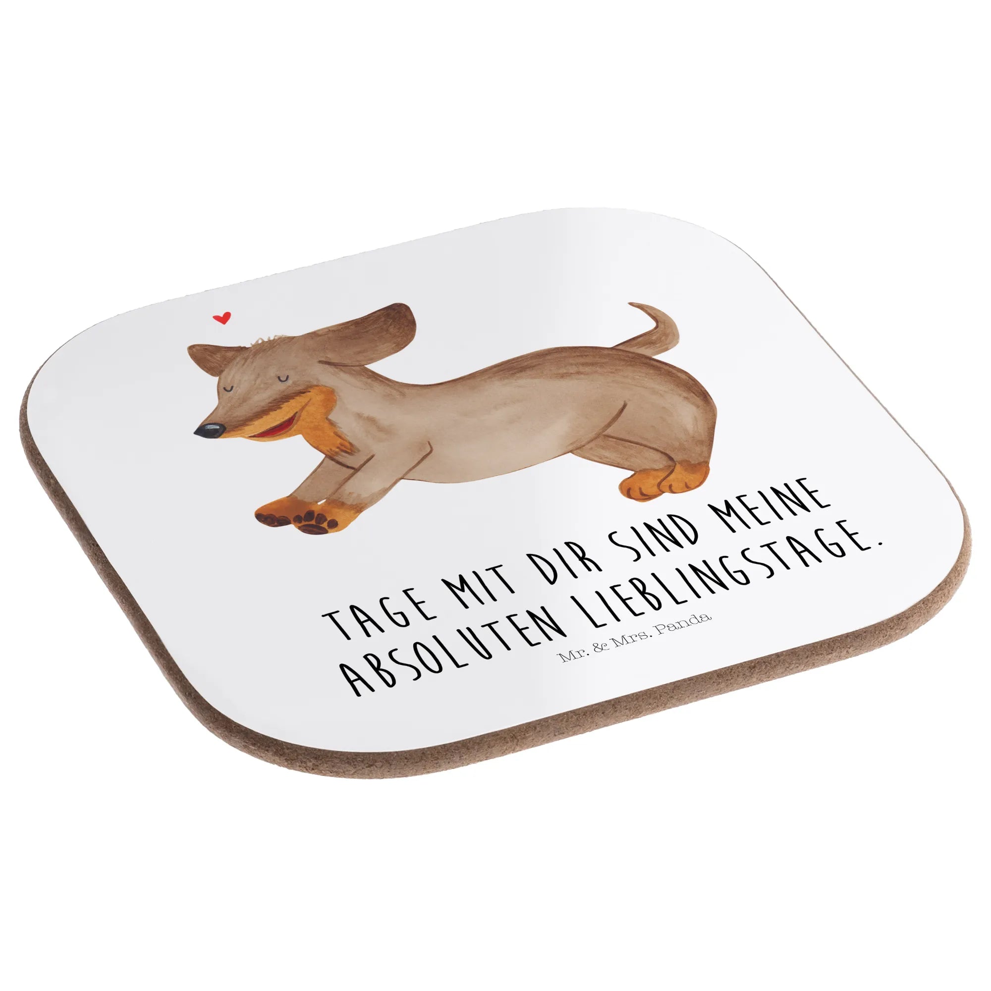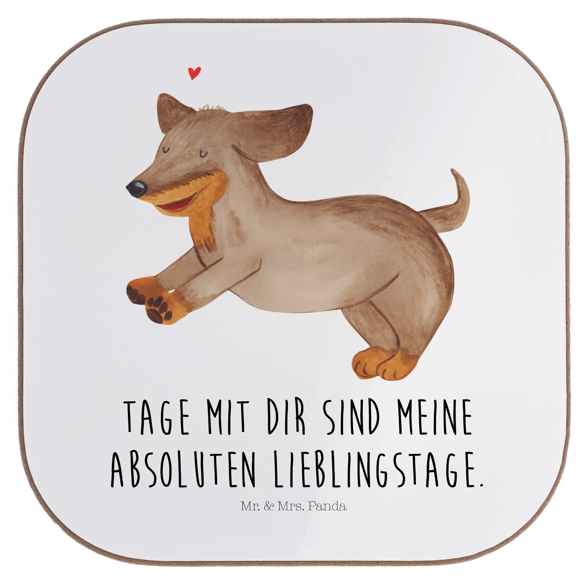 Entdecke den fröhlichen Dackel Untersetzer aus der einzigartigen Hunde Kollektion von Mr. & Mrs. Panda! Dieser wunderschöne quadratische Untersetzer hat die perfekte Größe von 100 mm x 100 mm und einen stabilen, hochwertigen Hartfaser-Material, das deine Tische vor Abdrücken, Kratzern und extremen Temperaturen schützt.