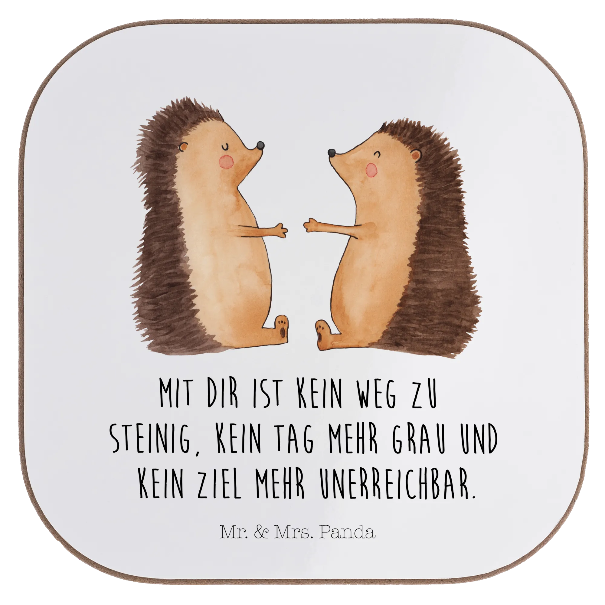 Der wunderschöne quadratische Untersetzer "Igel Liebe" von Mr. & Mrs. Panda ist mehr als nur ein praktisches Accessoire - es ist ein Liebesbeweis! Wenn du deinen Partner oder deine Partnerin mit einem besonderen Geschenk überraschen möchtest, dann ist dieser Untersetzer genau das Richtige. Die süßen Igelchen auf dem Motiv strahlen Zuneigung aus und bringen ein Lächeln in jedem Moment. Sie zeigen, dass kein Weg zu steinig, kein Tag mehr grau und kein Ziel unerreichbar ist, solange ihr zusammen seid.