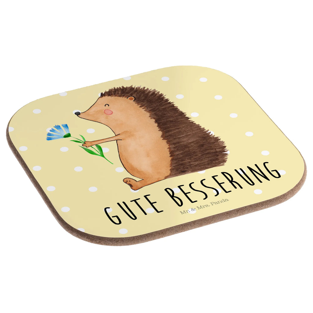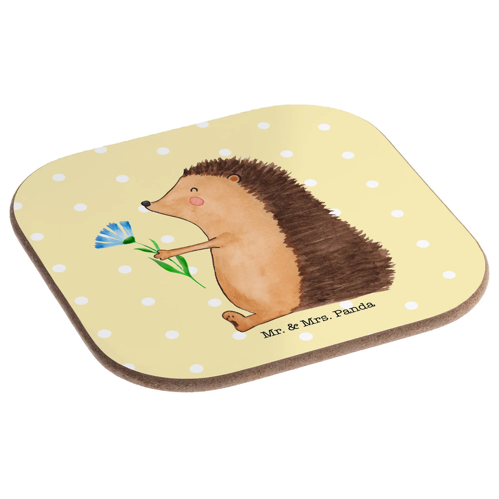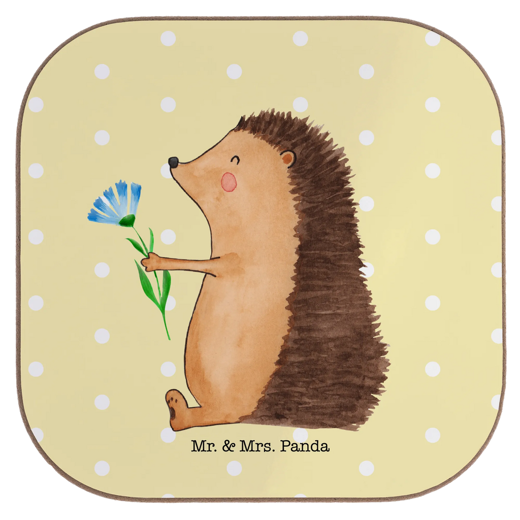 Untersetzer Igel Blumen - mit Spruch - Gelb Pastell