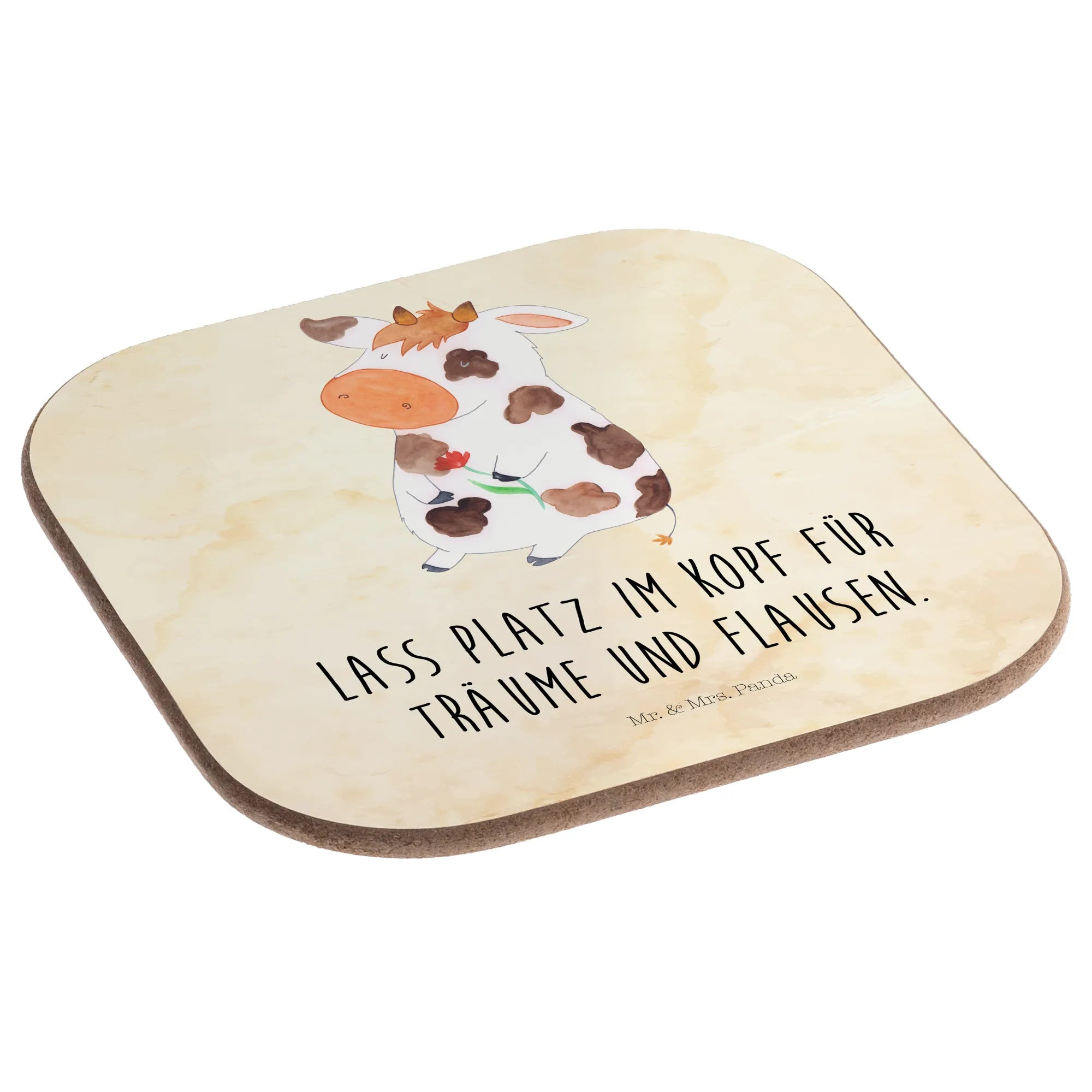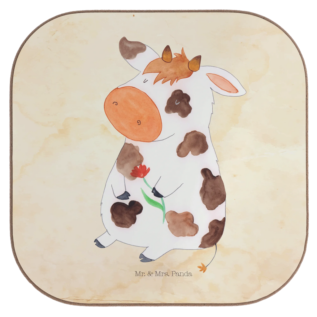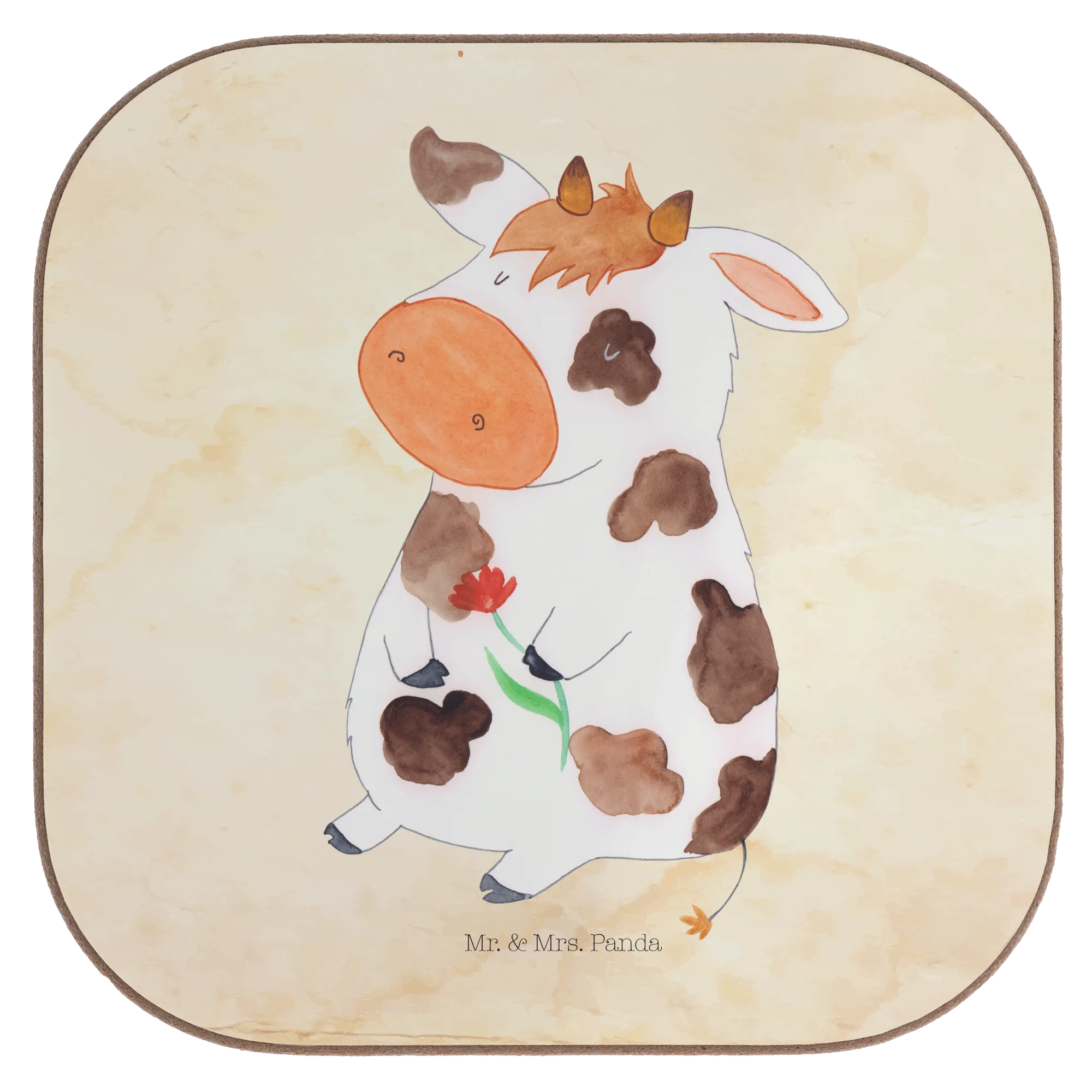 Der perfekte Untersetzer von Mr. & Mrs. Panda - unser wunderschöner quadratischer Untersetzer mit dem niedlichen Kuh-Motiv ist ein absoluter Hit für jeden Tierfreund! Dieser Untersetzer ist nicht nur eine praktische Lösung, um Tischoberflächen vor unschönen Abdrücken und Kratzern zu schützen, sondern bringt charmante Bauernhof-Atmosphäre in dein Zuhause. ❤️ Die kleine, verträumte Kuh, die stolz mit einer Blume in der Hand posiert, bringt Freude und Motivation in jeden Moment.