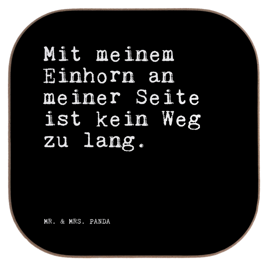 Quadratische Untersetzer Sprüche und Zitate Mit meinem Einhorn an meiner Seite ist kein Weg zu lang.
