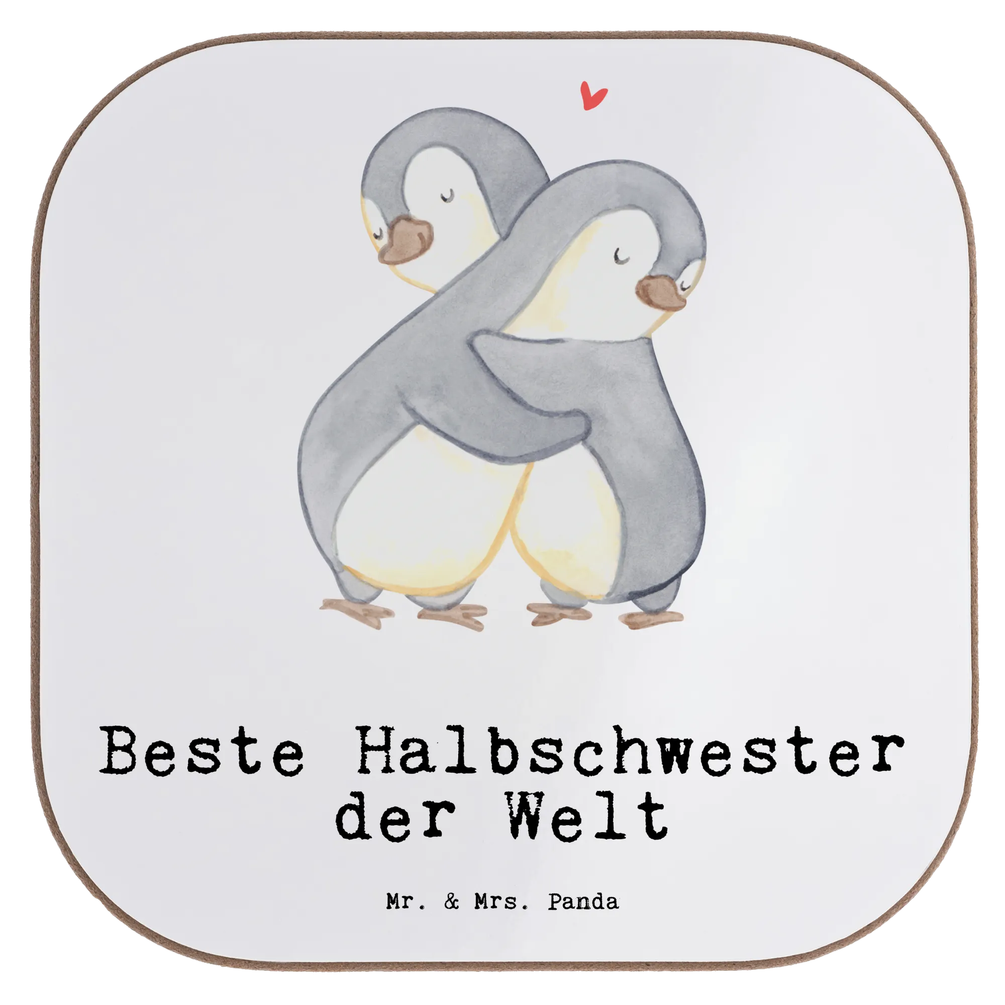 Untersetzer für Gläser Pinguin Beste Halbschwester der Welt