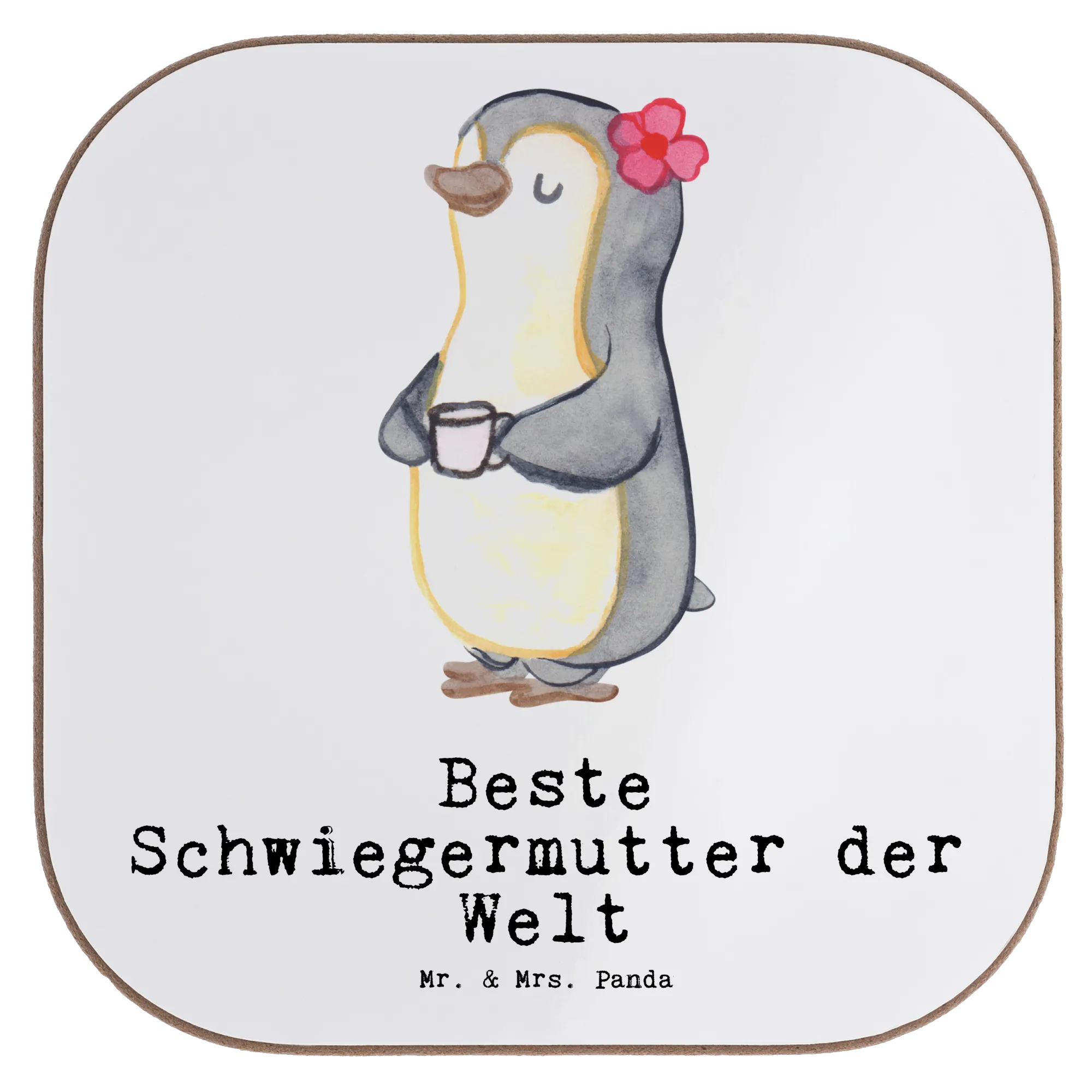 Der quadratische Untersetzer "Beste Schwiegermutter der Welt" von Mr. & Mrs. Panda ist das perfekte Geschenk für einen besonderen Anlass! Mit einem süßen Pinguin, der begeistert eine Tasse Kaffee schlürft, zaubert dieser Untersetzer ein Lächeln auf das Gesicht Deiner Schwiegermutter.