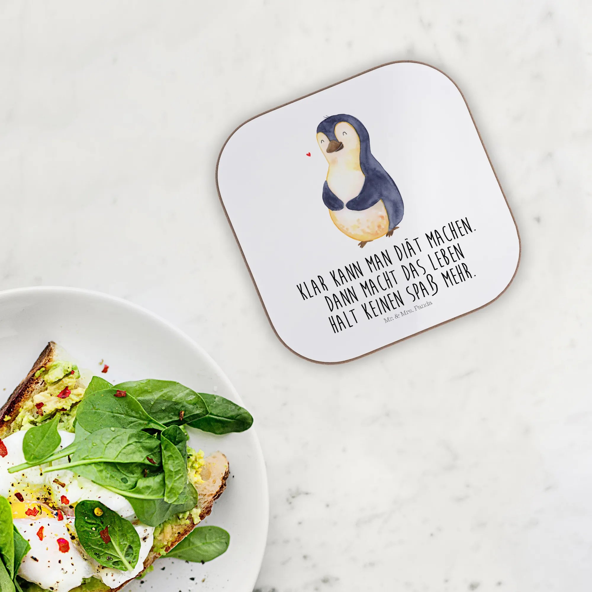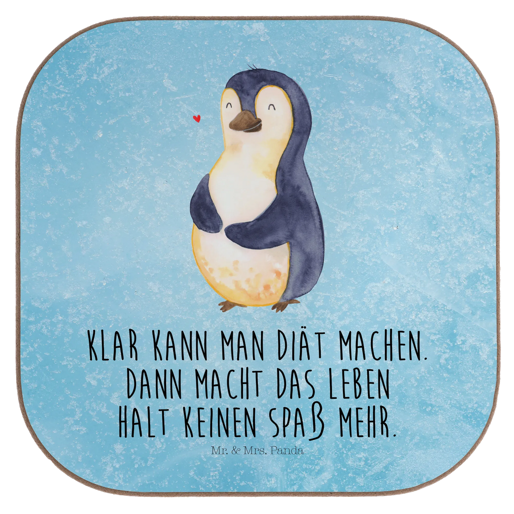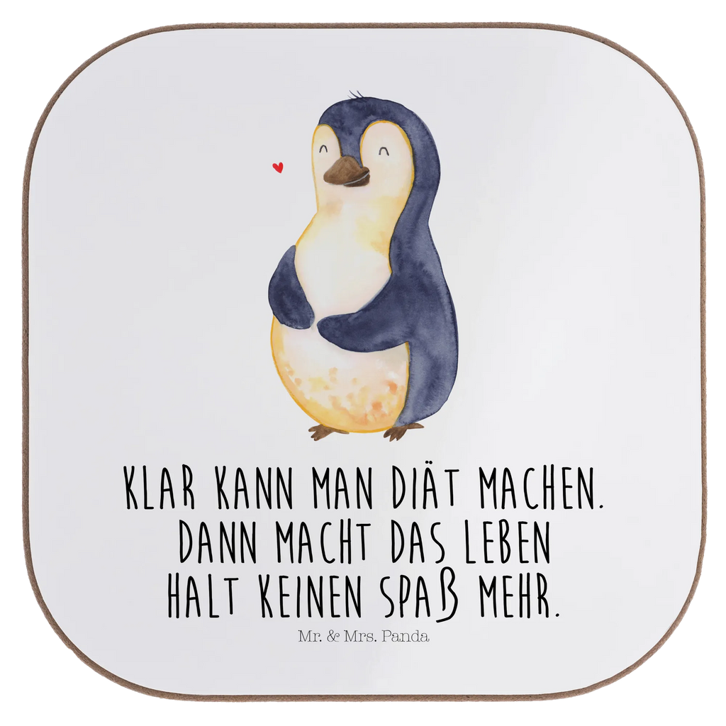 Mr. & Mrs. Panda Untersetzer „Pinguin Diät“ – das perfekte kleine Geschenk für alle, die Humor, Selbstliebe und ein bisschen Augenzwinkern lieben. Unser quadratischer Untersetzer zeigt einen fröhlichen Pinguin, der genüsslich seinen Bauch streichelt, und trägt den frechen Spruch: "Klar kann man Diät machen. Dann macht das Leben halt keinen Spaß mehr." 🎉