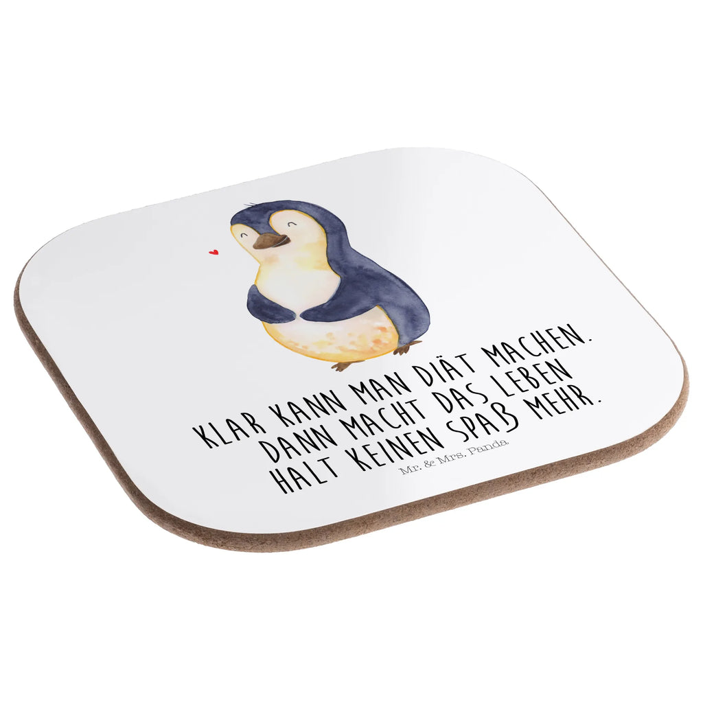 Quadratische Untersetzer Pinguin Diät - mit Spruch - Weiß