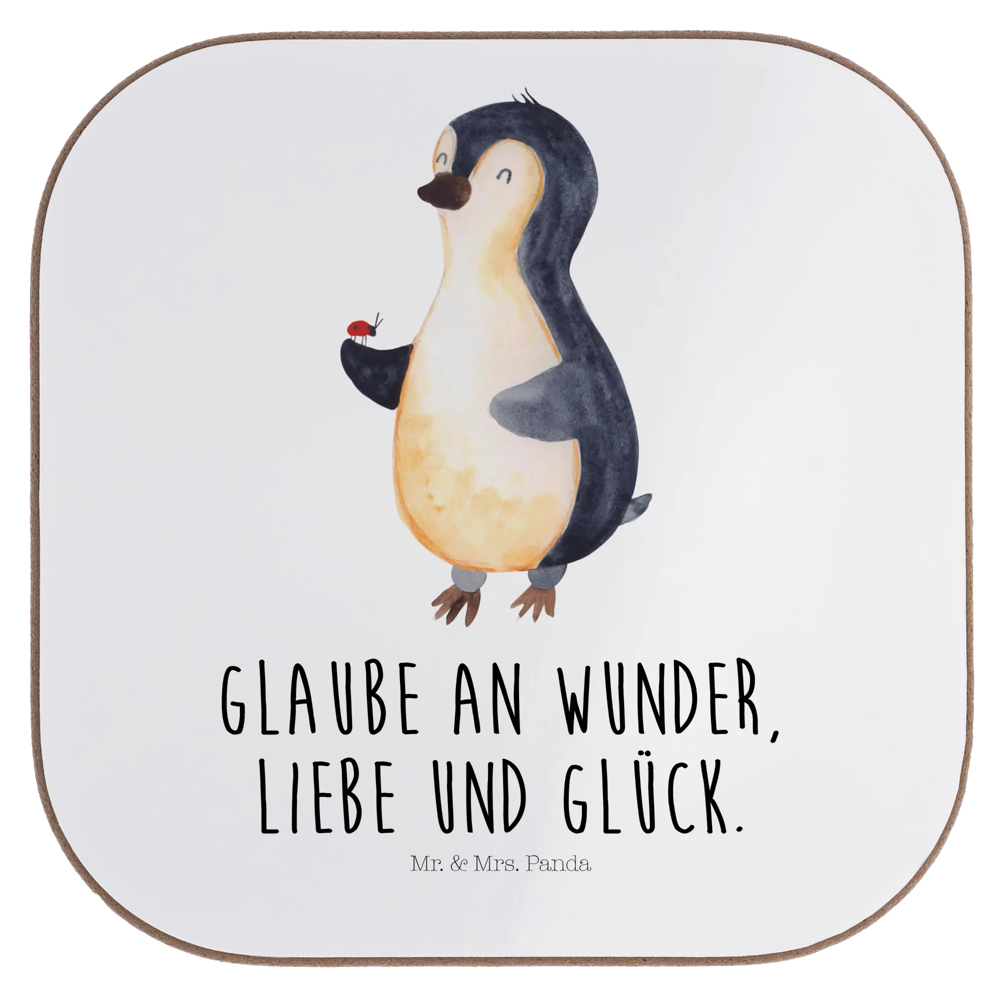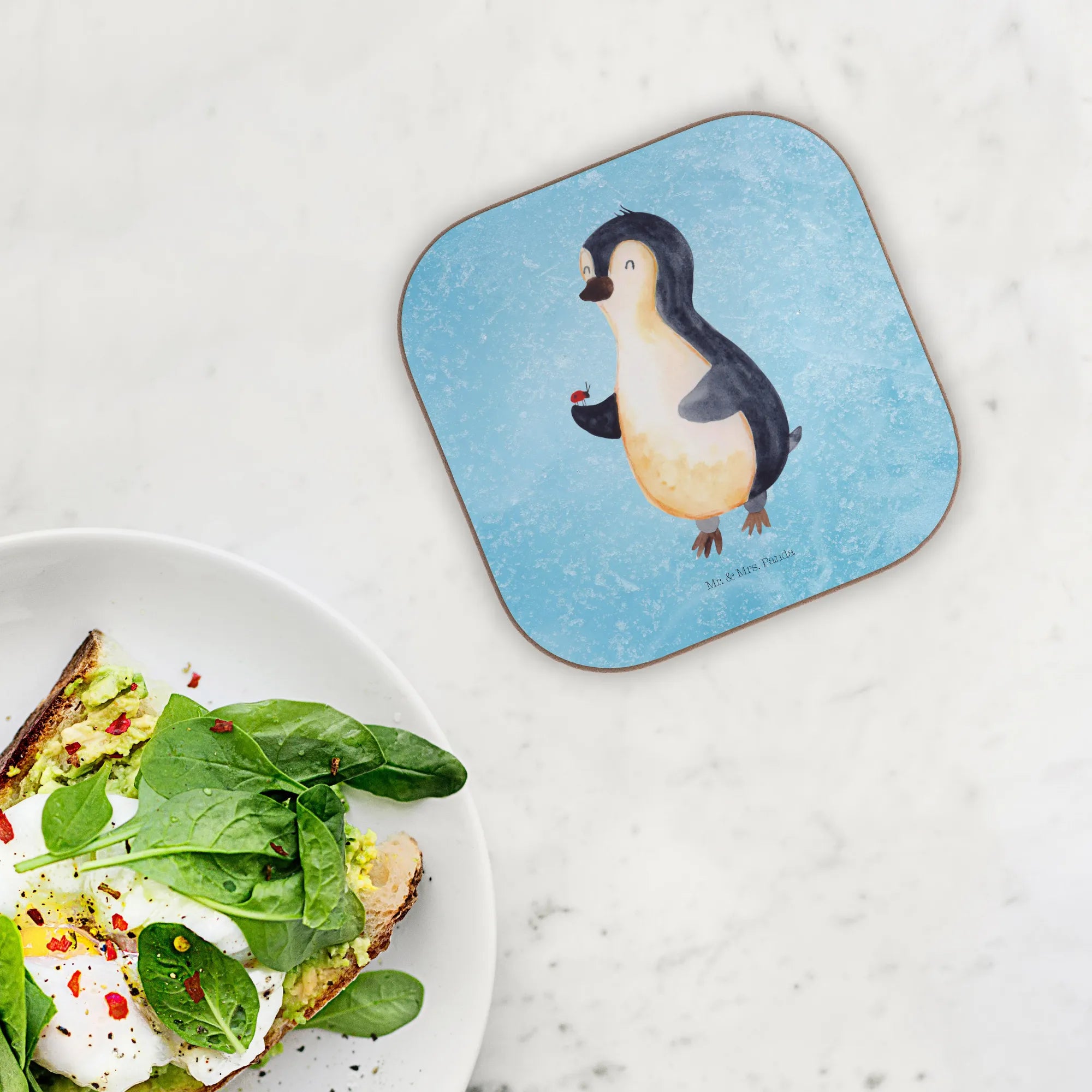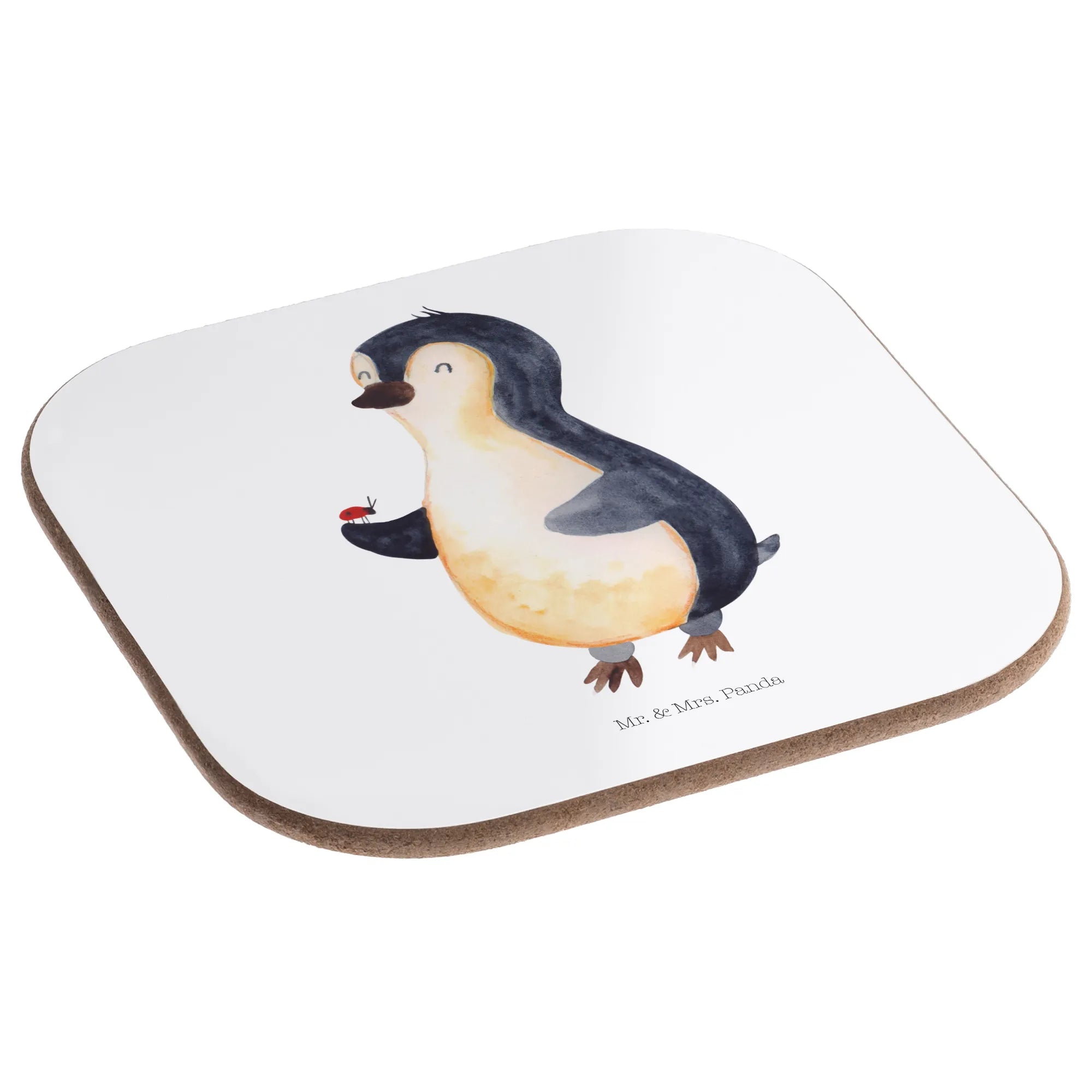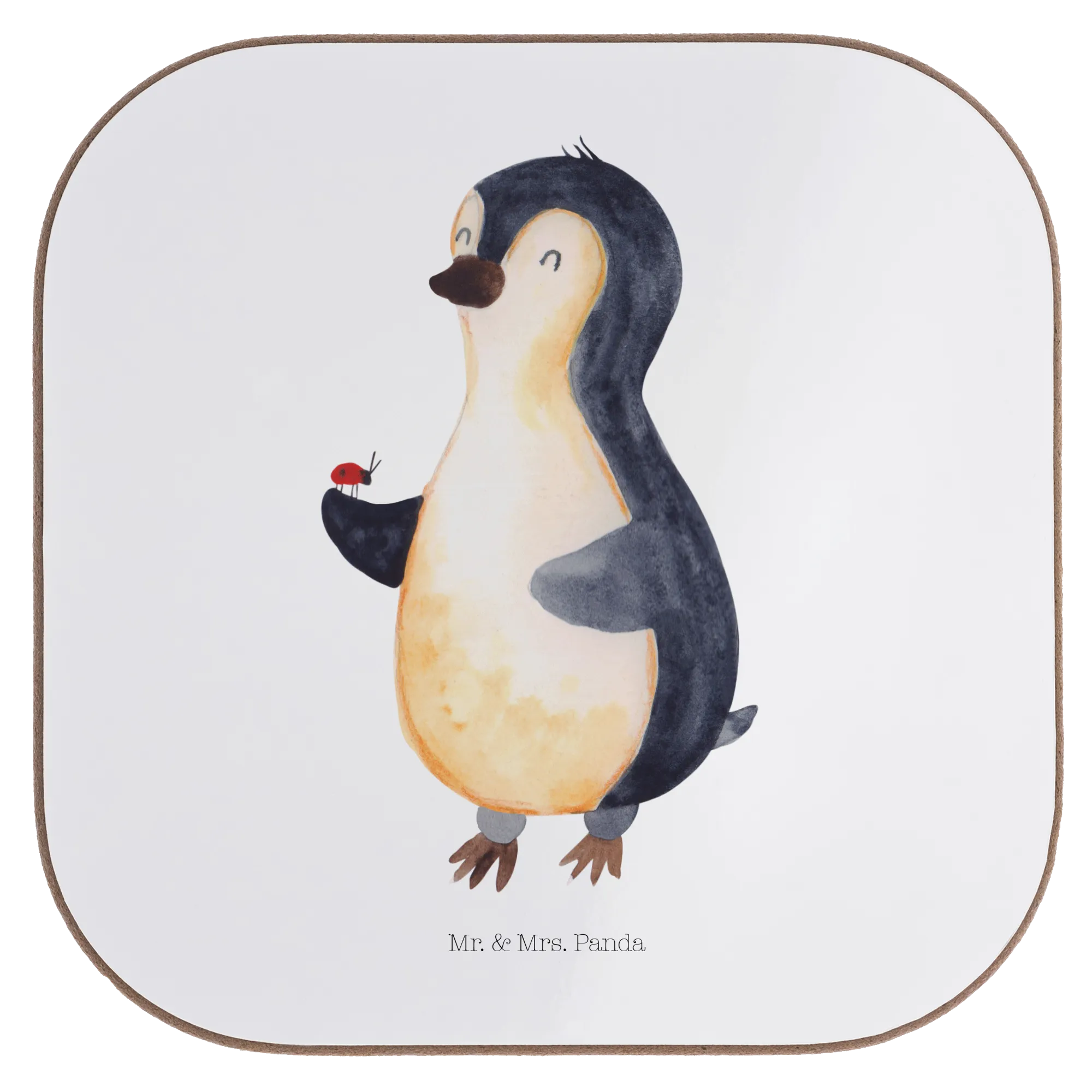 Der Untersetzer Pinguin Marienkäfer von Mr. & Mrs. Panda ist das perfekte Geschenk für alle, die das Besondere lieben! Mit seinem entzückenden Design eines Pinguins, der einen fröhlichen Marienkäfer auf seiner Flosse hält, bringt dieser quadratische Untersetzer frischen Wind in dein Zuhause.