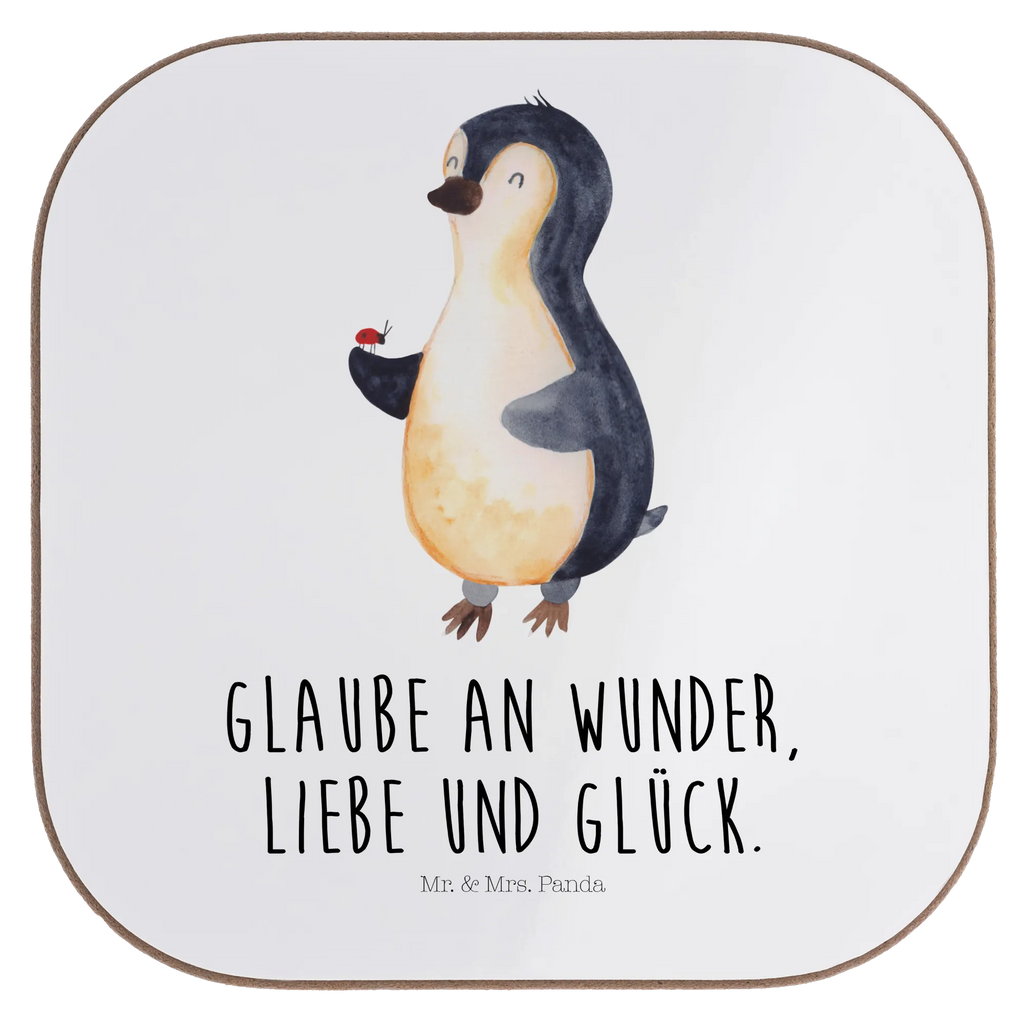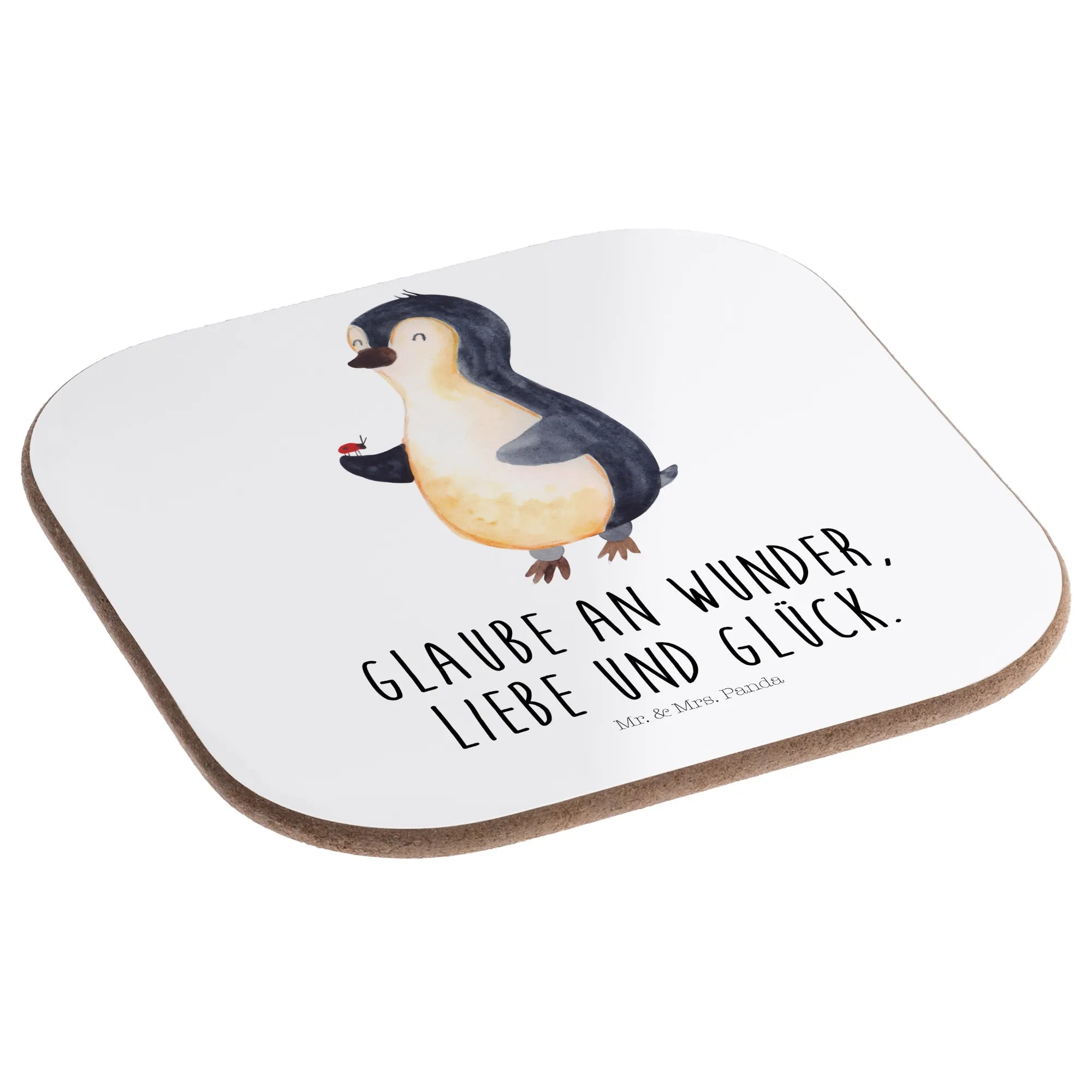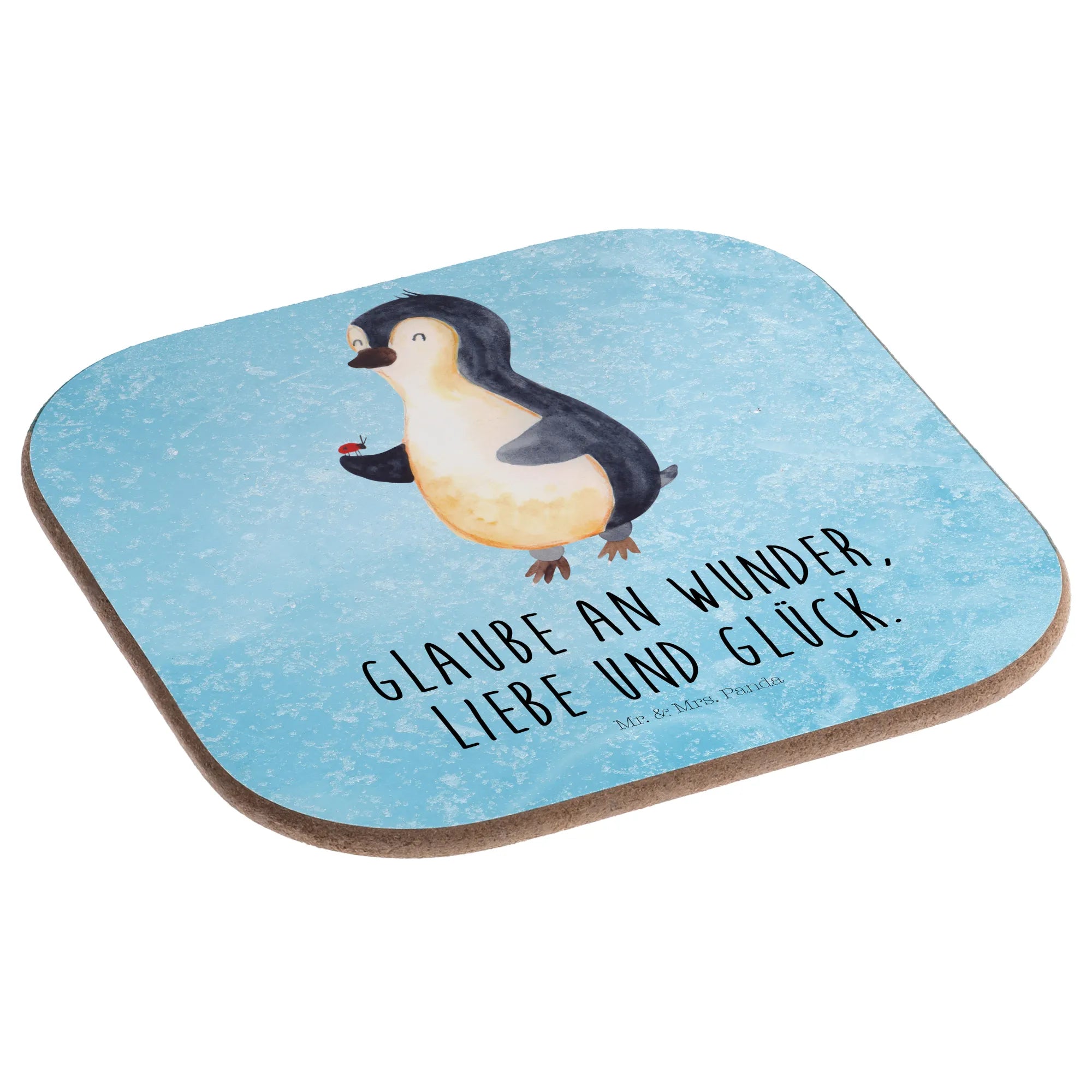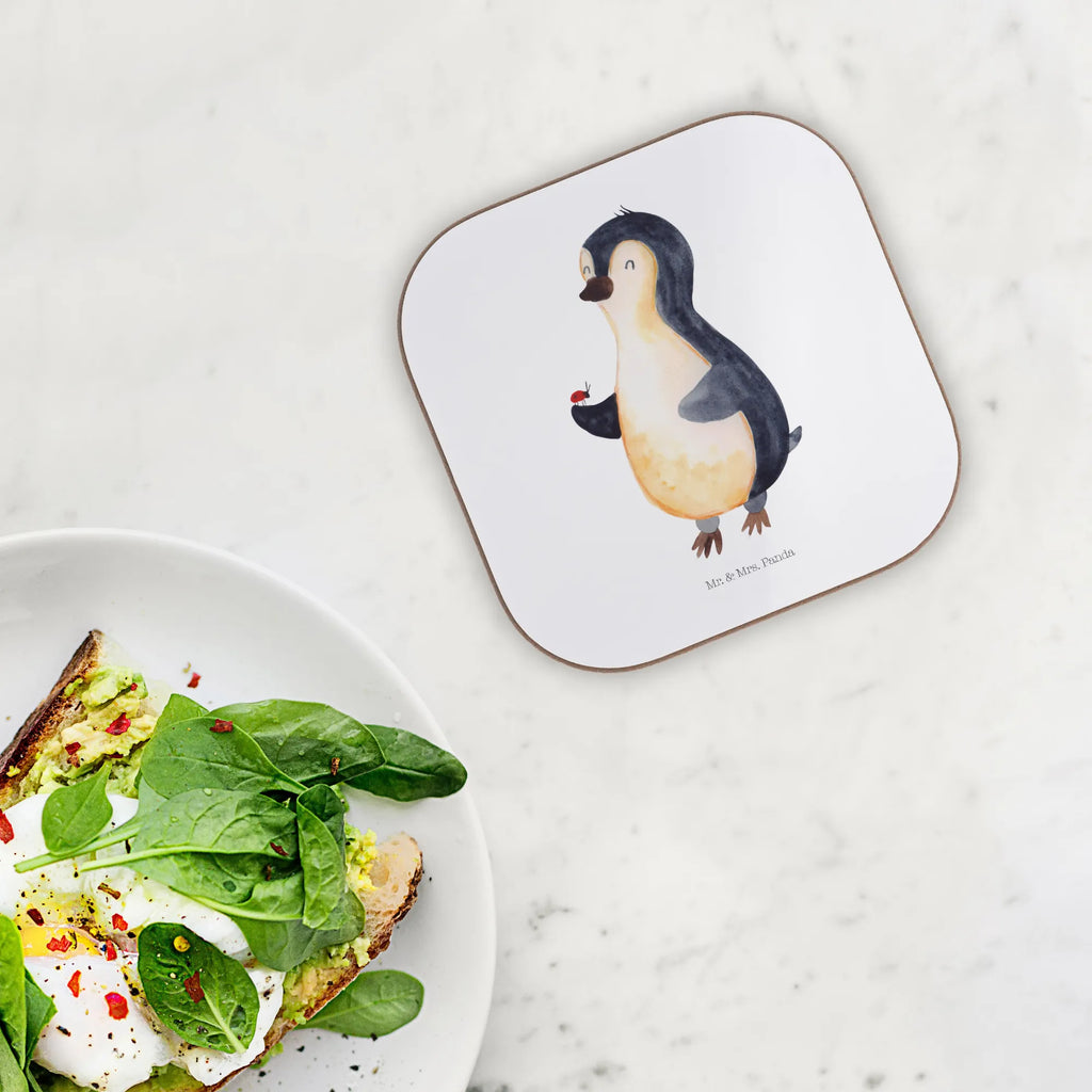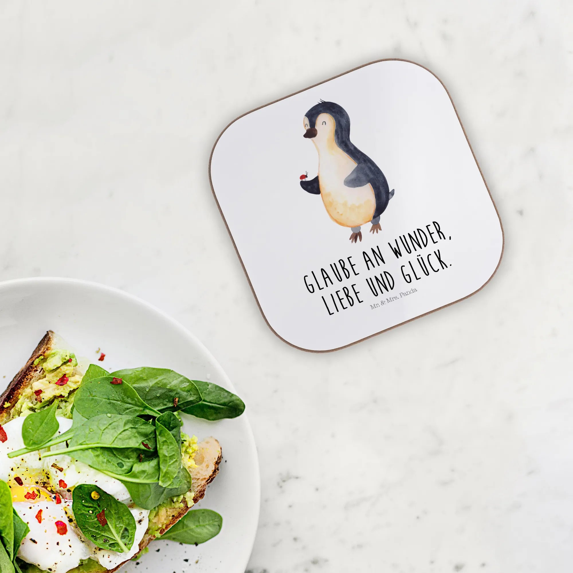 Der Untersetzer Pinguin Marienkäfer von Mr. & Mrs. Panda ist das perfekte Geschenk für alle, die das Besondere lieben! Mit seinem entzückenden Design eines Pinguins, der einen fröhlichen Marienkäfer auf seiner Flosse hält, bringt dieser quadratische Untersetzer frischen Wind in dein Zuhause.