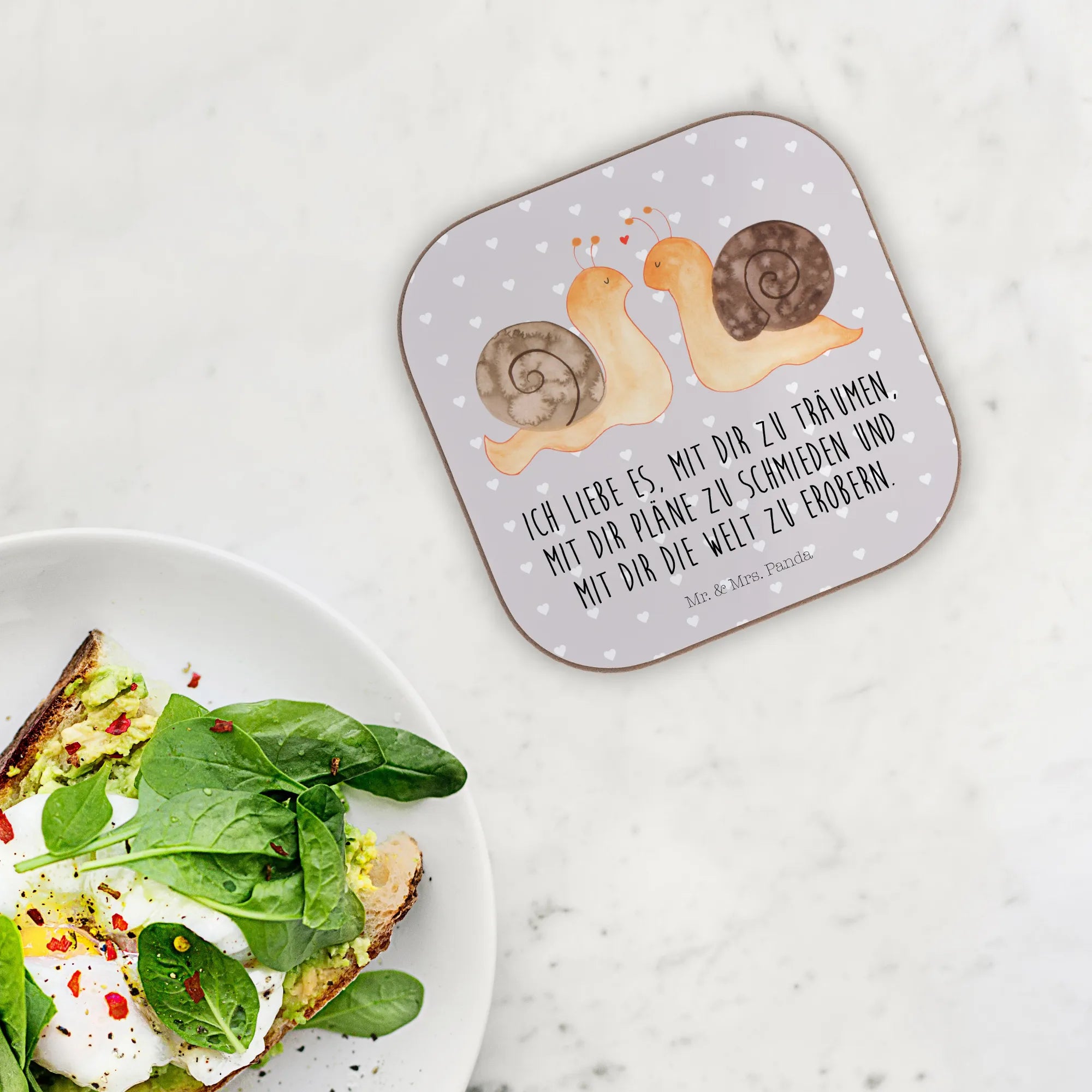 Entdecke den perfekten Untersetzer für romantische Abende – den Untersetzer 'Schnecken Liebe' aus der bezaubernden Liebe-Kollektion von Mr. & Mrs. Panda!