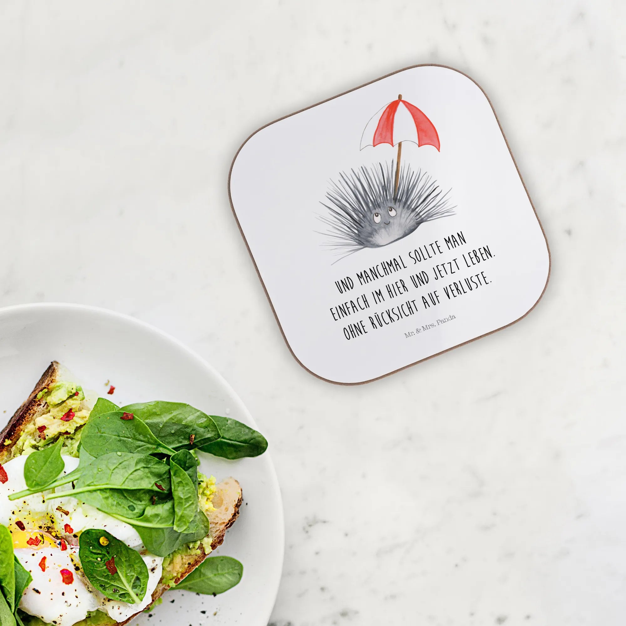 Entdecke den perfekten Untersetzer für dein Zuhause – das quadratische Design aus der Meerestiere Kollektion von Mr. & Mrs. Panda! Dieser wunderschöne Untersetzer zeigt einen niedlichen Seeigel, der mit seinem freundlichen Gesicht und dem roten, gestreiften Schirm sofort gute Laune verbreitet.