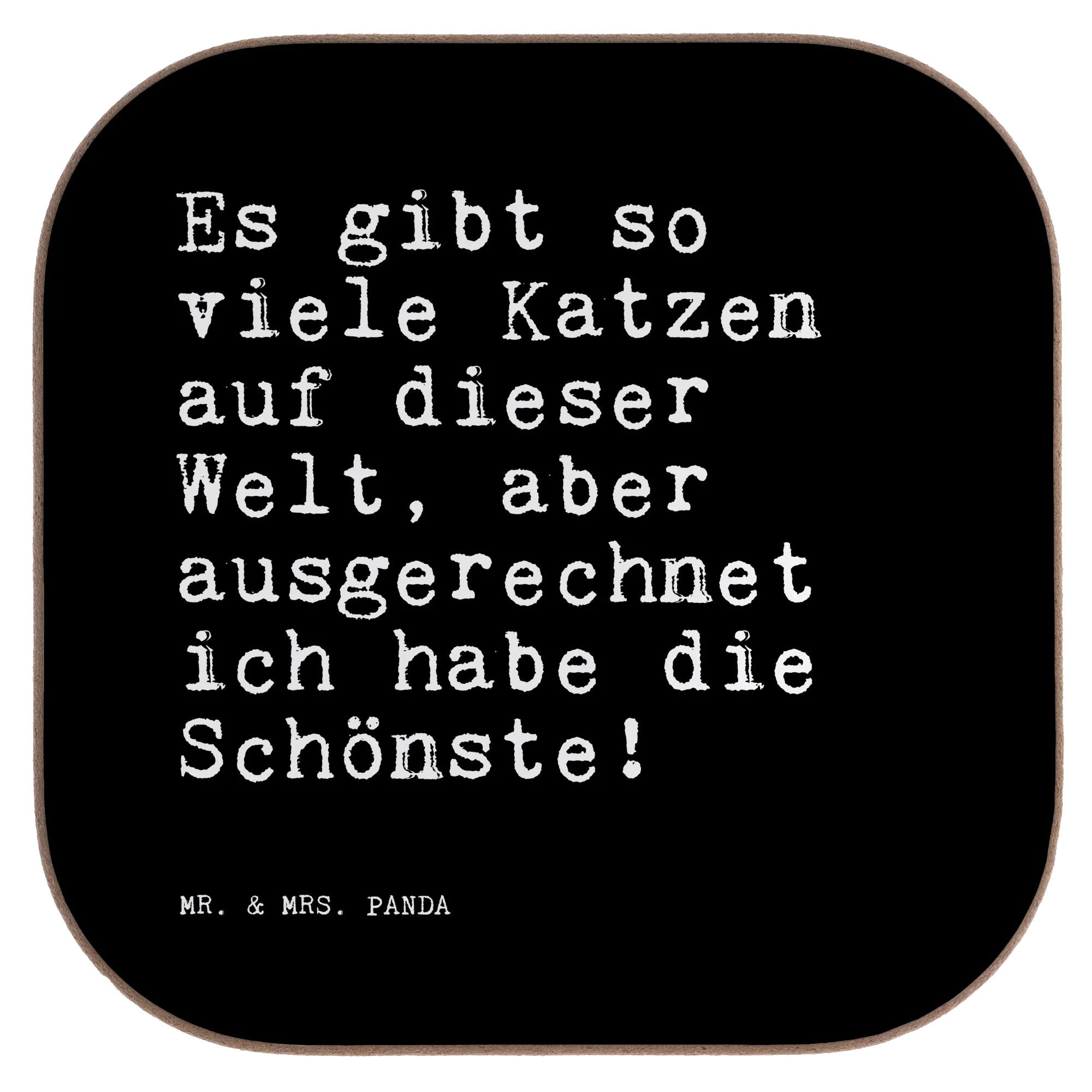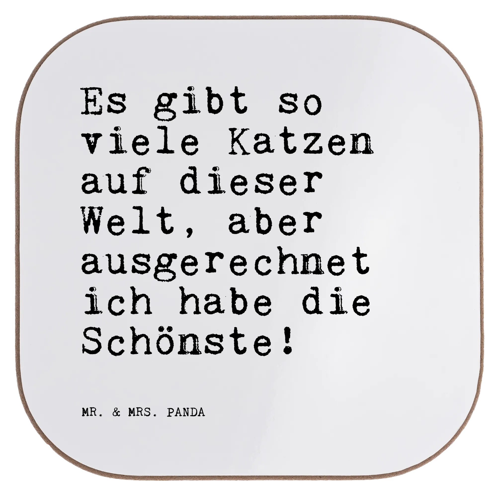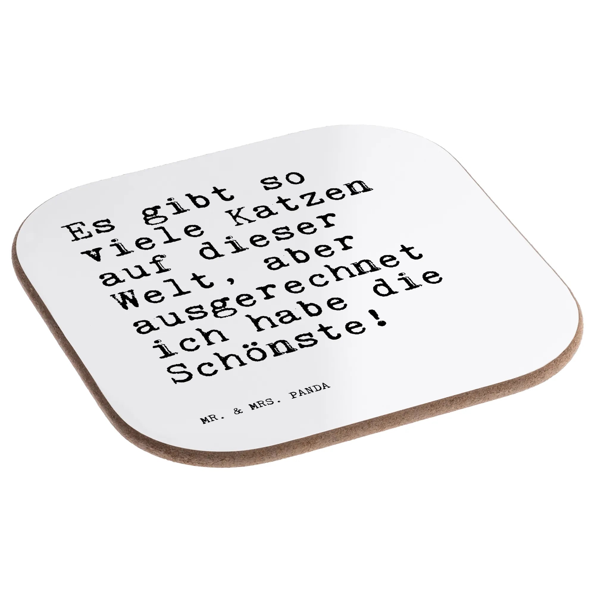Du bist auf der Suche nach dem perfekten Geschenk für einen Katzenliebhaber oder vielleicht einfach nur nach einer schönen Ergänzung für deinen Tisch? Unser wunderschöner Untersetzer von Mr. & Mrs. Panda ist genau das Richtige! Bedruckt mit dem lustigen Spruch "Es gibt so viele Katzen auf dieser Welt, aber ausgerechnet ich habe die Schönste!", bringt er nicht nur ein Lächeln auf die Lippen, sondern schützt gleichzeitig deinen Tisch vor unschönen Abdrücken und Kratzern.
