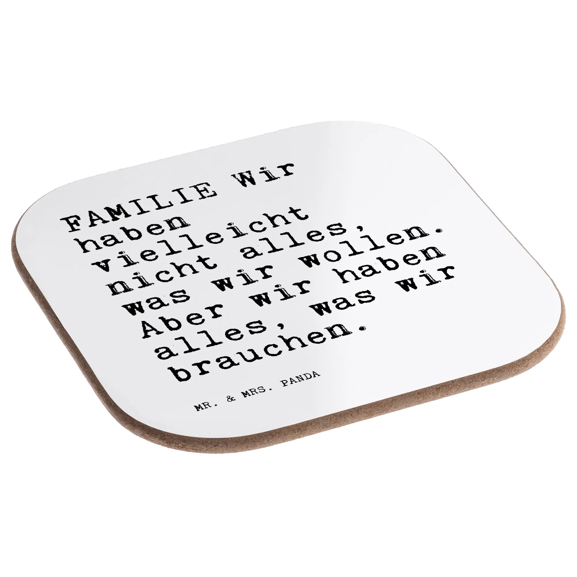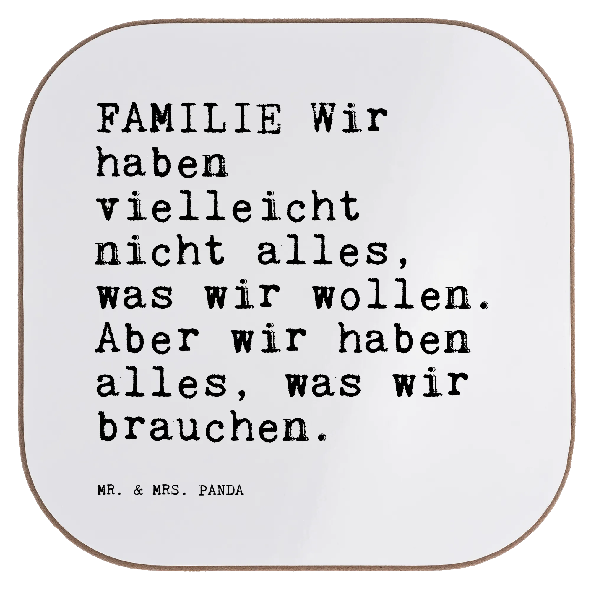 Quadratische Untersetzer Sprüche und Zitate FAMILIE Wir haben vielleicht nicht alles, was wir wollen. Aber wir haben alles, was wir brauchen. - Weiß