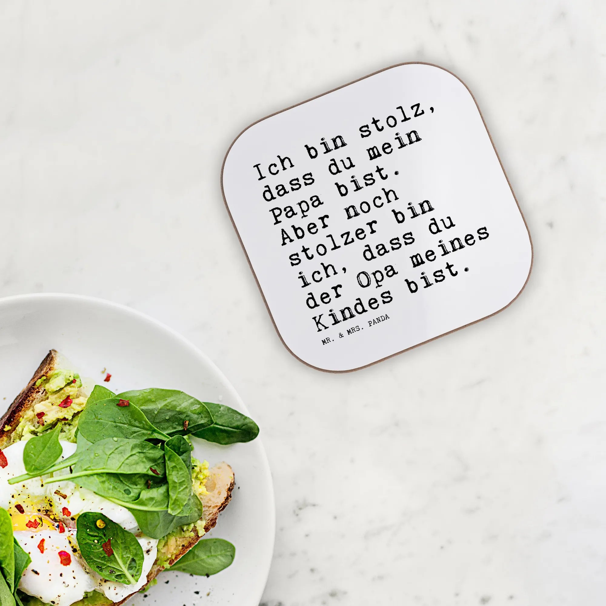 Quadratische Untersetzer Sprüche und Zitate Ich bin stolz, dass du mein Papa bist. Aber noch stolzer bin ich, dass du der Opa meines Kindes bist. - Weiß
