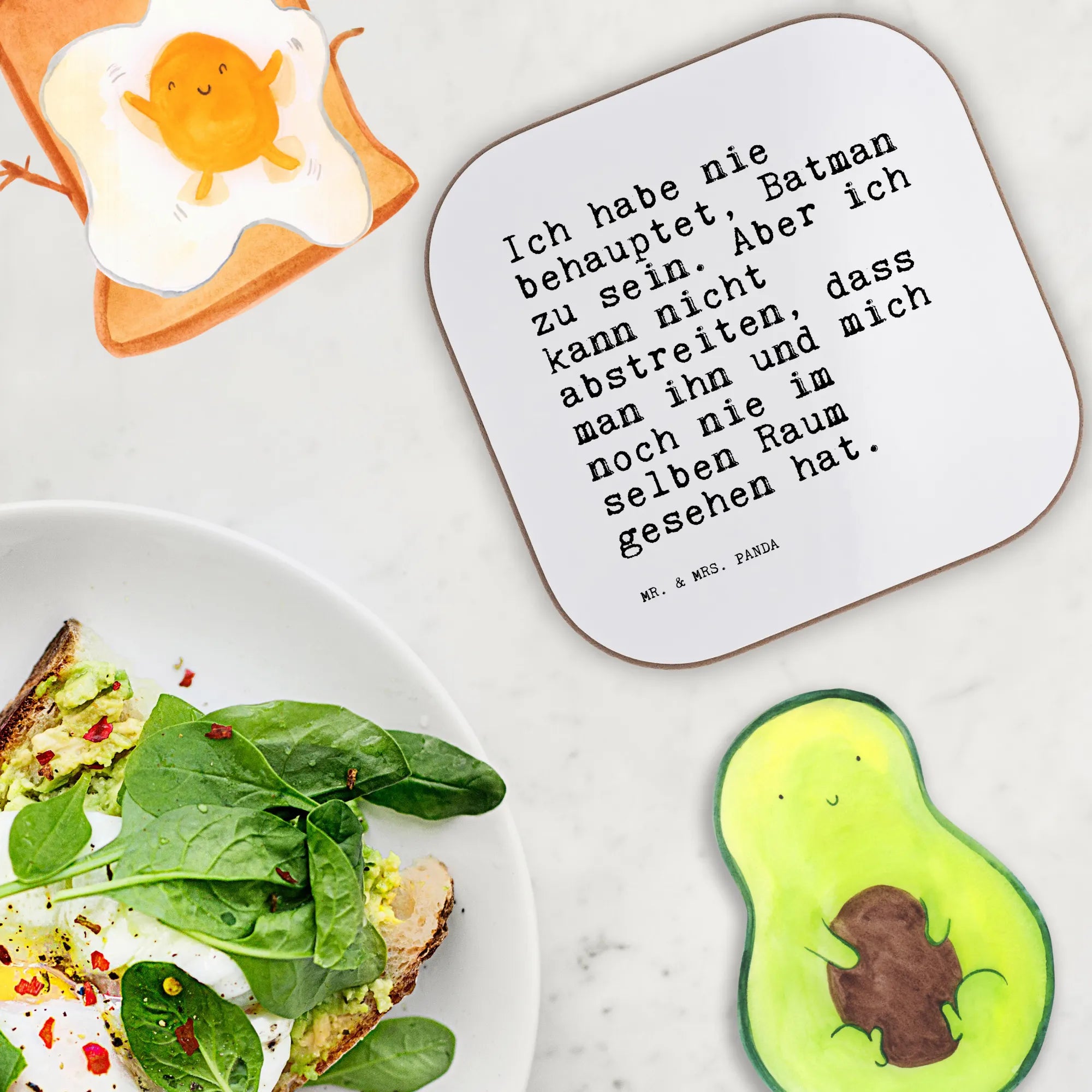 Entdecke den perfekten Untersetzer von Mr. & Mrs. Panda mit dem witzigen Spruch: "Ich habe nie behauptet, Batman zu sein. Aber ich kann nicht abstreiten, dass man ihn und mich noch nie im selben Raum gesehen hat." Dieser Glasuntersetzer ist mehr als nur ein praktisches Accessoire, er ist ein echter Hingucker für jeden Tisch!